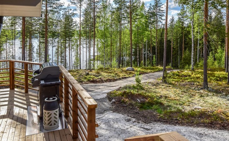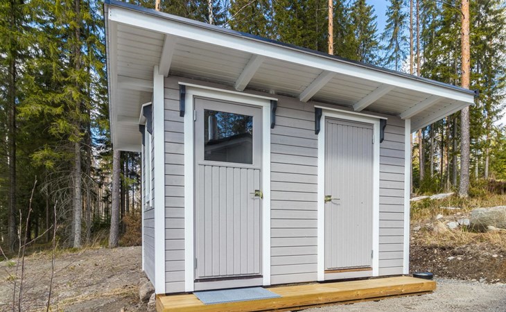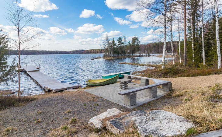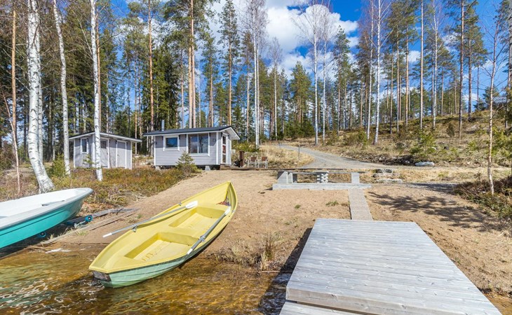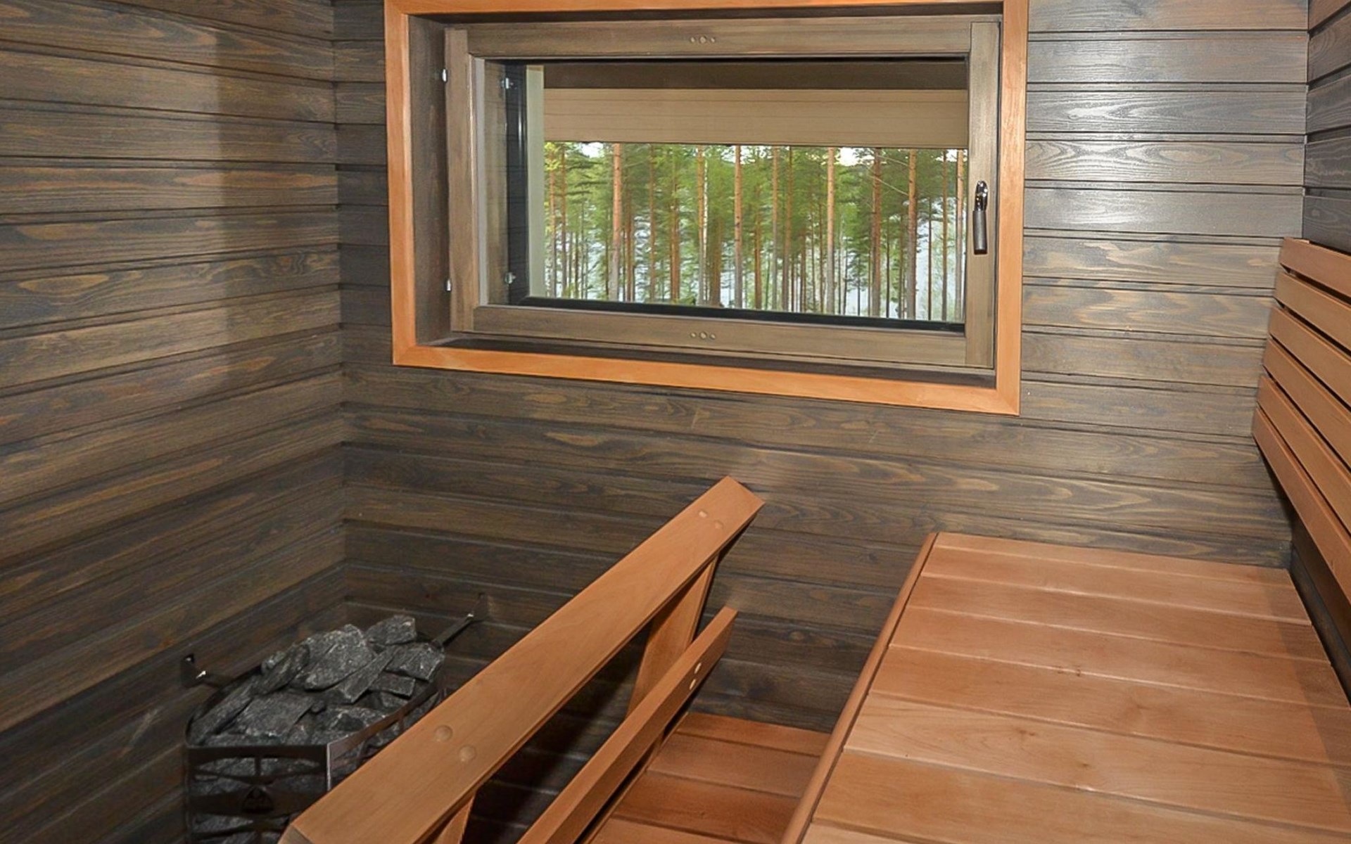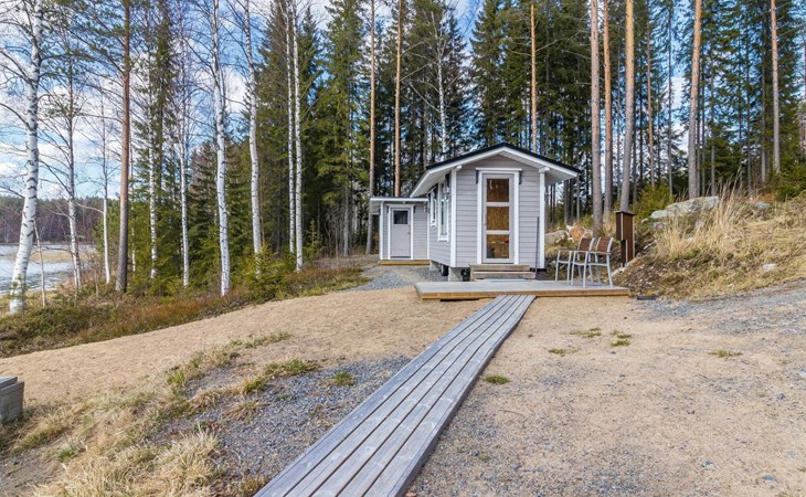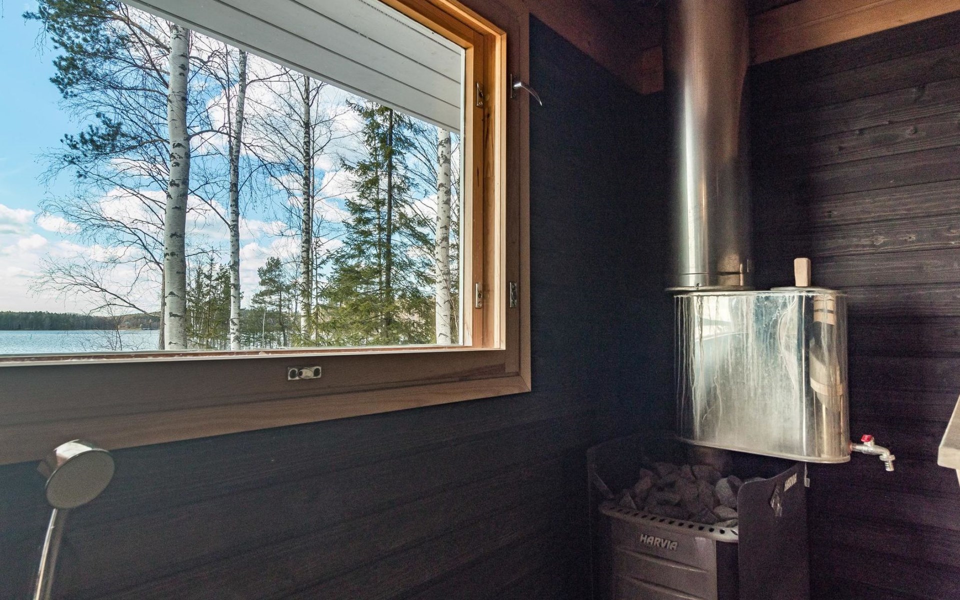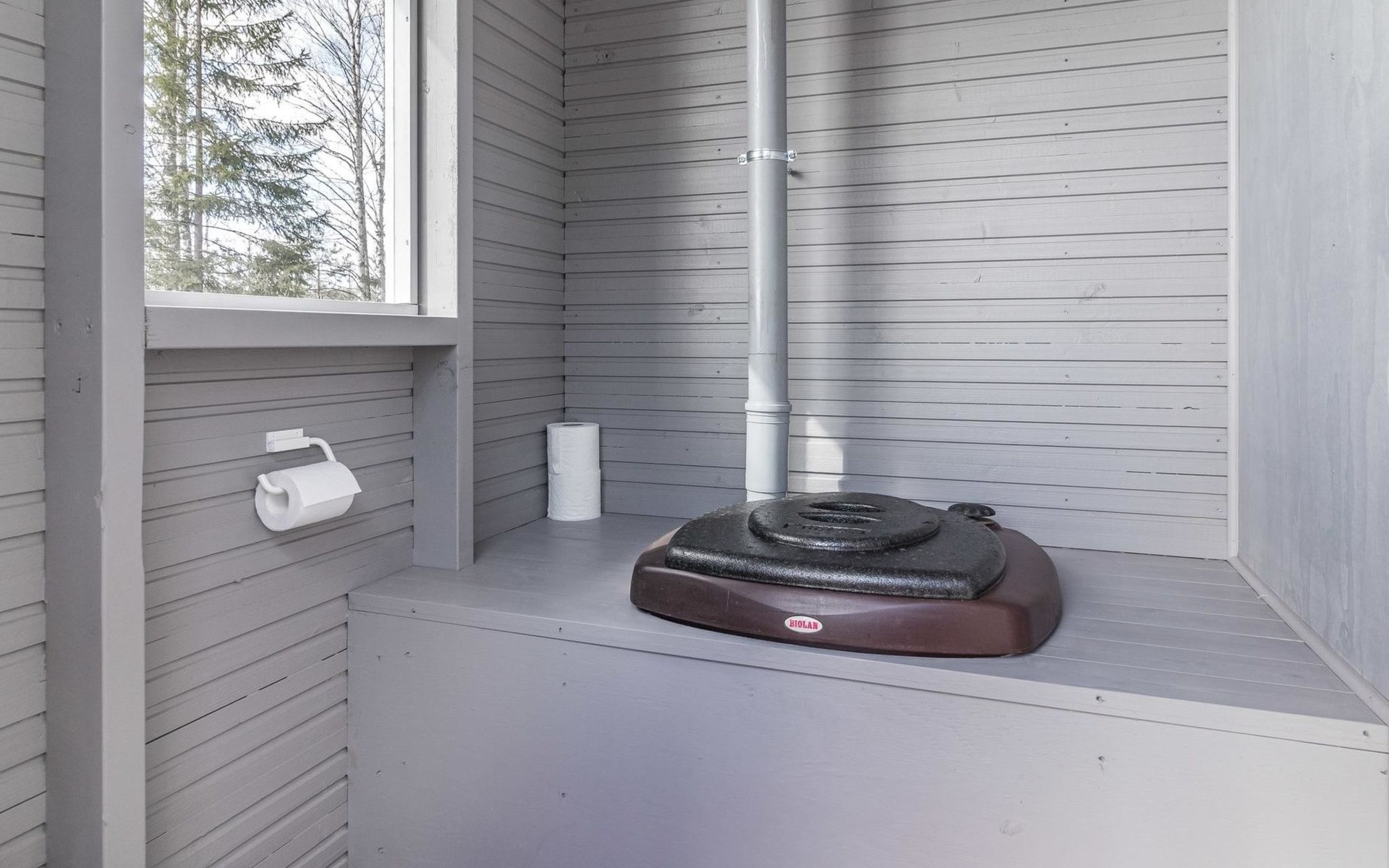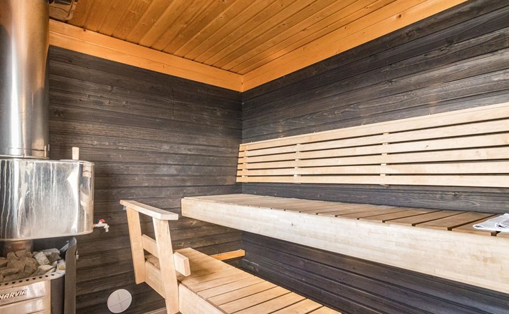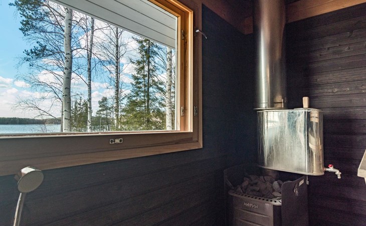Separate lakeside sauna available during summer season (May - October), woodburning stove with water container to heat water. Water to lakeside sauna from a nearby well with water pump.