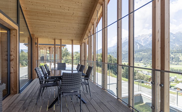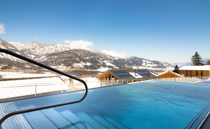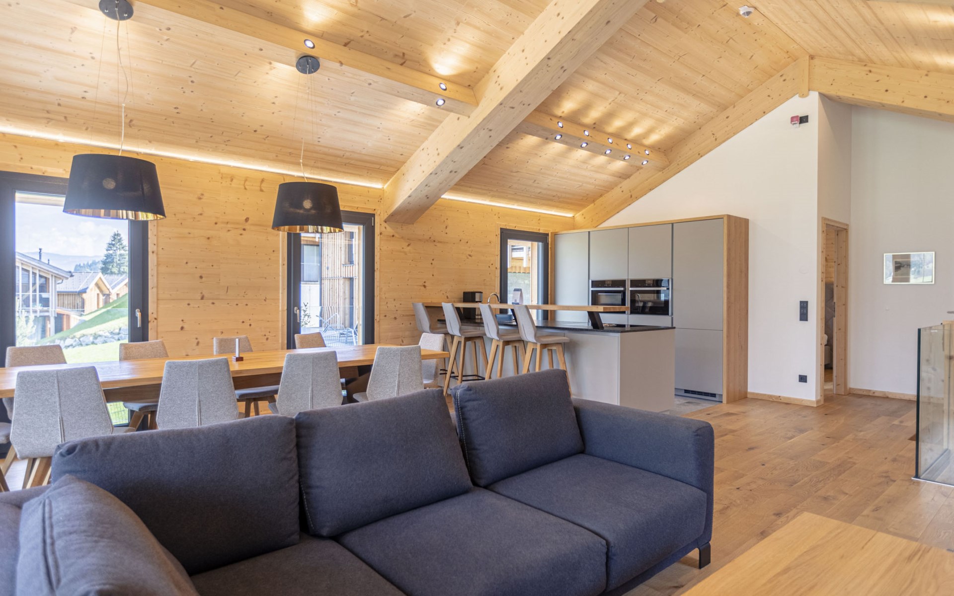 Haus im Ennstal: Modern, comfortable holiday village "Hauser Kaibling by Alps Resorts". Above Haus, in a sunny position on a slope, 5 km from the lake, directly by the skiing area. Private: swimming pool (seasonal availability: 01.Jan. - 31.Dec.). In the house: central heating system. Parking at the house. E-charging station. Supermarket 1 km, restaurant 1 km. Skisport facilities 300 m, ski rental, children's ski school. Well-known ski regions can easily be reached: Hauser Kaibling 300 m, Planai, Reiteralm. Well-known lakes can easily be reached: Freizeitsee Aich 4 km. Hiking paths: Schladminger Tauern. Please note: In case of good snow conditions, the house is accessible on skis. The photograph shows a typical example. All houses/apartments are individually designed/furnished. The holiday properties may differ in living space, floorplan, equipment and furnishing. ATTENTION: Schladming-Dachstein Summer Card included (end of May to end of October).