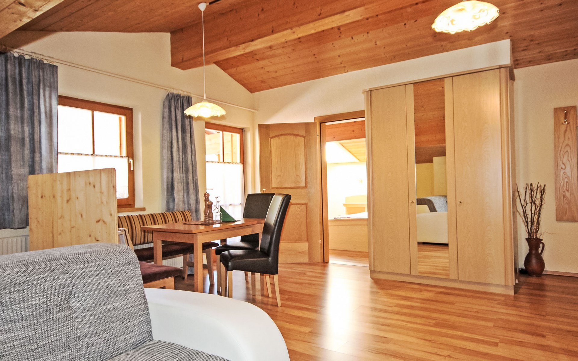 See 14 km from Ischgl: Cosy country house "Voräule". In a quiet, sunny, elevated position, 2 km from the lake, in the countryside. For shared use: garden, lawn for sunbathing. Patio, terrace, barbecue. In the house: storage room for skis, central heating system. Bread roll service. Motor access to the house. Parking at the house. Grocery 500 m, restaurant 2 km, bus stop 150 m, outdoor swimming pool 15 km, indoor swimming pool 15 km, bathing lake 2 km. Ski lift 2 km, gondola lift 2 km, ski bus stop 150 m, ski school 2 km, sled run 2 km, cross country ski track 15 km, ice rink 2 km. Please note: ski bus (free of charge).
