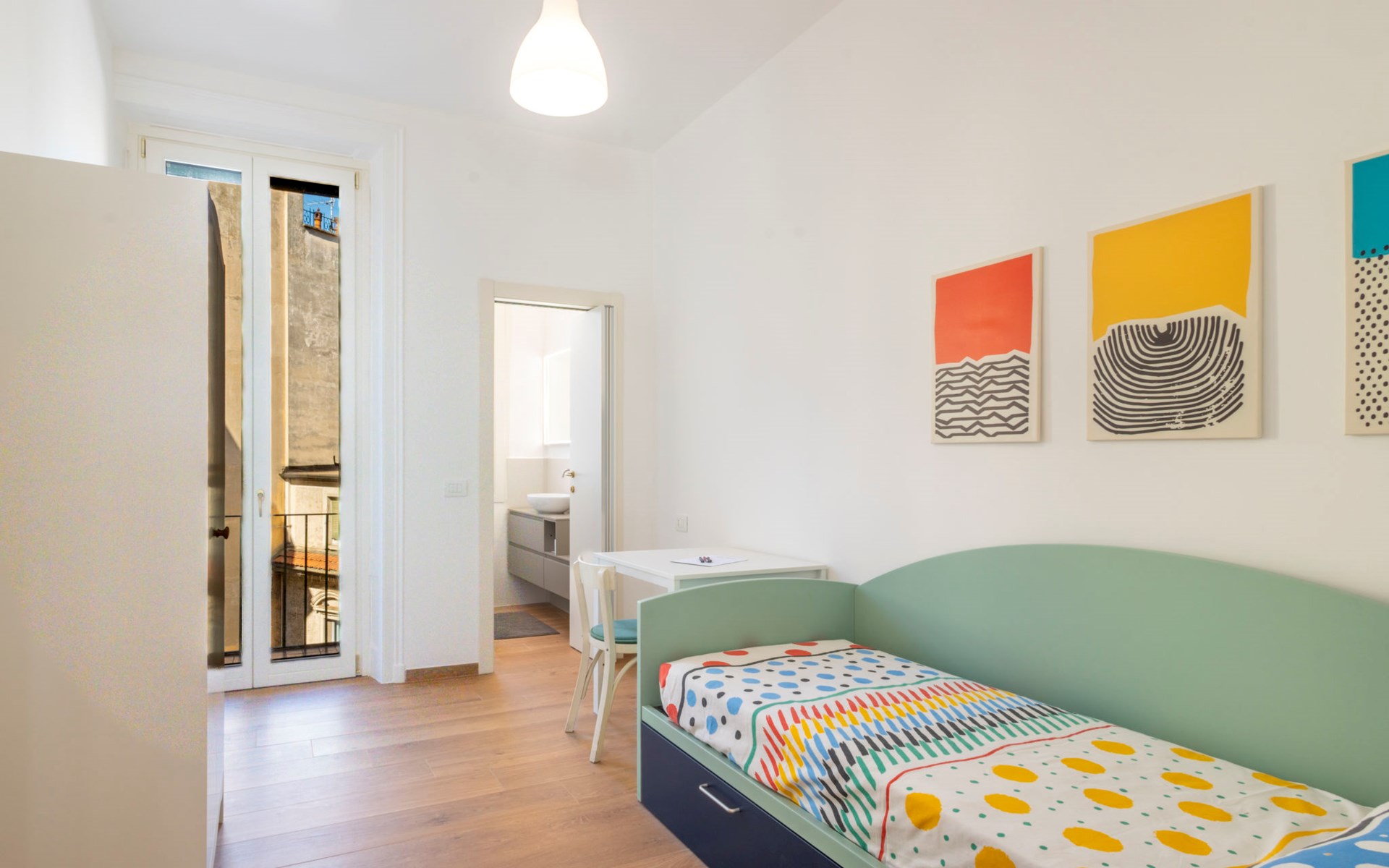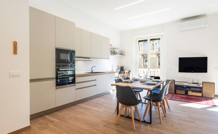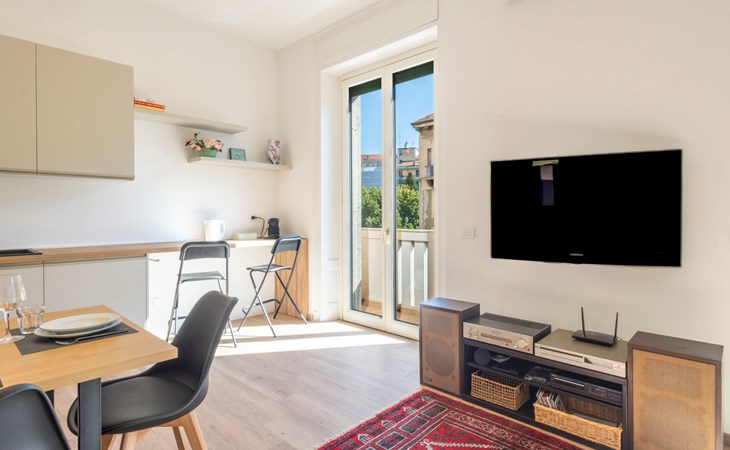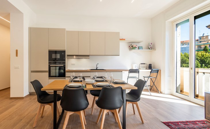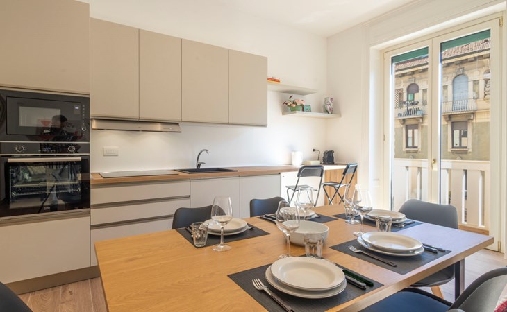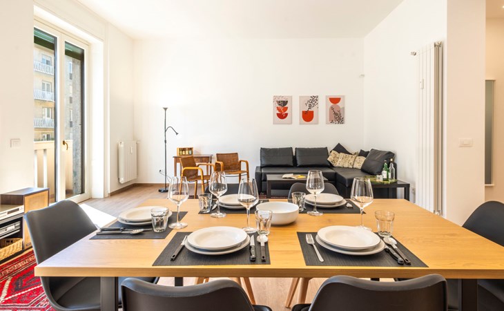 Small, comfortable apartment house "NoLo 51", 5 storeys. 2 km from the centre of Milano, in the district NoLo, in a busy, sunny position in the residential district, on a main road, east facing position. In the house: lift, central heating system, heating available only from 15.Oct. - 15.Apr.. Communal covered parking space n 40 (extra) at 50 m, public parking on the road extra. Grocery 200 m, supermarket, restaurant 100 m, bar 50 m, tram "N.1" 50 m, bus stop 250 m, railway station "Stazione Centrale (MXP Express)" 1 km, underground station "Pasteur (M1)" 250 m, park "BAM - Biblioteca degli Alberi" 2.2 km. Nearby attractions: Corso Buenos Aires (shopping street) 850 m, Brera 2.4 km, Castello Sforzesco 4 km, Piazza del Duomo 4.1 km, Fiera Milano City / MiCo 5.7 km, Navigli (canal district) 6.2 km. Well-known lakes can easily be reached: Lago di Como 52 km.