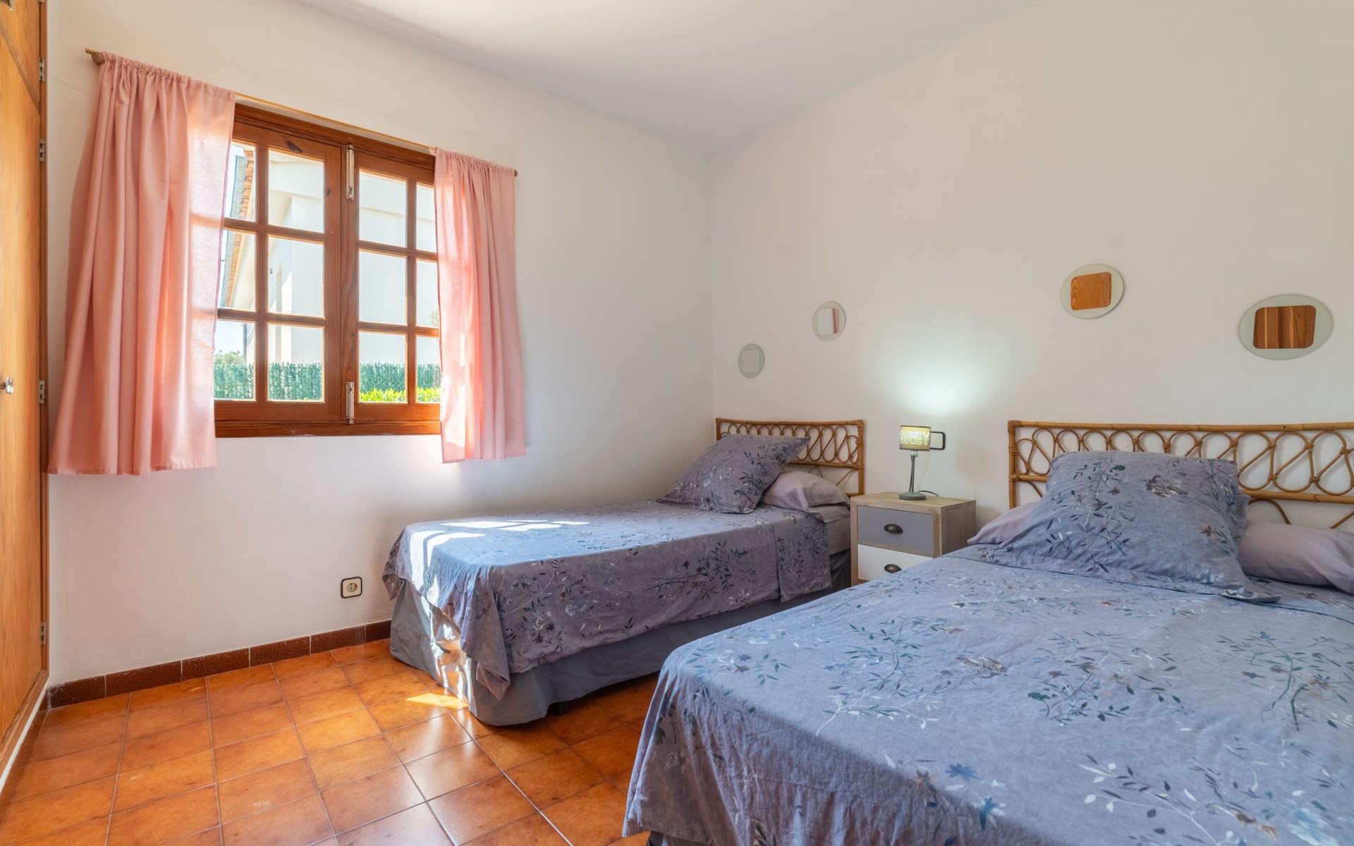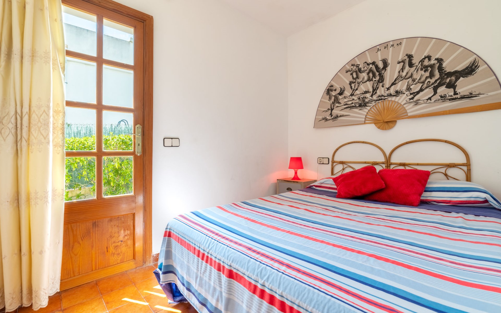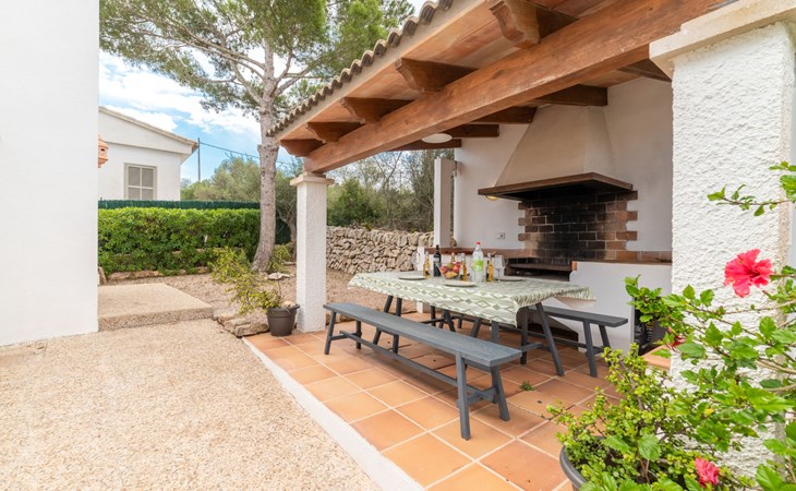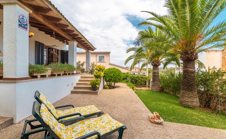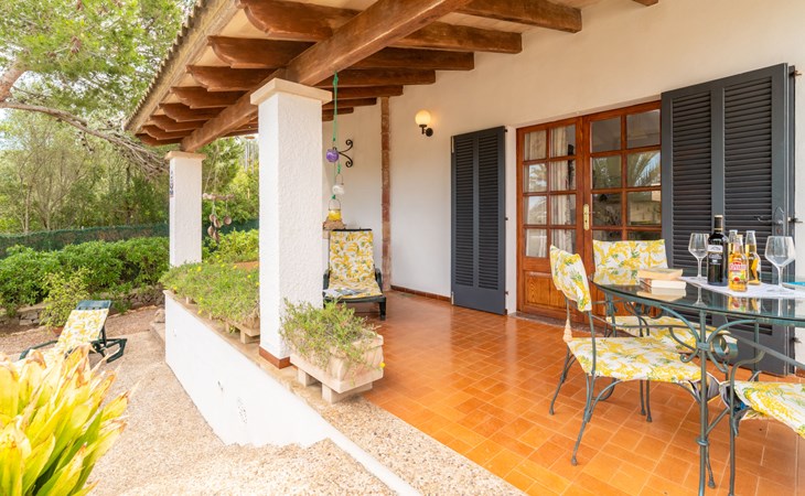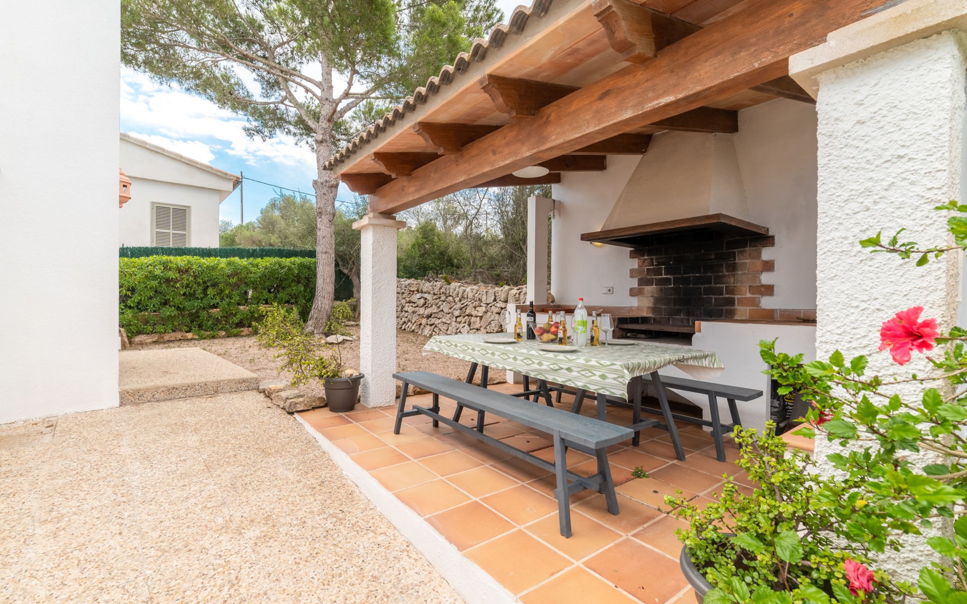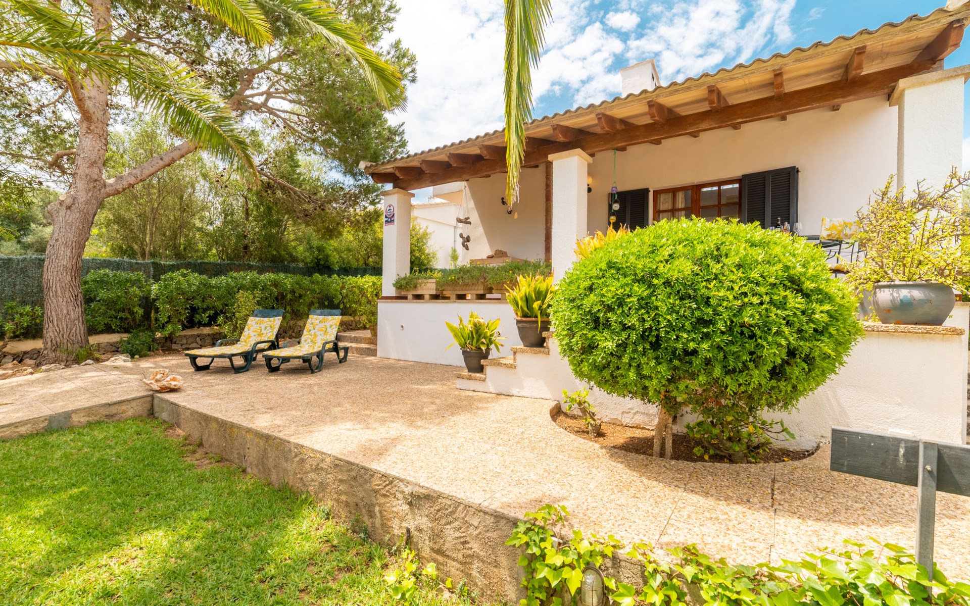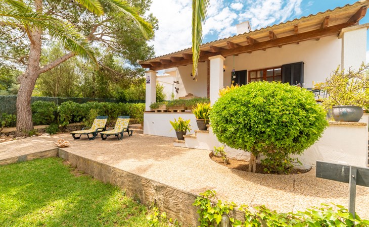 Beautiful single-family house "Ca na Rosa". 600 m from the centre of Cala Llombards, 5 km from the centre of Es Llombards, 19 km from the centre of Campos, 300 m from the sea. Private: well-kept garden 300 m2 (fenced) with wildlife garden and flowers, meadow. Barbecue house. Stepped path (6 steps) to the house. Roofed, parking on the premises. Shop 600 m, supermarket 6 km, restaurant, bar 600 m, bus stop "Santanyi" 6 km, railway station "Manacor" 37 km, sandy beach "Cala Llombards" 300 m. Please note: car recommended. Object suitable for 5 adults.