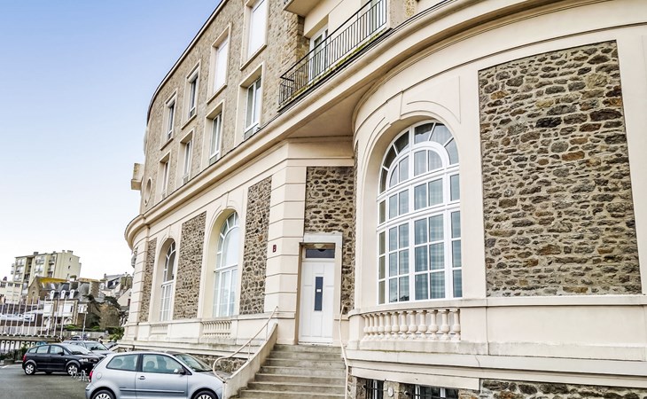 Residence "La Plage". In the centre of Dinard, in a central position, 20 m from the sea, direct access to the beach. Public parking on the road. Shop 100 m, grocery 270 m, supermarket 450 m, shopping centre 4 km, restaurant 80 m, bar 80 m, bakery 280 m, café, pedestrian zone 10 m, bicycle rental 300 m, bus stop "Le Gallic" 180 m, railway station "SNCF de Saint Malo" 12.7 km, ferry "gare maritime du Naye" 12.4 km, sandy beach "L'Ecluse" 20 m, outdoor swimming pool 300 m, indoor swimming pool 200 m, thermal baths "Thalasso de Dinard" 1.9 km. Sports harbour 1.5 km, golf course (18 hole) 7 km, sailing school 600 m, tennis 2 km, indoor tennis centre 2 km, minigolf 2.7 km, riding stable 2.5 km, sports centre 2.2 km, walking paths from the house 10 m. Nearby attractions: Saint Malo 12 km, Dinan 22 km, Cancale 22 km, Cap Fréhel 35 km, Mont Saint Michel 60 km. The keys‘ handover takes place by the agency Interhome in Dinard, 1 km.