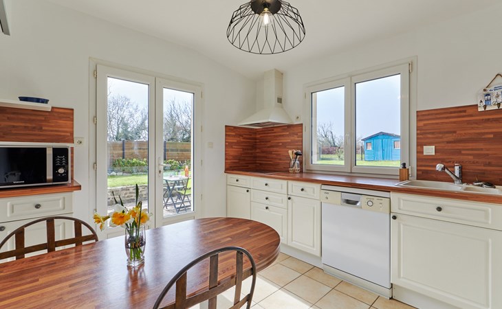 Single-family house "Le Hameau Boudet". In the centre of Barneville Carteret, in the resort, 1 km from the centre, from the sea, 900 m from the beach. Private: natural state property 590 m2 (fenced) with lawn, parking (for 2 cars). Shop 1 km, supermarket 3 km, shopping centre 800 m, bakery 1 km, sandy beach "Barneville carteret" 900 m. Sports harbour 900 m, golf course (18 hole) 40 km, sailing school 800 m, riding stable 1.2 km. Nearby attractions: Cherbourg 41 km, Portbail 8 km, Granville 80 km, Le Mont saint michel 125 km.