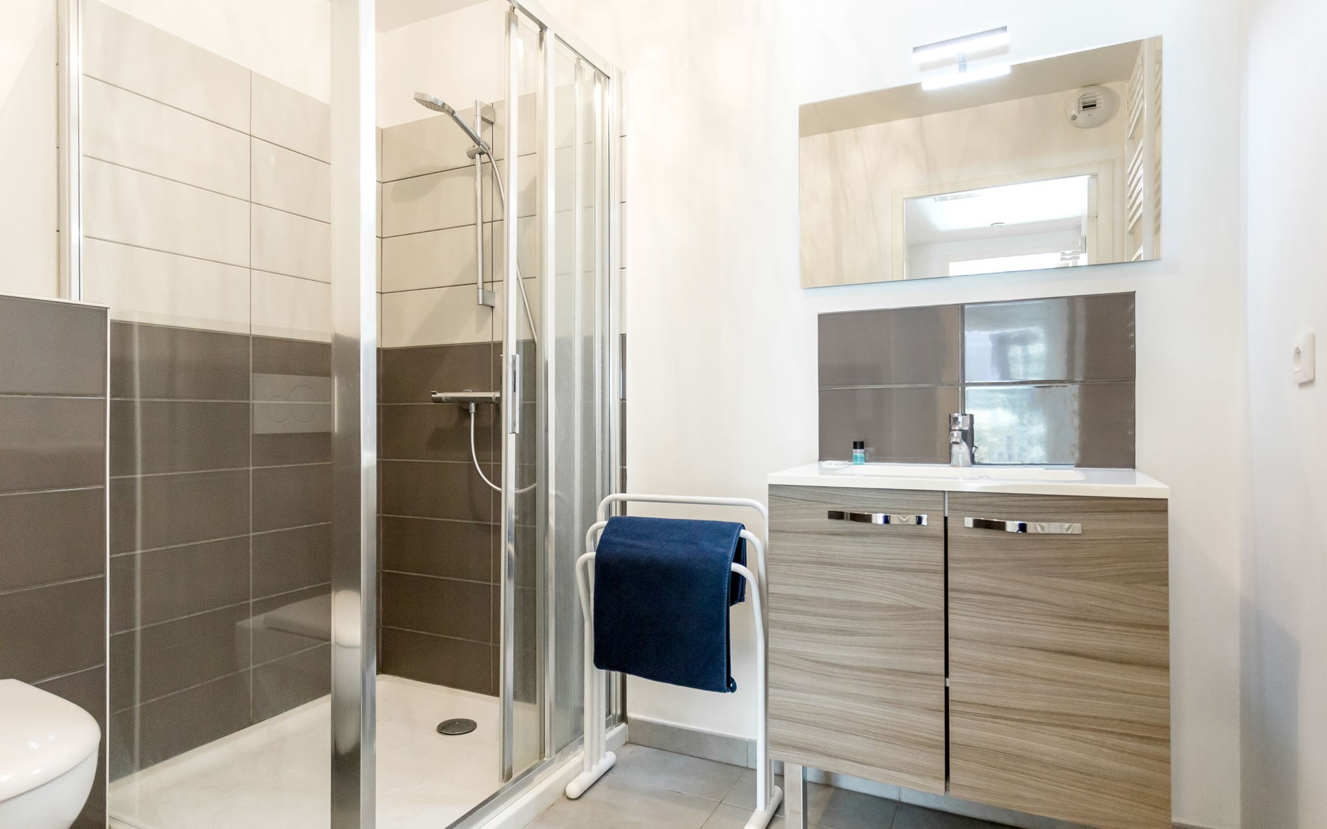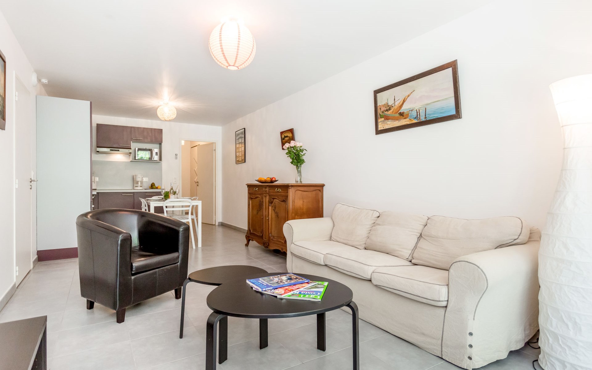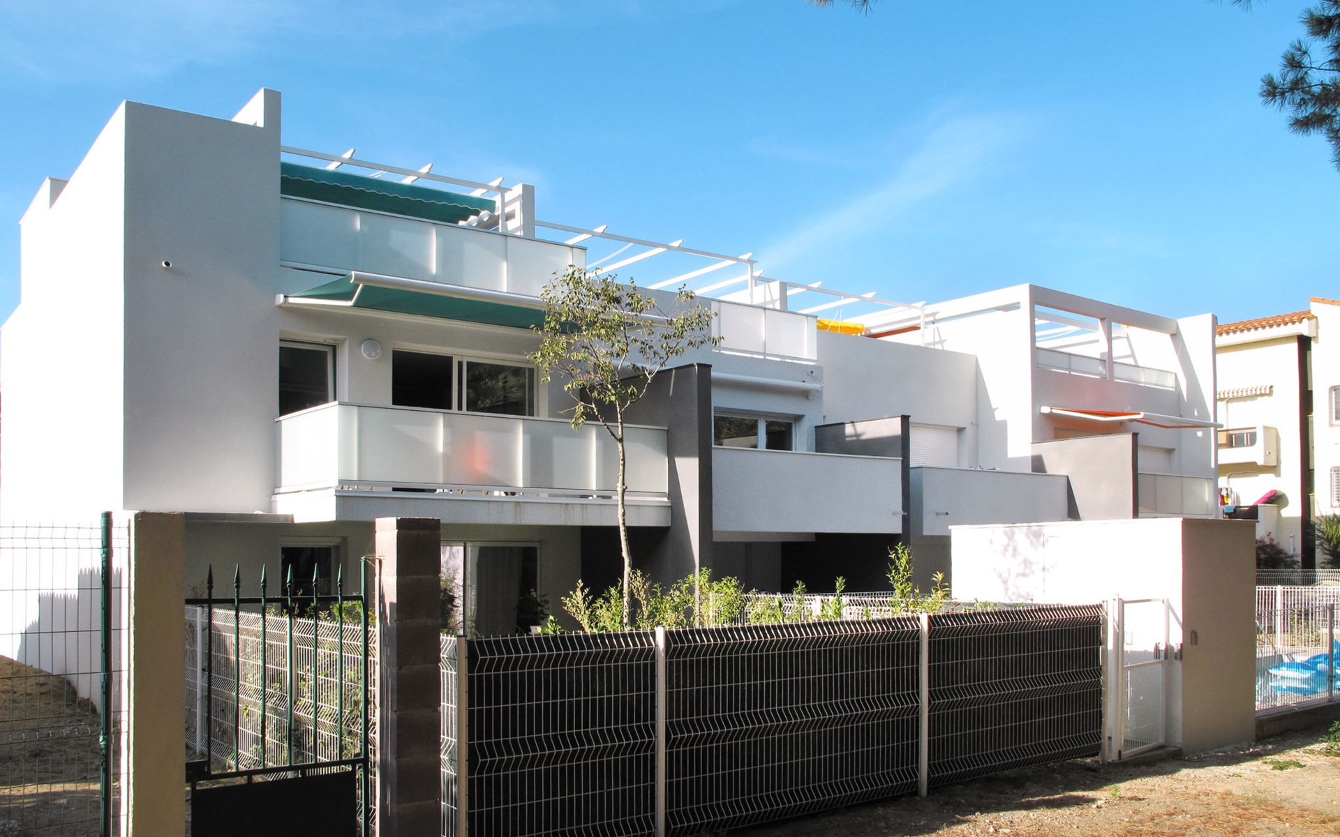 Small, beautiful residence "Les Pins Parasols", 3 storeys, built in 2015. 8 apartments in the residence. In the centre 600 m from the centre of Argelès-Plage, 24 km from the centre of Perpignan, in a central position, 250 m from the sea. For shared use: property with lawn, swimming pool fenced (8 x 3 m, depth 140 cm, seasonal availability: 16.May. - 19.Sep.). Shop 200 m, supermarket 500 m, bus stop "Rond-point des évadés" 3 km, sandy beach 250 m.