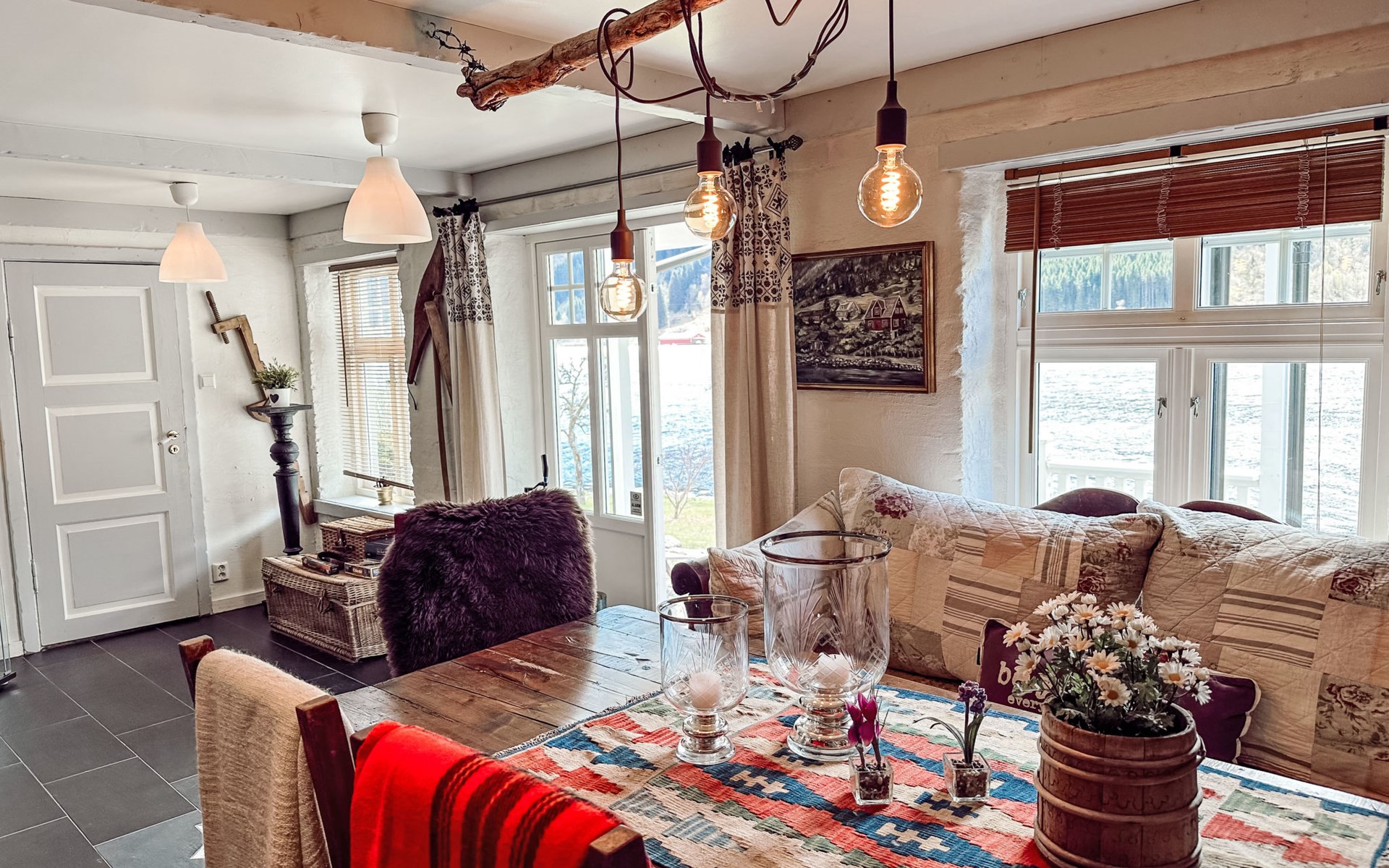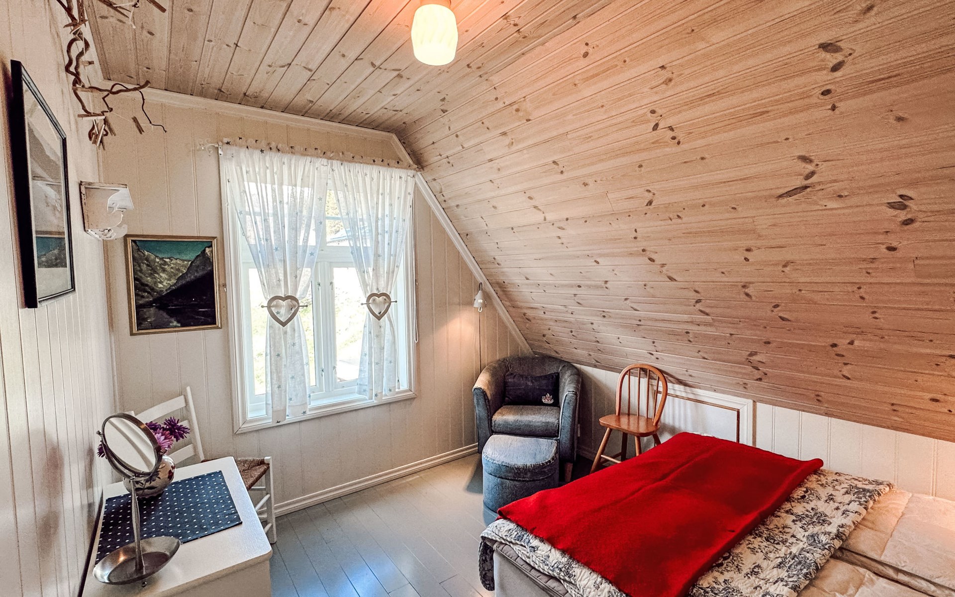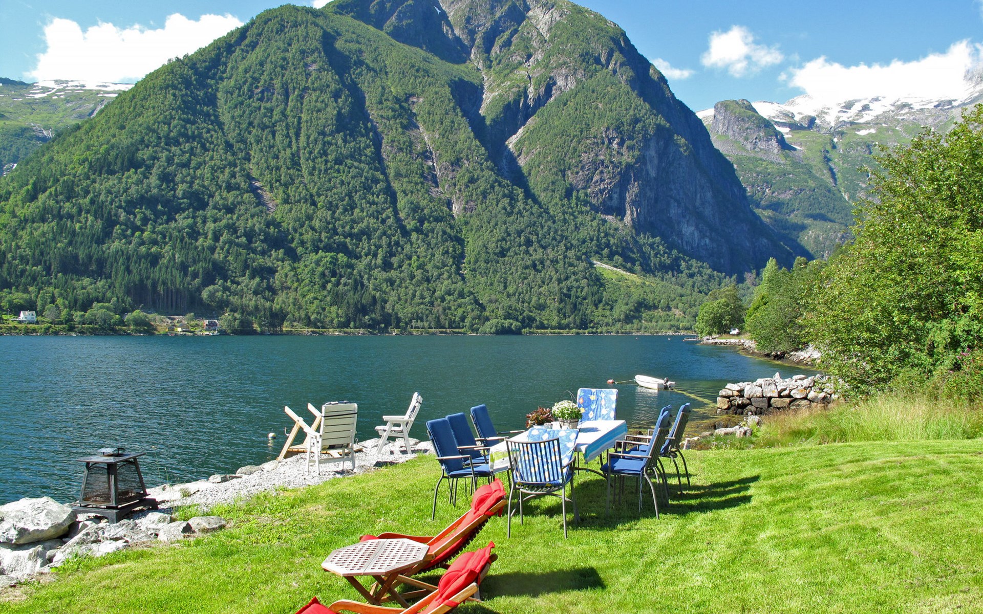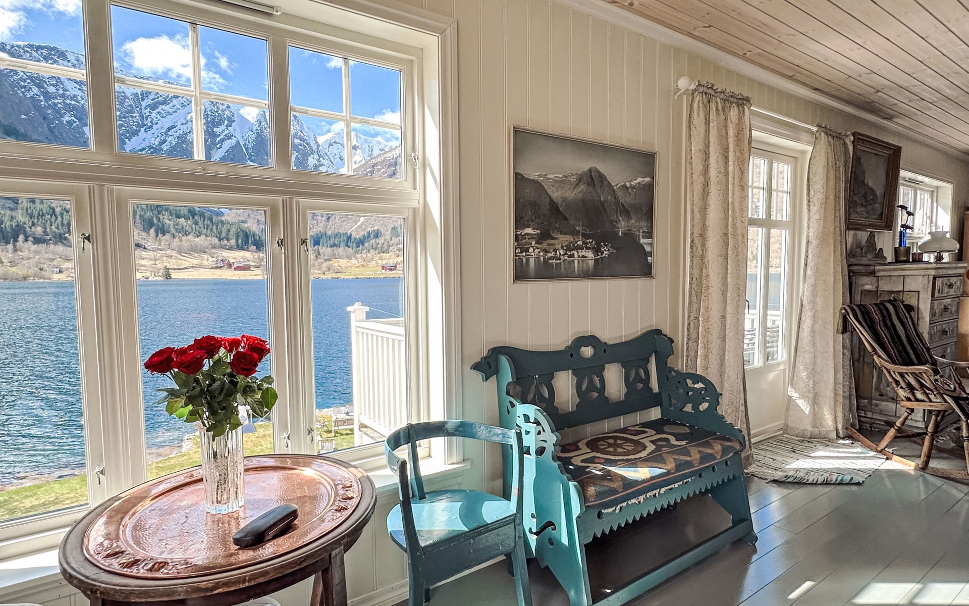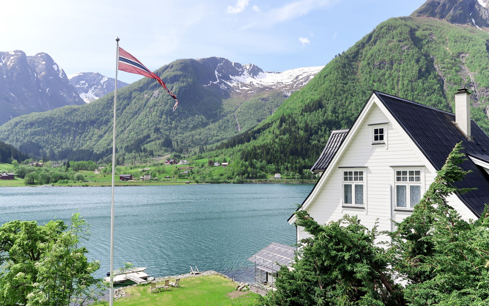 Very beautiful timber house "Villa Esefjord". 6 km from the centre of Balestrand, 41 km from the centre of Sogndal, 50 km from the centre of Høyanger, 30 m from the sea, direct access to the beach. Private: property with meadow. Available: boat (extra). Parking on the premises. Shop 6 km, bus stop "Dragsvik ferjekai" 3.6 km, railway station "Voss" 90 km, ferry "Bergen" 187 km, sandy beach "Balestrand" 6 km. Please note: The owner does not accept any youth groups. Private mooring.