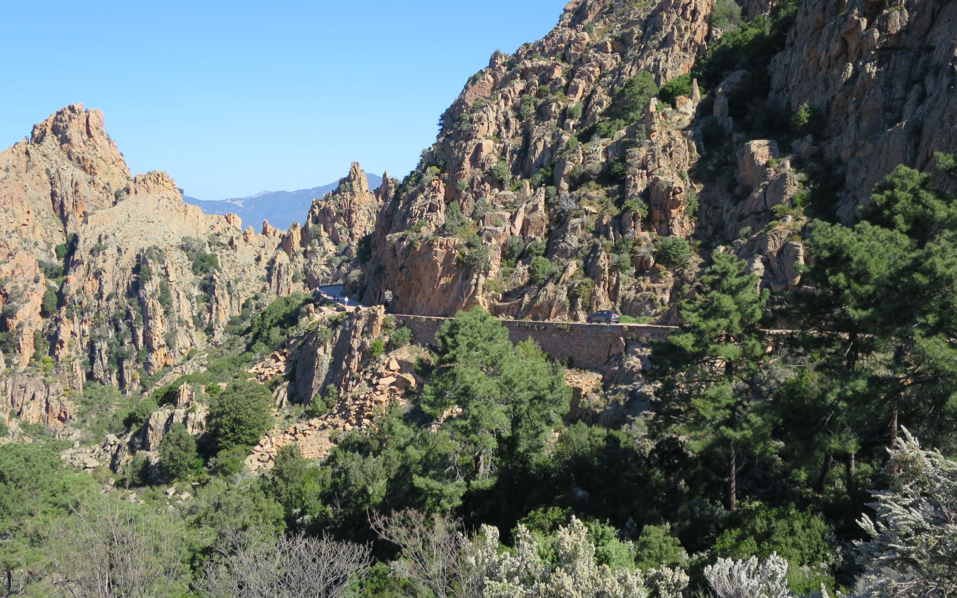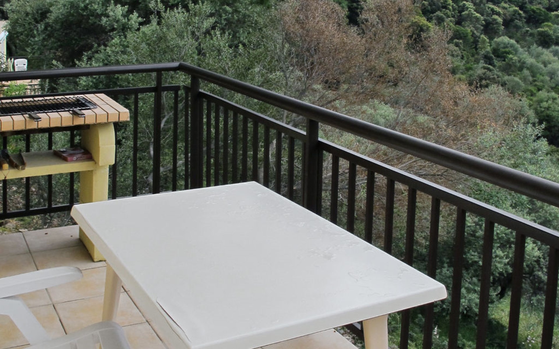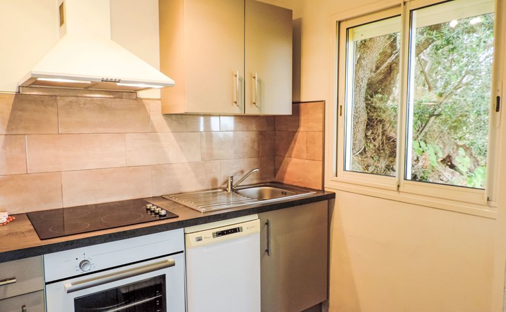 Small, cosy residence "Les Asphodeles", surrounded by trees. 6 houses in the residence. 18 apartments in the residence. 700 m from the centre of Partinello, 14 km from the centre of Porto, 150 km from the centre of Bastia, in a sunny, elevated position on a slope, 4 km from the sea, in the countryside. For shared use: terraced garden (fenced) with 2'000 m2, plants and trees, natural garden. Arbour, garden furniture. In the complex: internet access. Parking on the premises. Supermarket 14 km, bus stop 1 km, pebble beach "Caspiu" 4 km. Please note: car recommended. Residence with electric gates. The photograph shows a typical example.