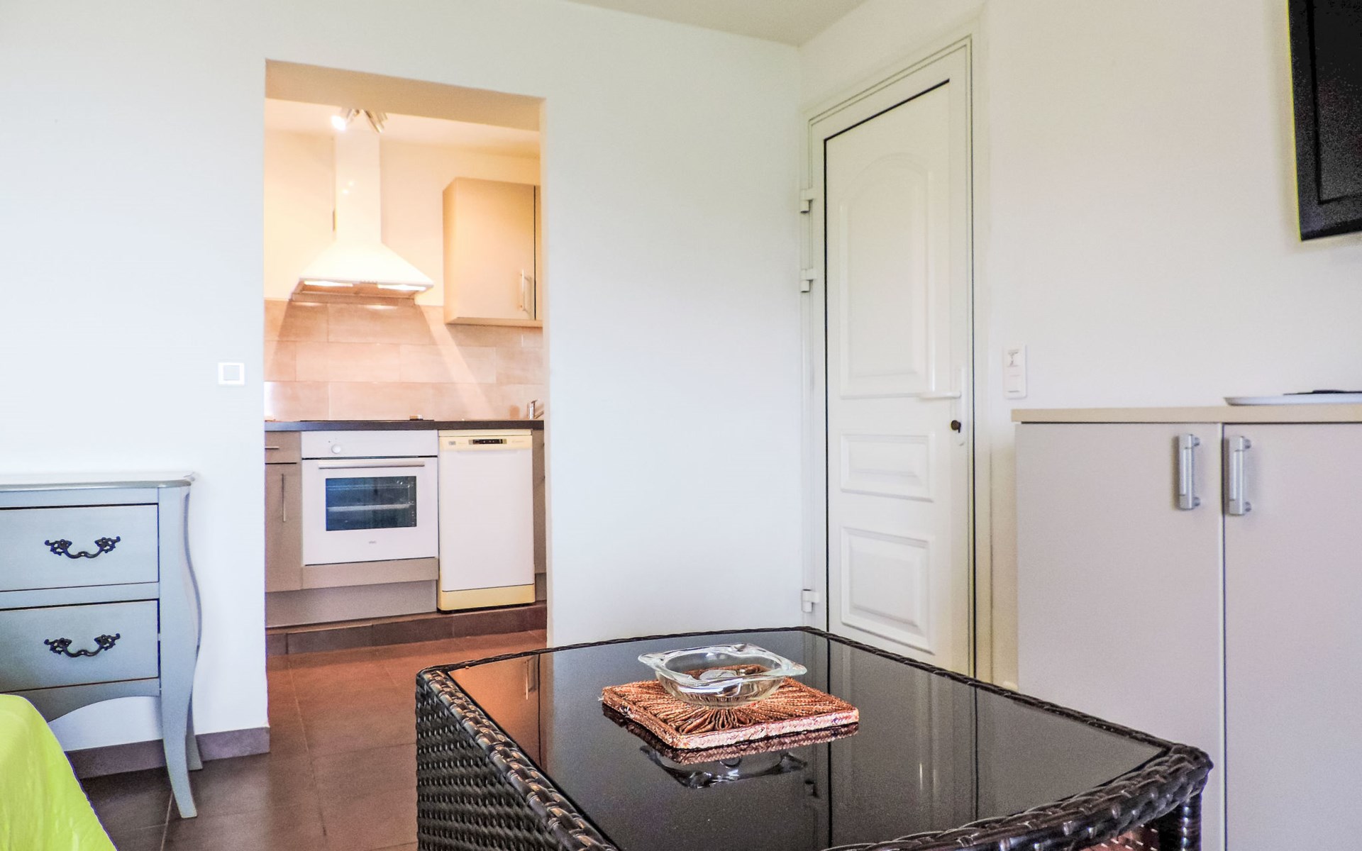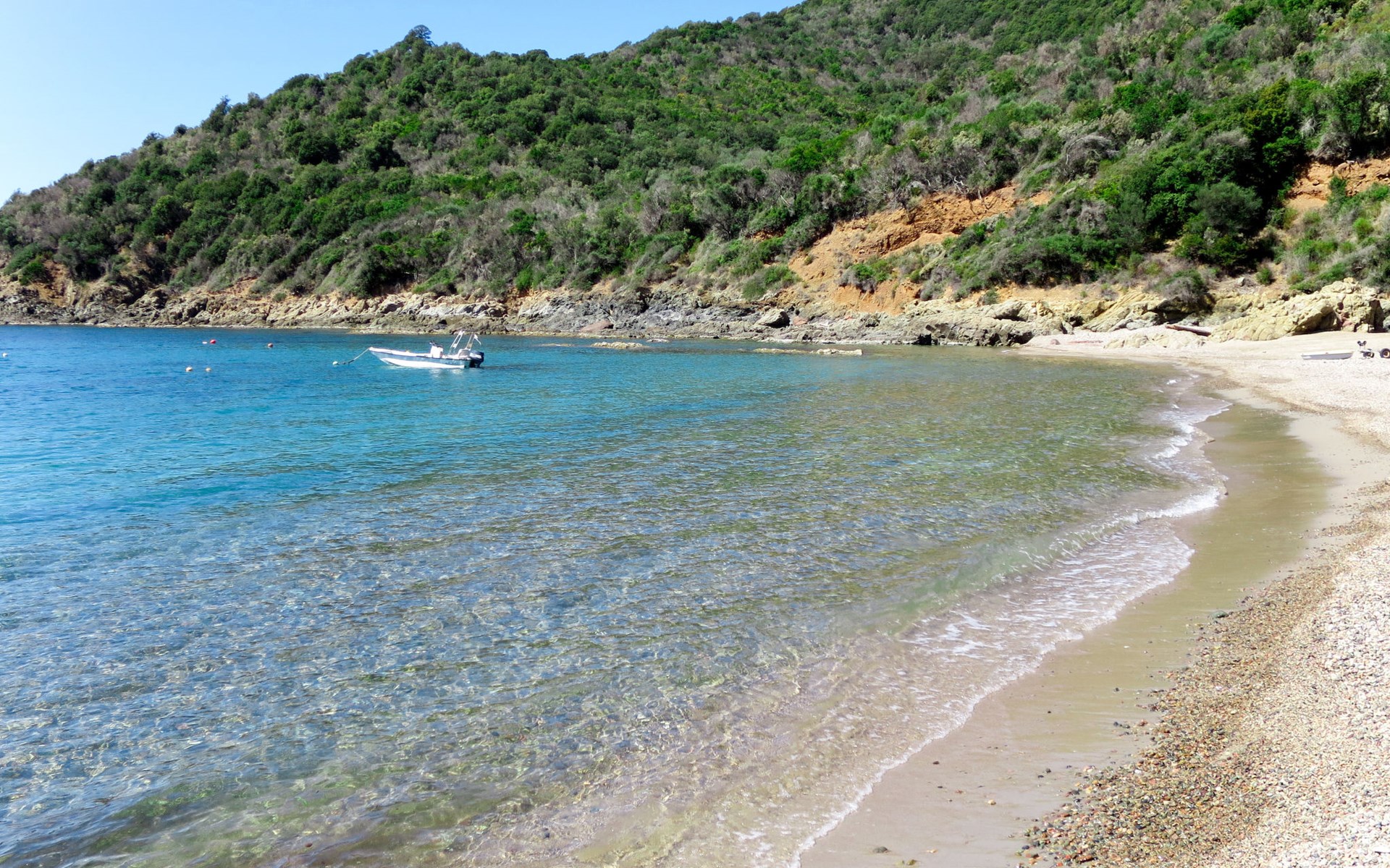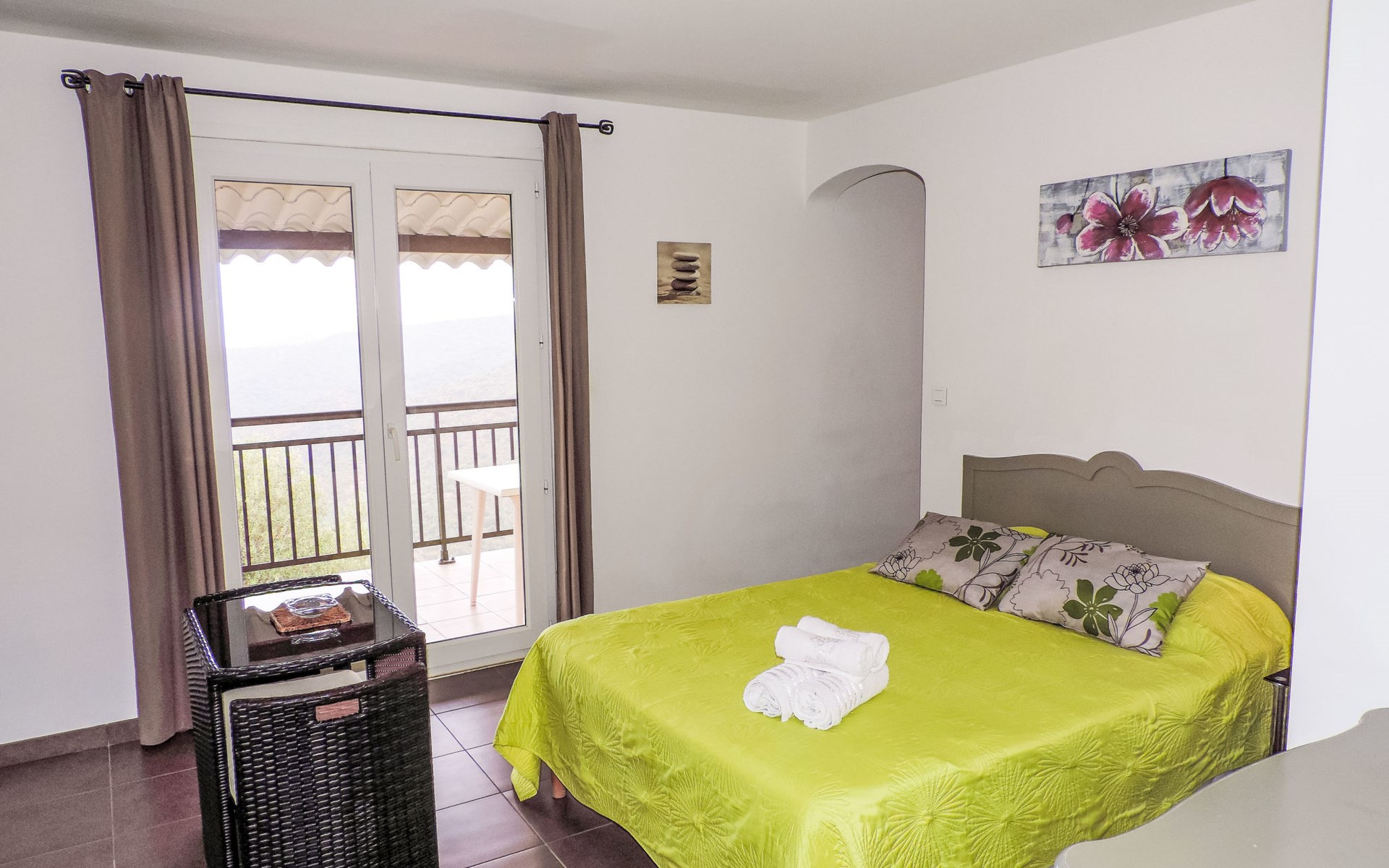 Small, cosy residence "Les Asphodeles", surrounded by trees. 6 houses in the residence. 18 apartments in the residence. 700 m from the centre of Partinello, 14 km from the centre of Porto, 150 km from the centre of Bastia, in a sunny, elevated position on a slope, 4 km from the sea, in the countryside. For shared use: terraced garden (fenced) with 2'000 m2, plants and trees, natural garden. Arbour, garden furniture. In the complex: internet access. Parking on the premises. Supermarket 14 km, bus stop 1 km, pebble beach "Caspiu" 4 km. Please note: car recommended. Residence with electric gates. The photograph shows a typical example.
