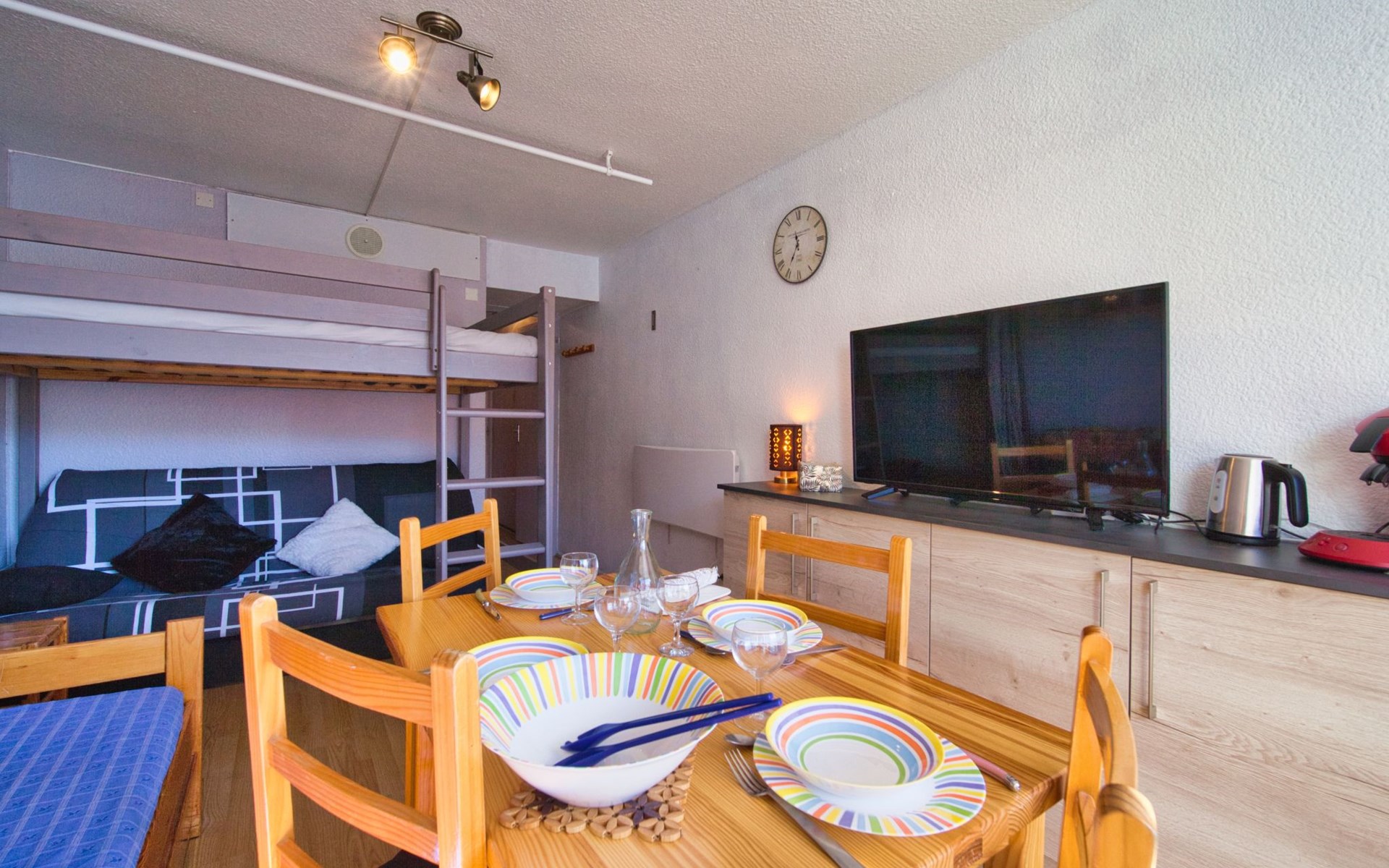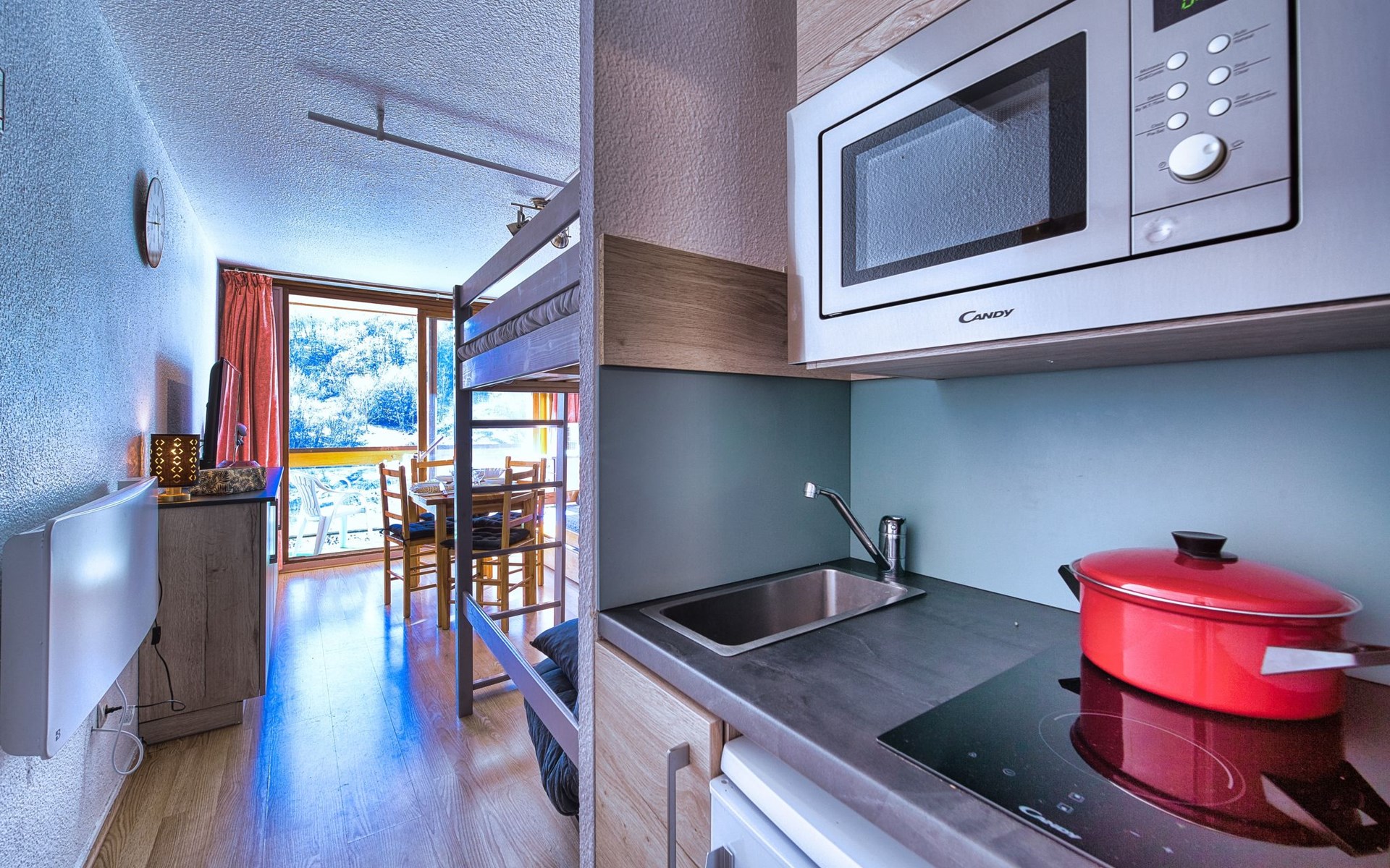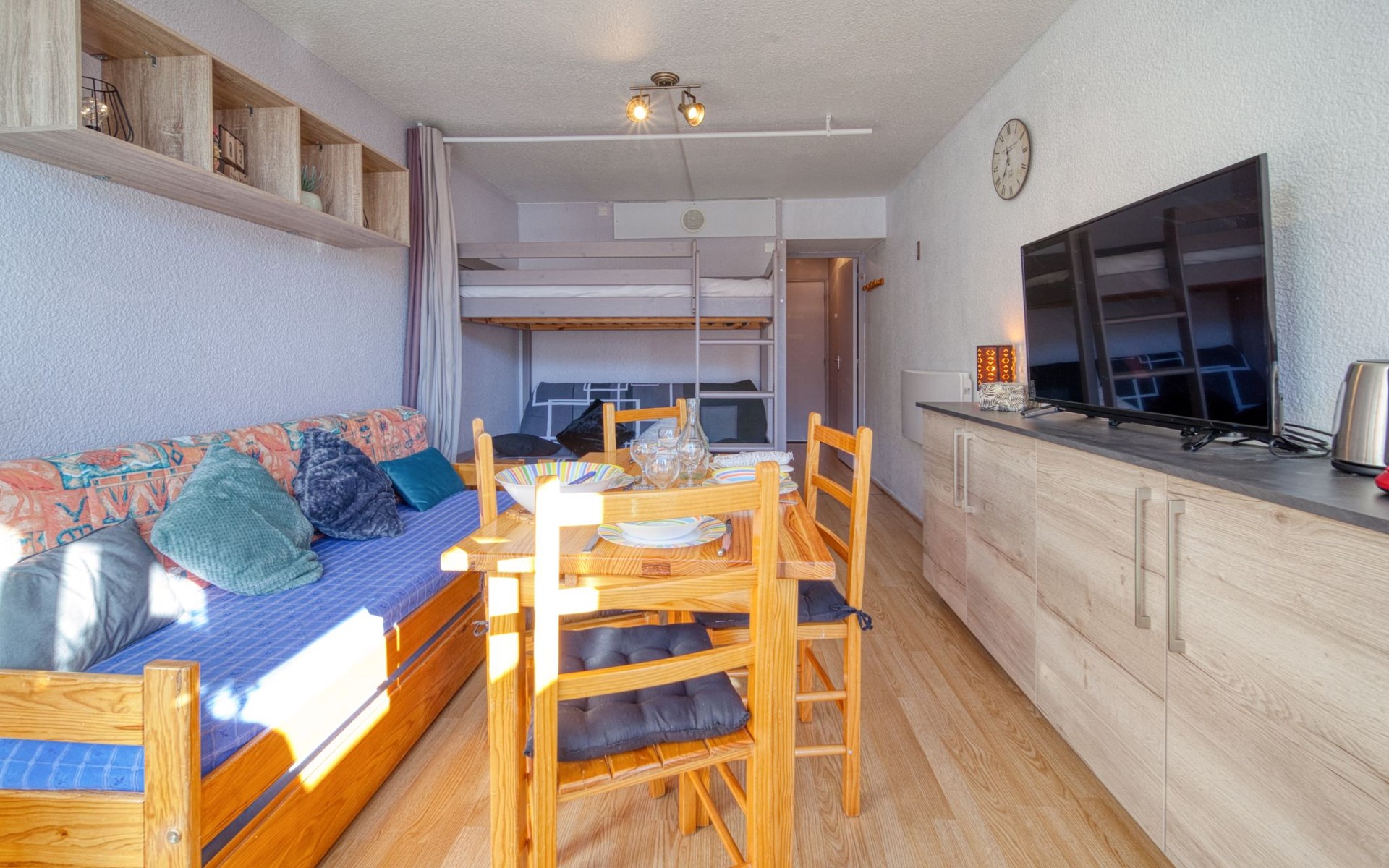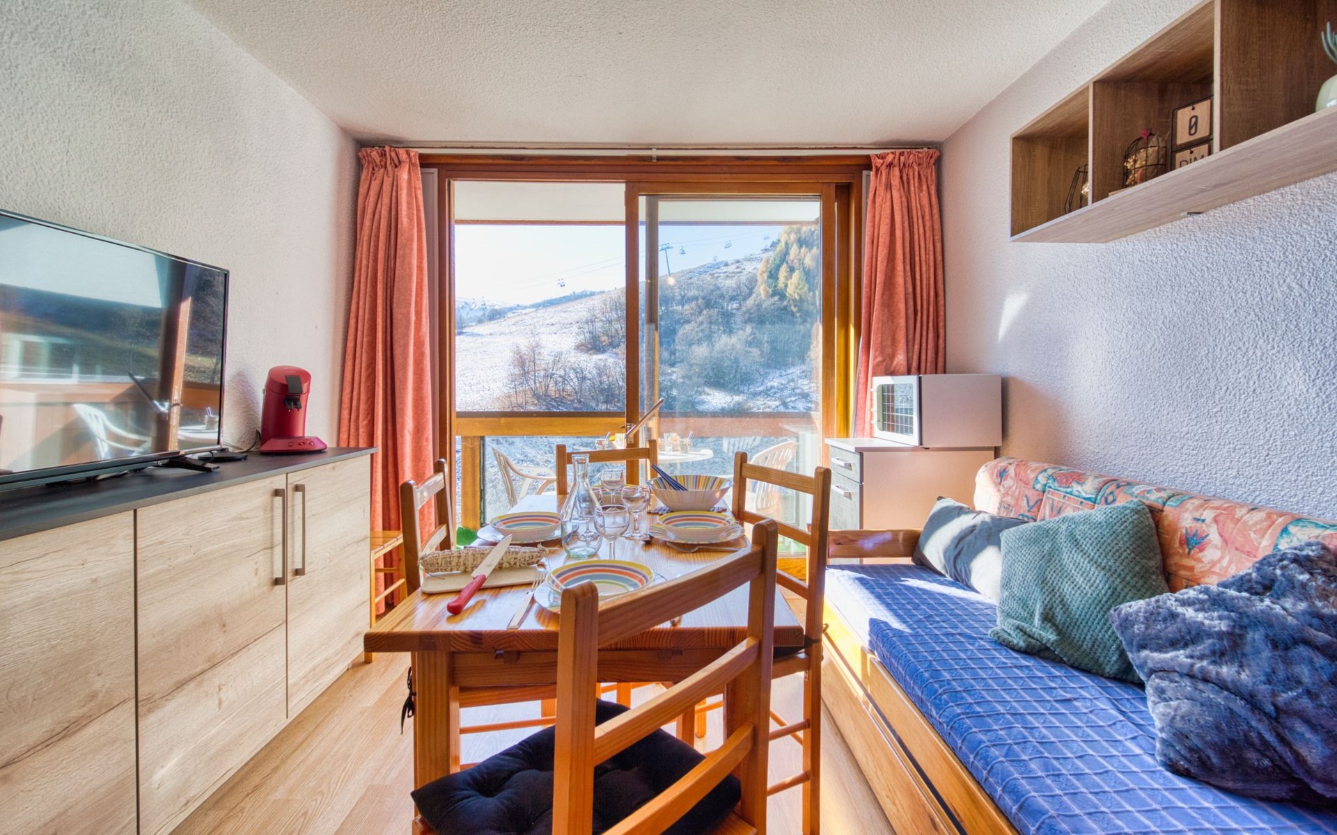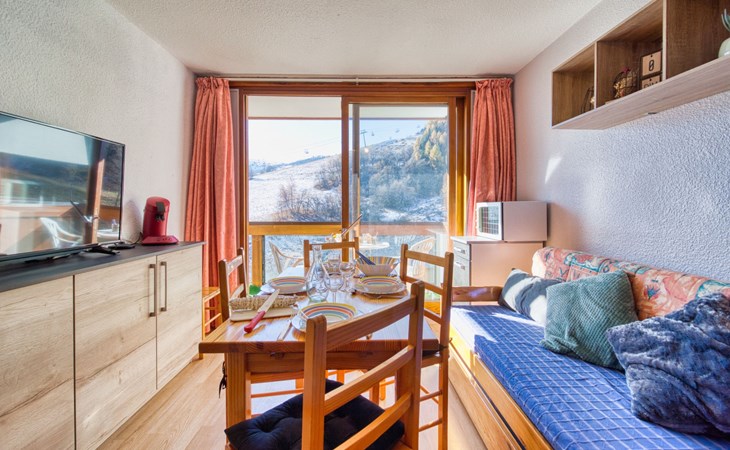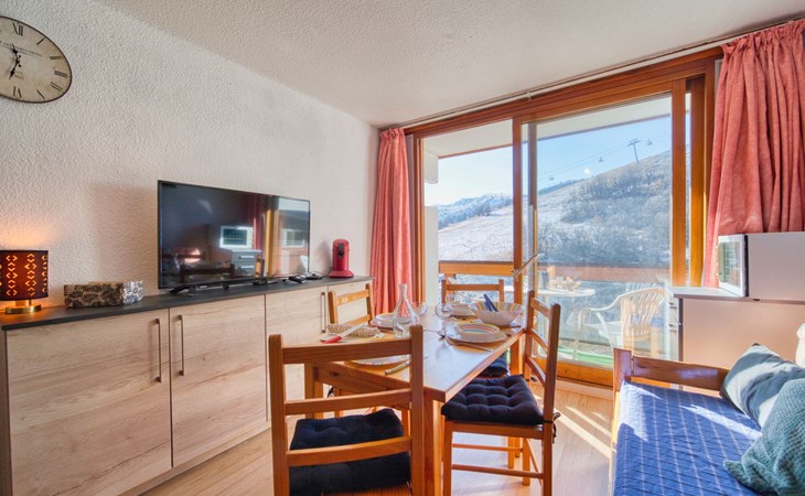 Apartment house "Soyouz Vanguard", 19 storeys. 150 m from the centre, 150 m from the skiing area. For shared use: swimming pool heated (seasonal availability: 14.Dec. - 11.Apr. and 28.Jun. - 29.Aug. pool opening hours: 10:00-19:30). In the complex: internet access, lift, storage room for skis. Public parking. Shop 200 m, grocery 50 m, restaurant, bar 200 m, bus stop 450 m, railway station "St Jean de Maurienne" 15 km, outdoor swimming pool 200 m. Skisport facilities, slopes, ski school 200 m, ski-kindergarten 50 m, sled run 200 m. Please note: Additional accommodations can be booked. The swimming pool facilities are 150 m from the residence at the municipal pool. Entrance for under 3’s is not allowed. Children between 3 and 5 years old are allowed subject to weather conditions (in winter). Entrance tickets to the swimming pool are included in your rental price and will be given to you when you check in.