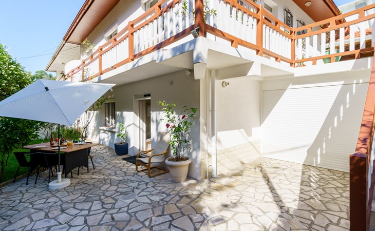 2-family house "Chiquito", 2 storeys. In the district of Lac Mouriscot, in a quiet position in the residential district, 100 m from the edge of the forest, 3.5 km from the sea, 100 m from the lake, 3.5 km from the beach, in the countryside. Private: garden. Shop 600 m, grocery 600 m, supermarket 1.6 km, restaurant 600 m, bakery, café, bus stop "ligne Biarritz-Bayonne" 650 m, railway station "Biarritz" 800 m, sandy beach "Milady" 3.5 km, outdoor swimming pool 3.4 km, thermal baths "Thalmar" 2.4 km, lake Mouriscot 100 m. Golf course (18 hole) 3.7 km, surf school 3.4 km. Nearby attractions: Lac Mouriscot - Promenade des Lacs 100 m, Cité de l'Océan 2.9 km, Marché des Halles 3.5 km, Bayonne 8.3 km, Saint-Jean-de-Luz 14.1 km. Hiking paths: Le Sentier du Littoral 3.4 km, La Rhune 25 km. Please note: the keys‘ handover takes place by the agency Interhome in Biarritz, 3 km. The owner lives in the same residence.