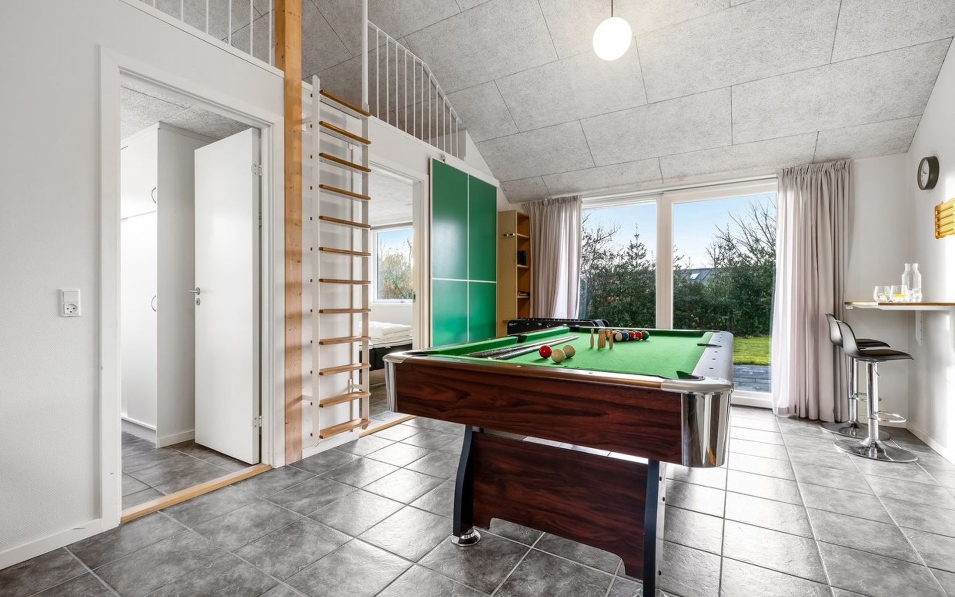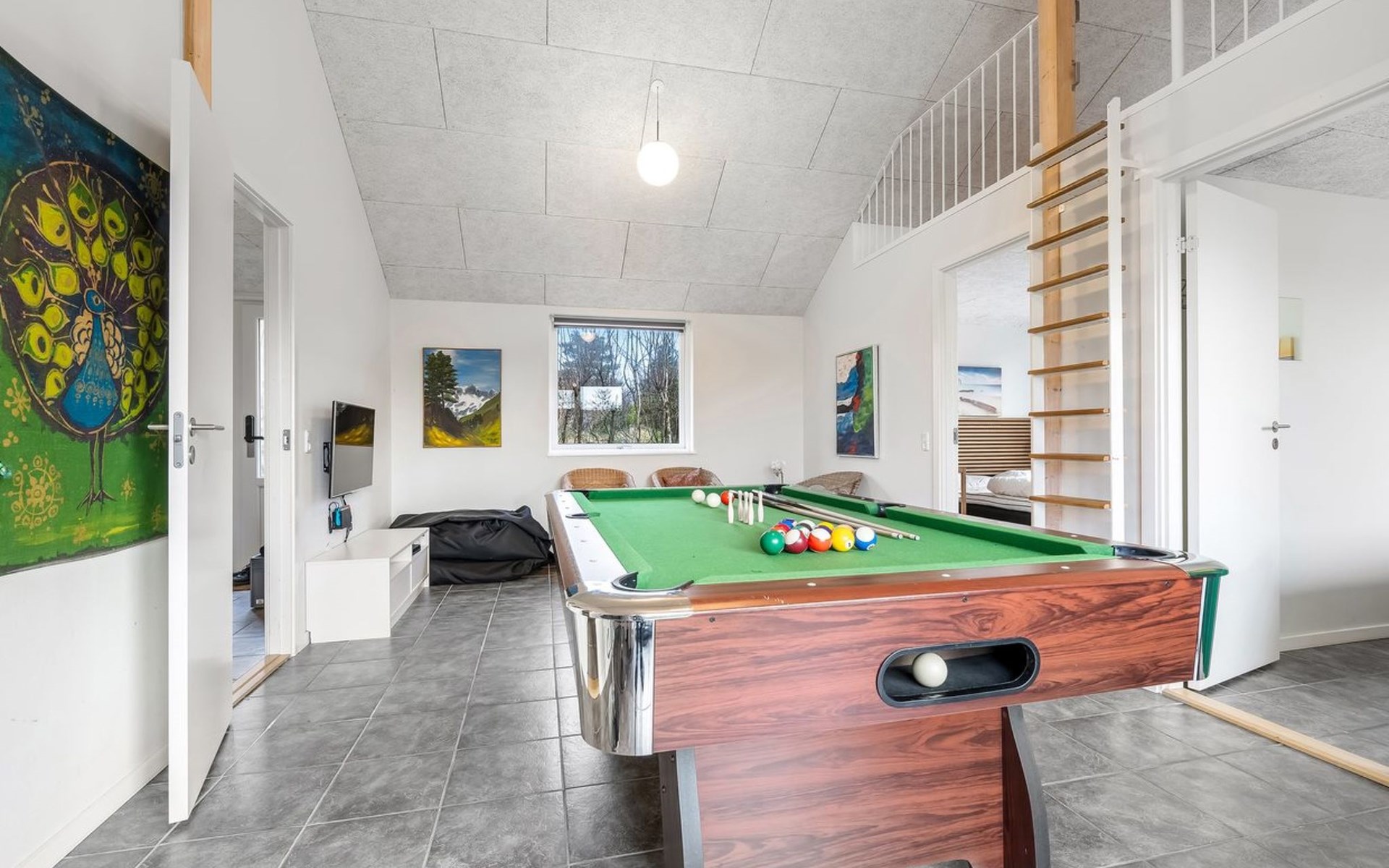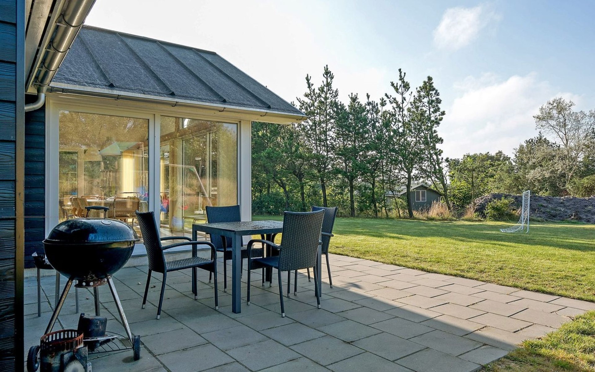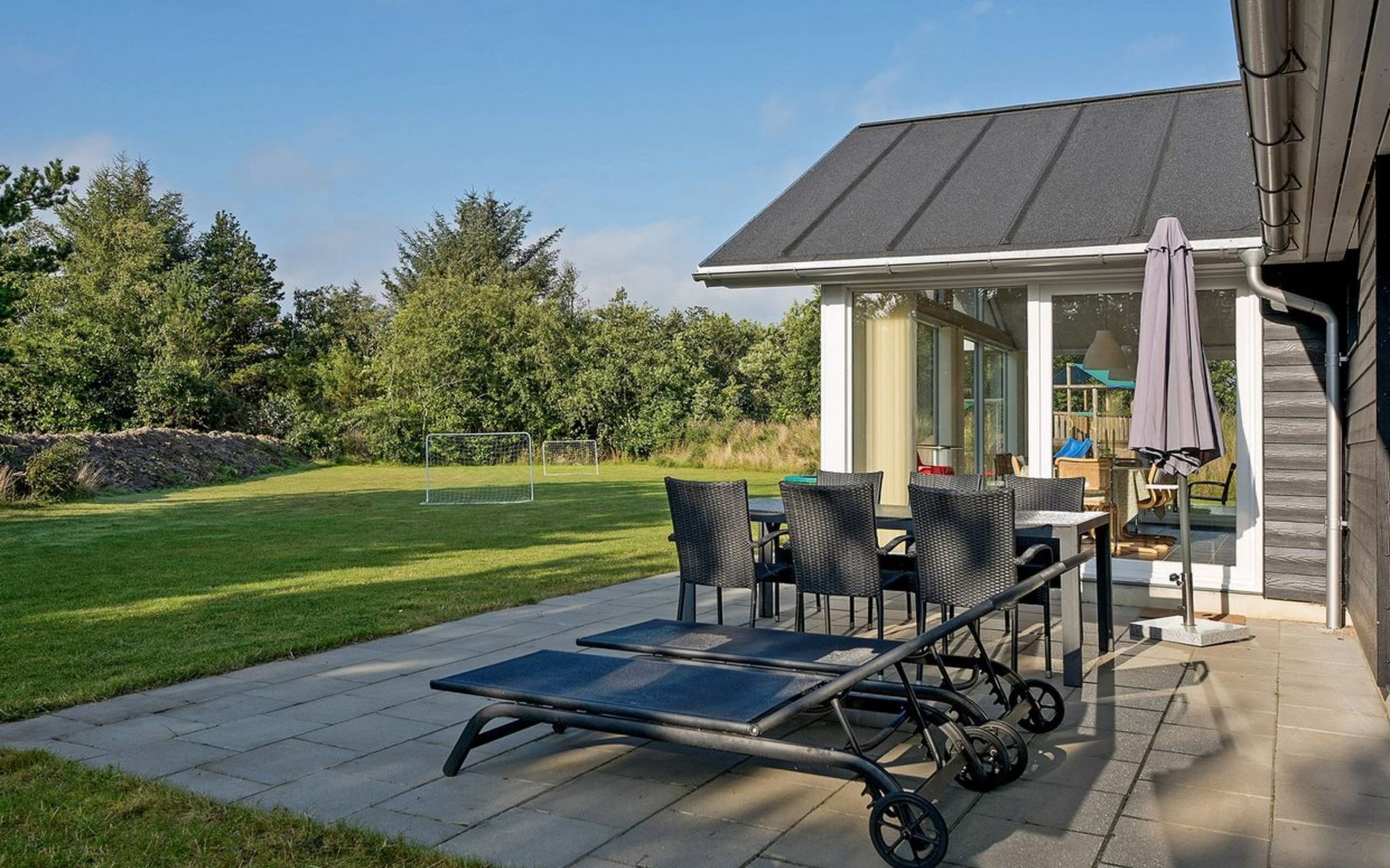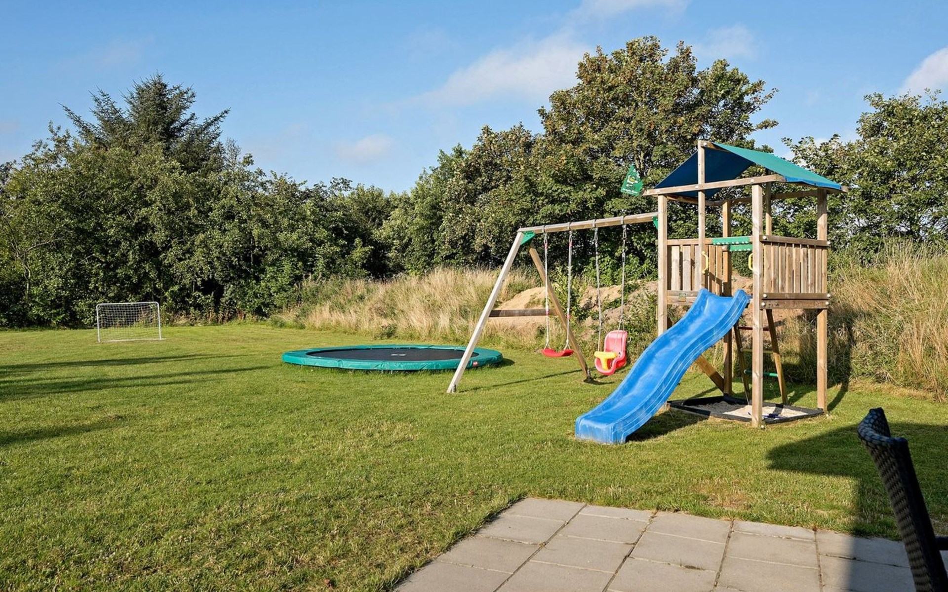 Single-family house, built in 2014. 12 km from the sea. Private: natural state property 1'661 m2. Children's playground (slide, swing). In the house: sauna, trampoline, washing machine, tumble dryer. Parking at the house. E-charging station. Grocery 600 m. The owner does not accept any youth groups.