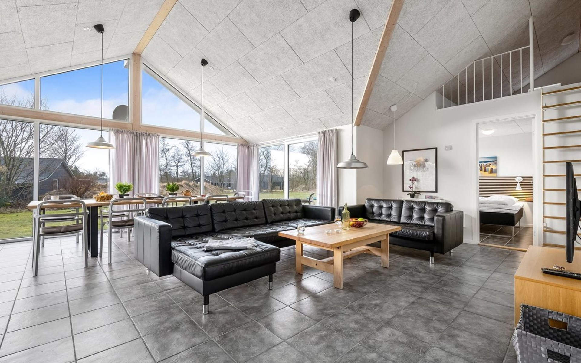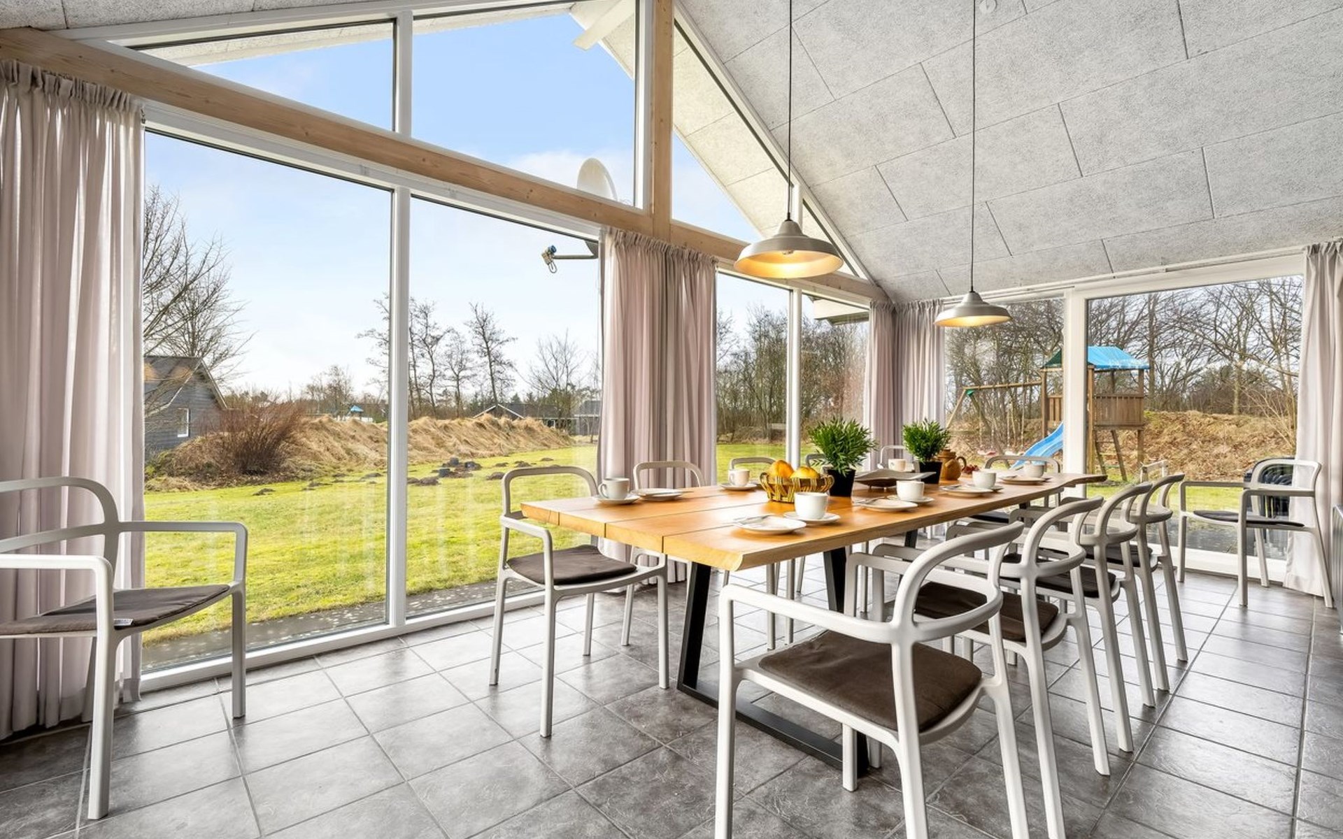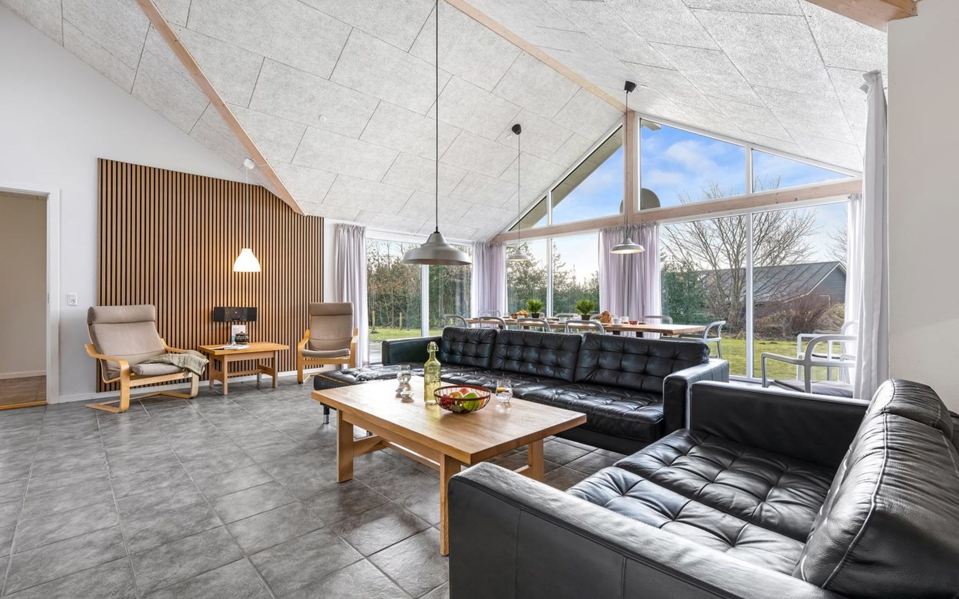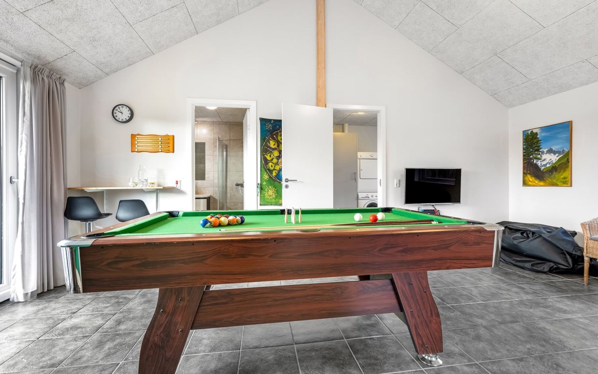 Single-family house, built in 2014. 12 km from the sea. Private: natural state property 1'661 m2. Children's playground (slide, swing). In the house: sauna, trampoline, washing machine, tumble dryer. Parking at the house. E-charging station. Grocery 600 m. The owner does not accept any youth groups.