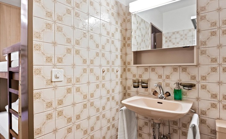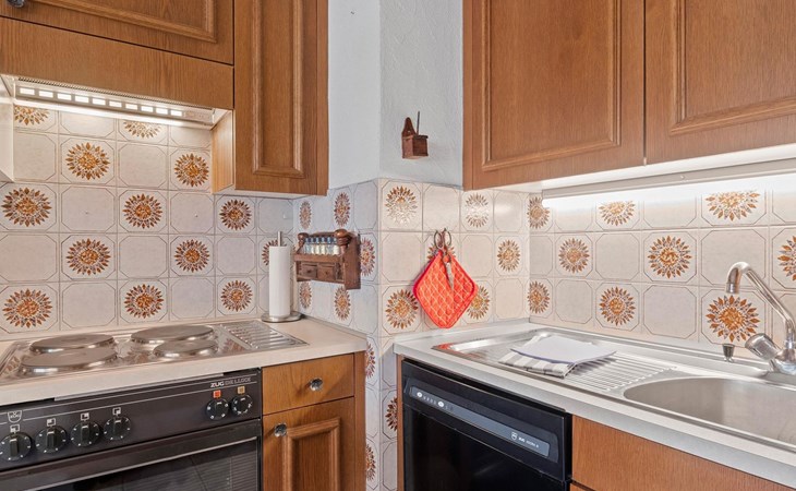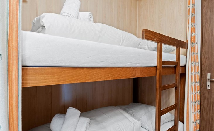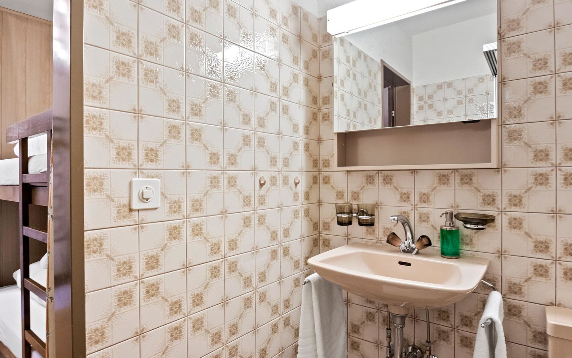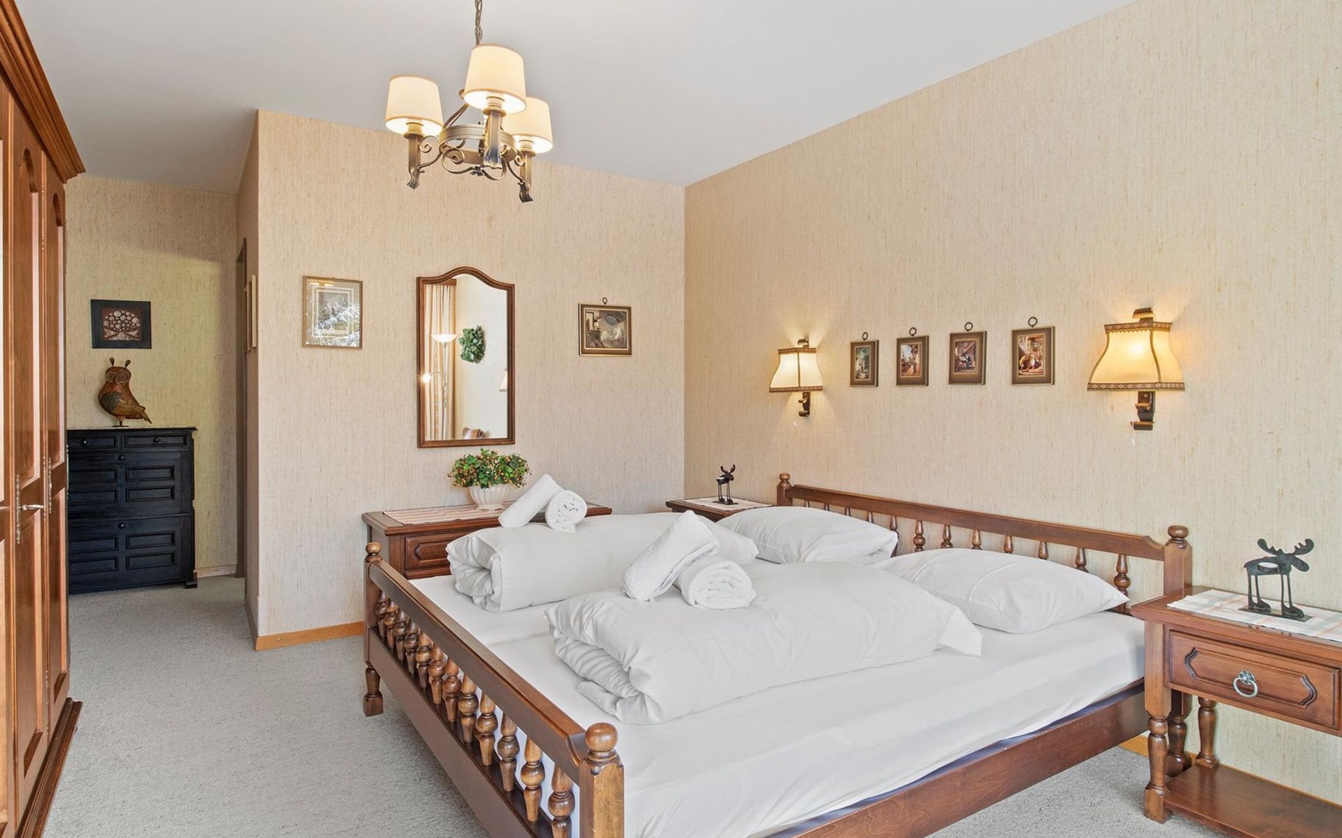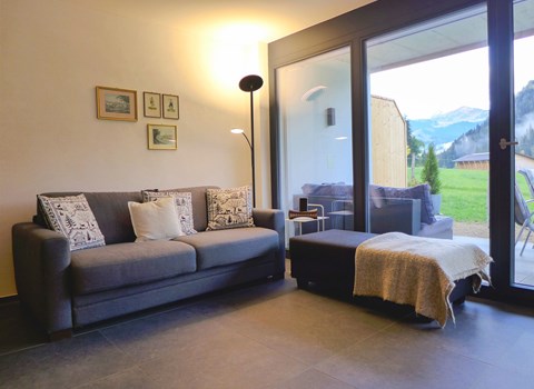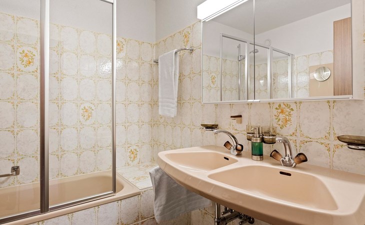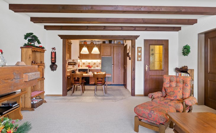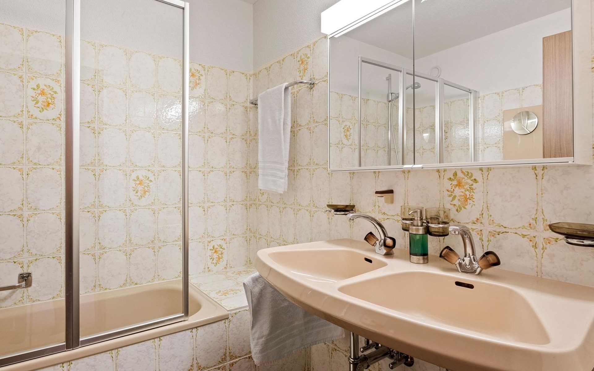 Triangle house D / 2nd floor / Lift / no wifi / 1 room with double bed / 1 bunk bed in the entrance area behind a curtain / 1 bathroom with WC and bathtub / 1 bathroom with WC and shower. The flat is very centrally located and a good starting point for hikes, bike tours or in winter direct access to the ski area.