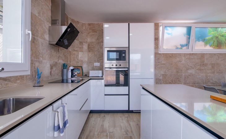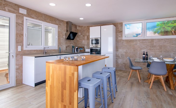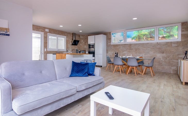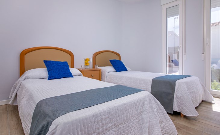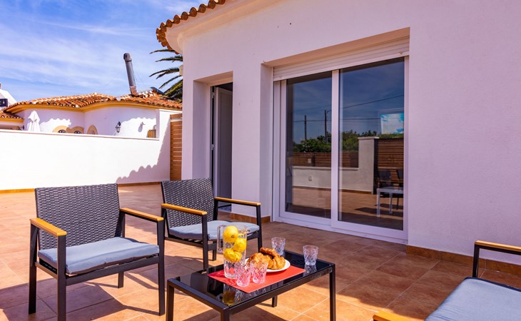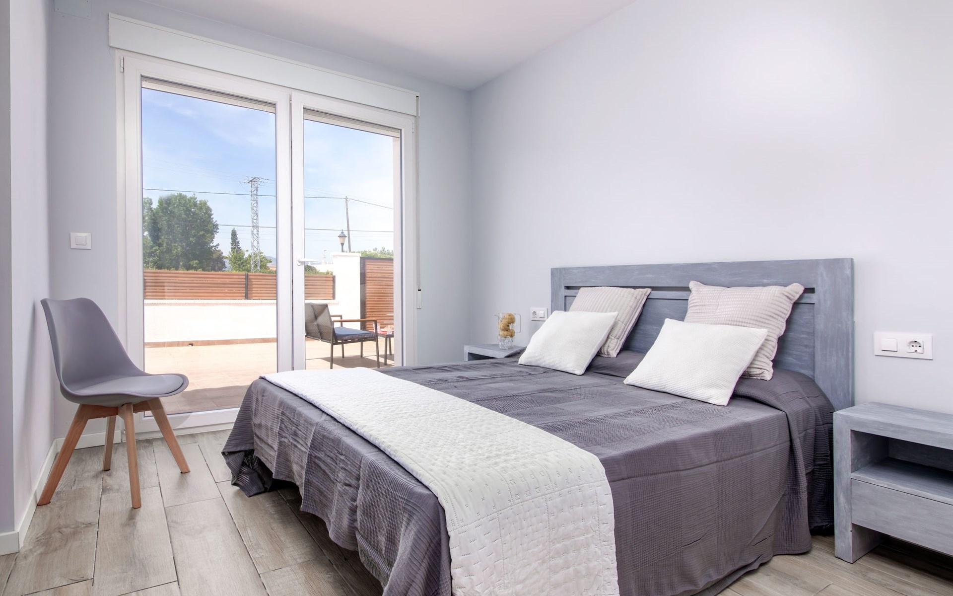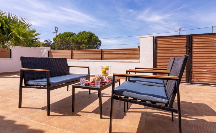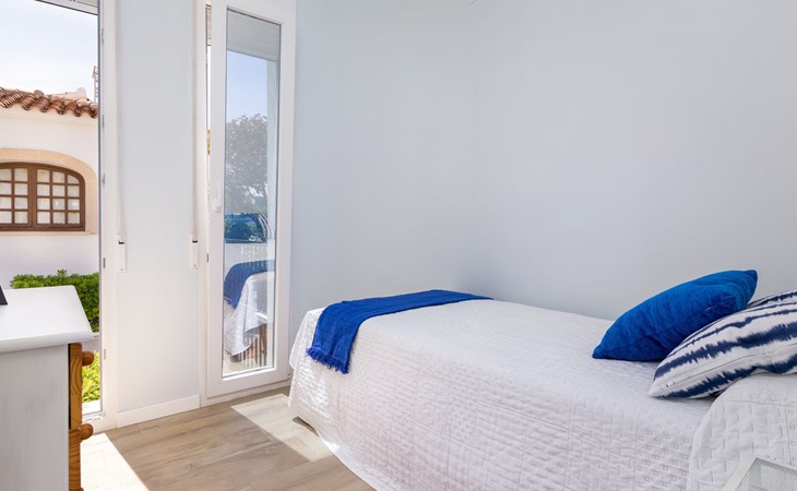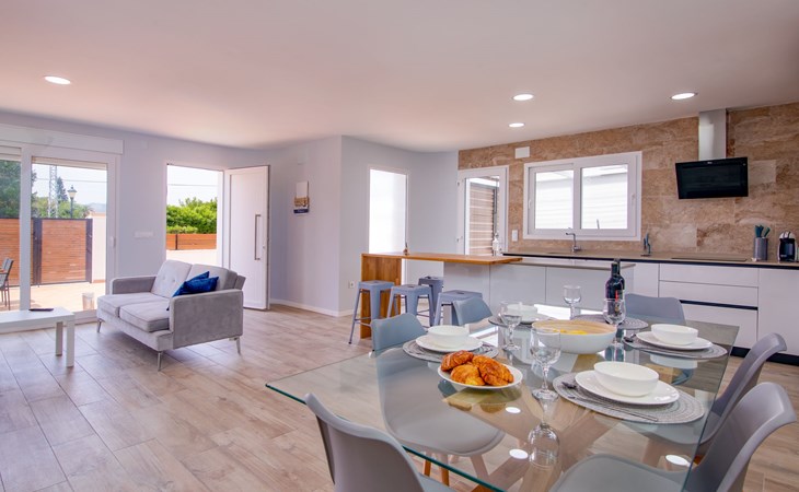 Very beautiful, cosy house "Nueva Playa", renovated in 2021. In the district of La Playa de les Deveses, in the resort 5 km from the centre of Els Poblets, outside the resort, 11 km from the centre of Dénia, 170 m from the sea, 170 m from the beach, direct access to the beach. For shared use: well-kept garden with lawn and plants, swimming pool (20 x 10 m, depth 110 - 180 cm, seasonal availability: 01.Jan. - 31.Dec. pool opening hours: 10:00-15:00 and 17:00-22:00). Children's pool, outdoor shower. Private: terrace, garden furniture, parking at the house. Grocery 100 m, supermarket 200 m, restaurant 10 m, bar 10 m, bus stop 200 m, sandy beach 170 m. Golf course (18 hole) 4 km. The owner does not accept any youth groups.