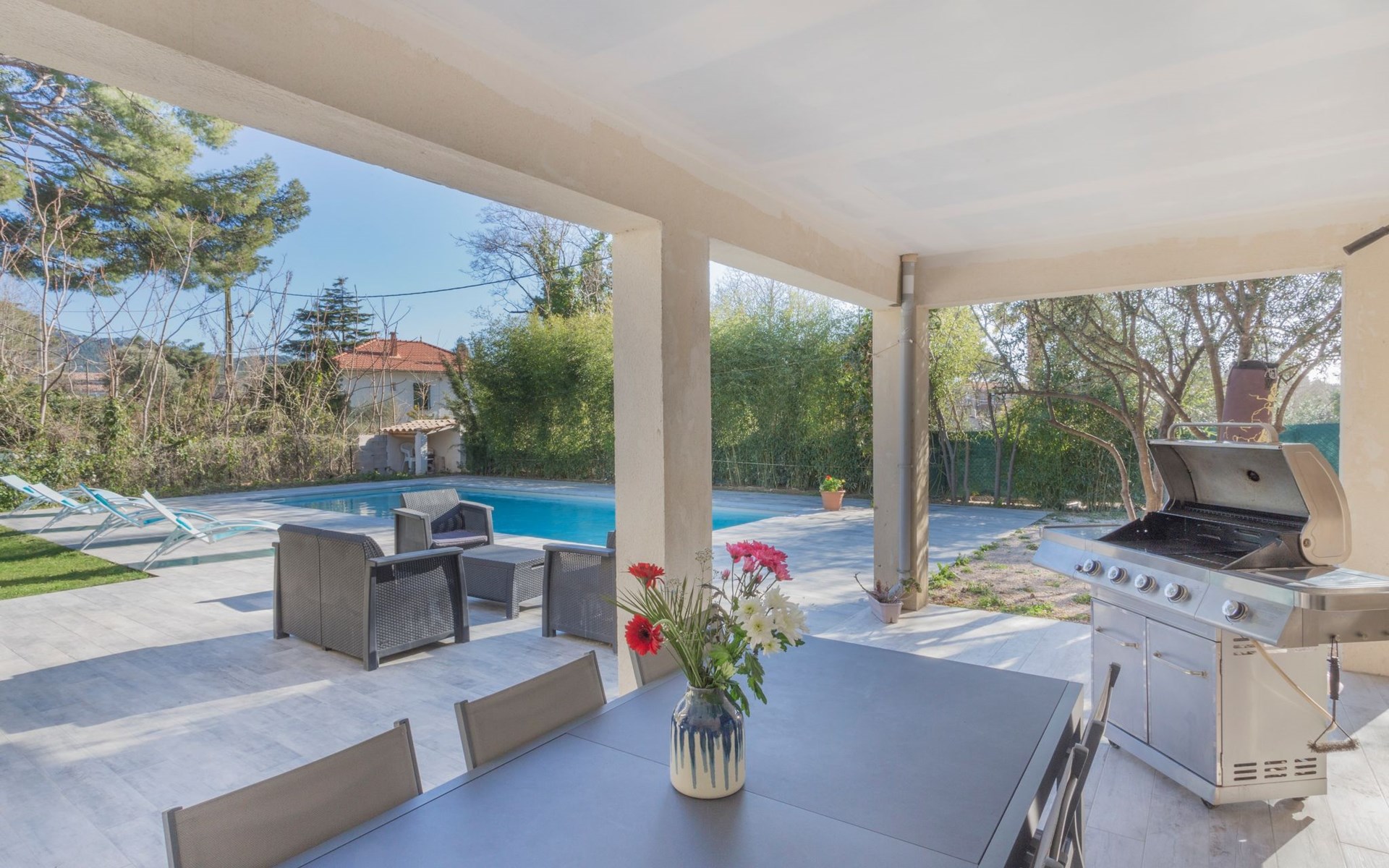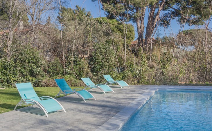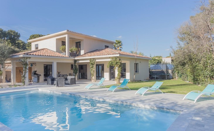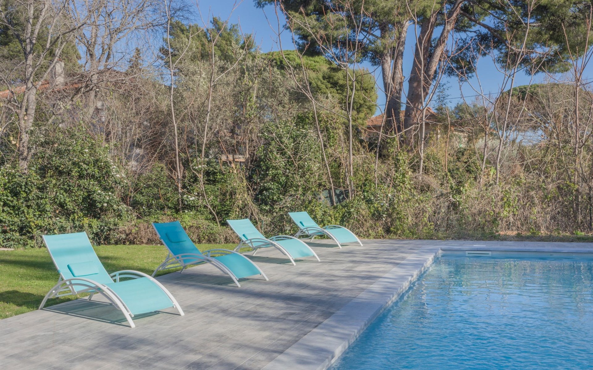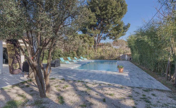 2 km from the centre of Saint Cyr sur Mer, 9 km from the centre of La Ciotat, 10 km from the centre of Bandol, in the residential district, 400 m from the sea. Private: well-kept garden 700 m2 (fenced), swimming pool angular (10 x 5 m, depth 120 - 168 cm, seasonal availability: 01.Apr. - 01.Nov.). Parking (for 3 cars) on the premises. Shop, restaurant, bar, bakery, café 400 m, bus stop 350 m, railway station "Saint Cyr" 1.6 km, sandy beach "Les Lecques" 400 m. Sports harbour 1 km. Nearby attractions: Aqualand Saint Cyr 1.5 km, Calanques de Cassis, Iles de Porquerolles, Iles des Embiez. Hiking paths: Parc National des calanques. The owner does not accept any youth groups. Pool equipped with a safety cover Noise-sensitive environment Parties prohibited. balcony without railings.