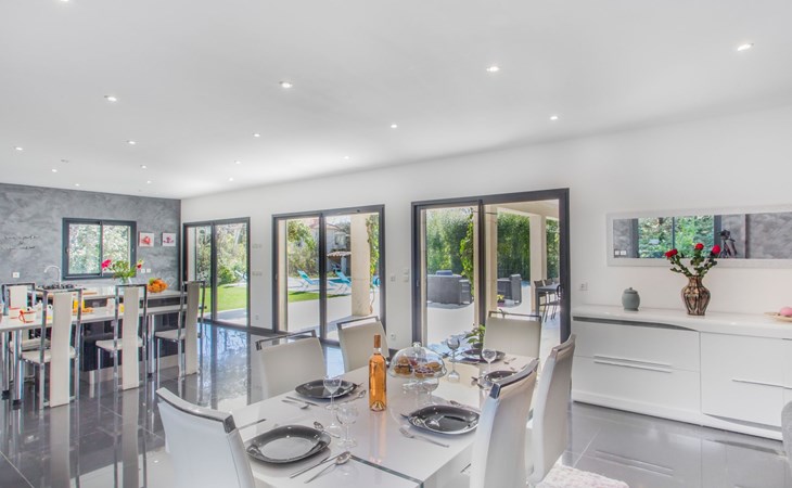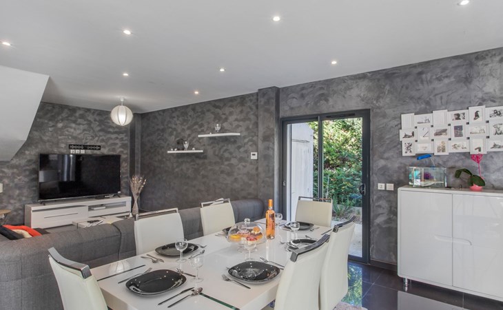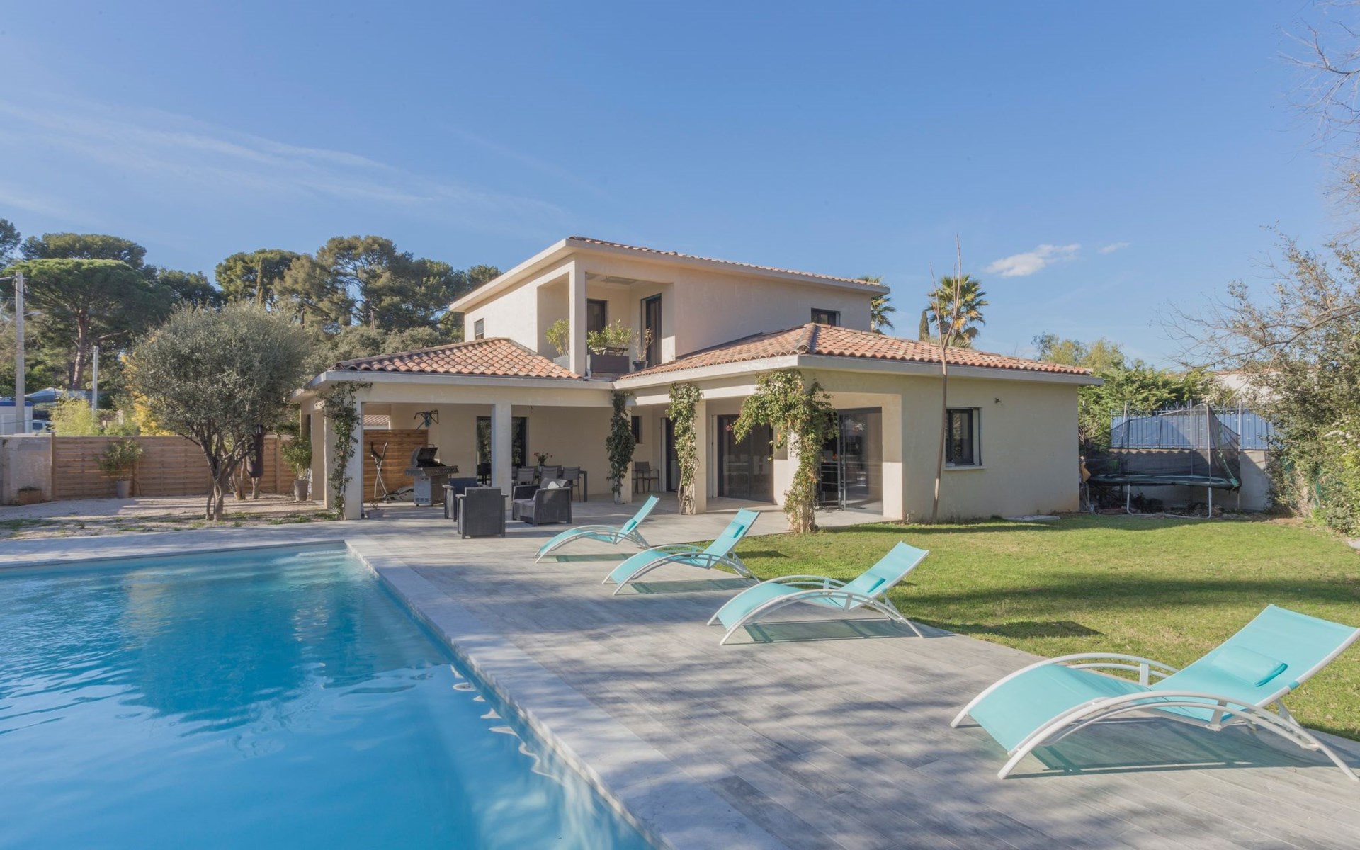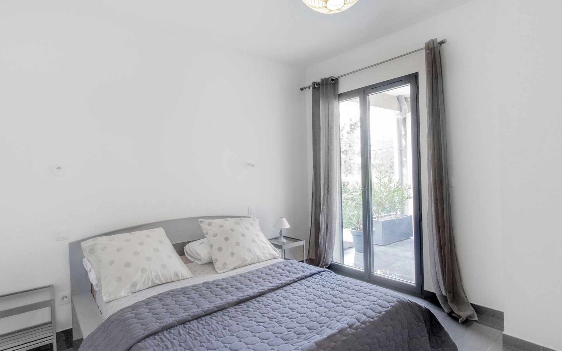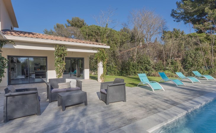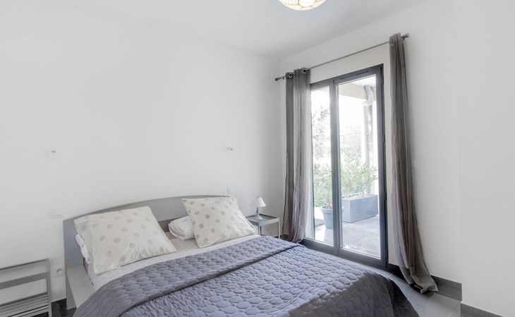 2 km from the centre of Saint Cyr sur Mer, 9 km from the centre of La Ciotat, 10 km from the centre of Bandol, in the residential district, 400 m from the sea. Private: well-kept garden 700 m2 (fenced), swimming pool angular (10 x 5 m, depth 120 - 168 cm, seasonal availability: 01.Apr. - 01.Nov.). Parking (for 3 cars) on the premises. Shop, restaurant, bar, bakery, café 400 m, bus stop 350 m, railway station "Saint Cyr" 1.6 km, sandy beach "Les Lecques" 400 m. Sports harbour 1 km. Nearby attractions: Aqualand Saint Cyr 1.5 km, Calanques de Cassis, Iles de Porquerolles, Iles des Embiez. Hiking paths: Parc National des calanques. The owner does not accept any youth groups. Pool equipped with a safety cover Noise-sensitive environment Parties prohibited. balcony without railings.