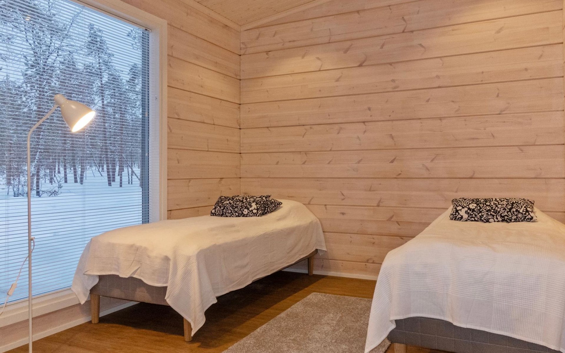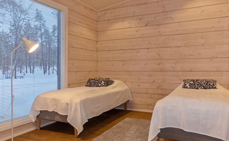 327 km to the north of Rovaniemi, 25 km to the southwest of Inari town, Lake Paatari 500 m (length 12 km, width 2 km). The lake is not visible from the cabin. There is a driveway from the cabin to the shore with a boat ramp. The beach is shared, having a shallow, sandy bottom. A boat (brand Kala-Palta) with a 15 hp Yamaha engine is available for rent from the owner at an additional cost of €400.