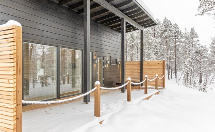Villa Paadari is a modern log house situated in the beautiful and rugged landscapes near Lemmenjoki National Park, on the shores of fishy Lake Paatari. The outdoor hydro massage bath (at extra fee) is on the covered terrace, in use year-round.