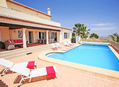 Gran Sol 3 km from Calpe: Large, child friendly house "Nadine", 2 storeys. Outside the resort, 3 km from the centre of Calpe, in the district Gran Sol, in a sunny position residential area (villas), 1.8 km from the sea, 1.8 km from the beach. Private: property 914 m2 (fenced), orchard, swimming pool fenced (4 x 8 m, seasonal availability: 01.Jan. - 31.Dec.). Outdoor shower, garden furniture. In the house: washing machine, heating available only from 01.Nov. - 30.Apr.. Parking. Shop 3.3 km, grocery 3.3 km, supermarket 3.3 km, restaurant 3.1 km, café 3.1 km, pub garden 3.1 km, bus stop "Parroqui La Merced" 2.6 km, sandy beach "Playa La Fustera" 1.8 km, swimming bay 1.8 km. Sports harbour 2.6 km, marina 2.6 km, surf school 2.6 km, sailing school 2.6 km. Nearby attractions: Peñon de Ifach 5.4 km, Parque Las Salinas 4.8 km. Hiking paths: Sendero la Calaga 2.6 km. Please note: car recommended. Suitable for families.