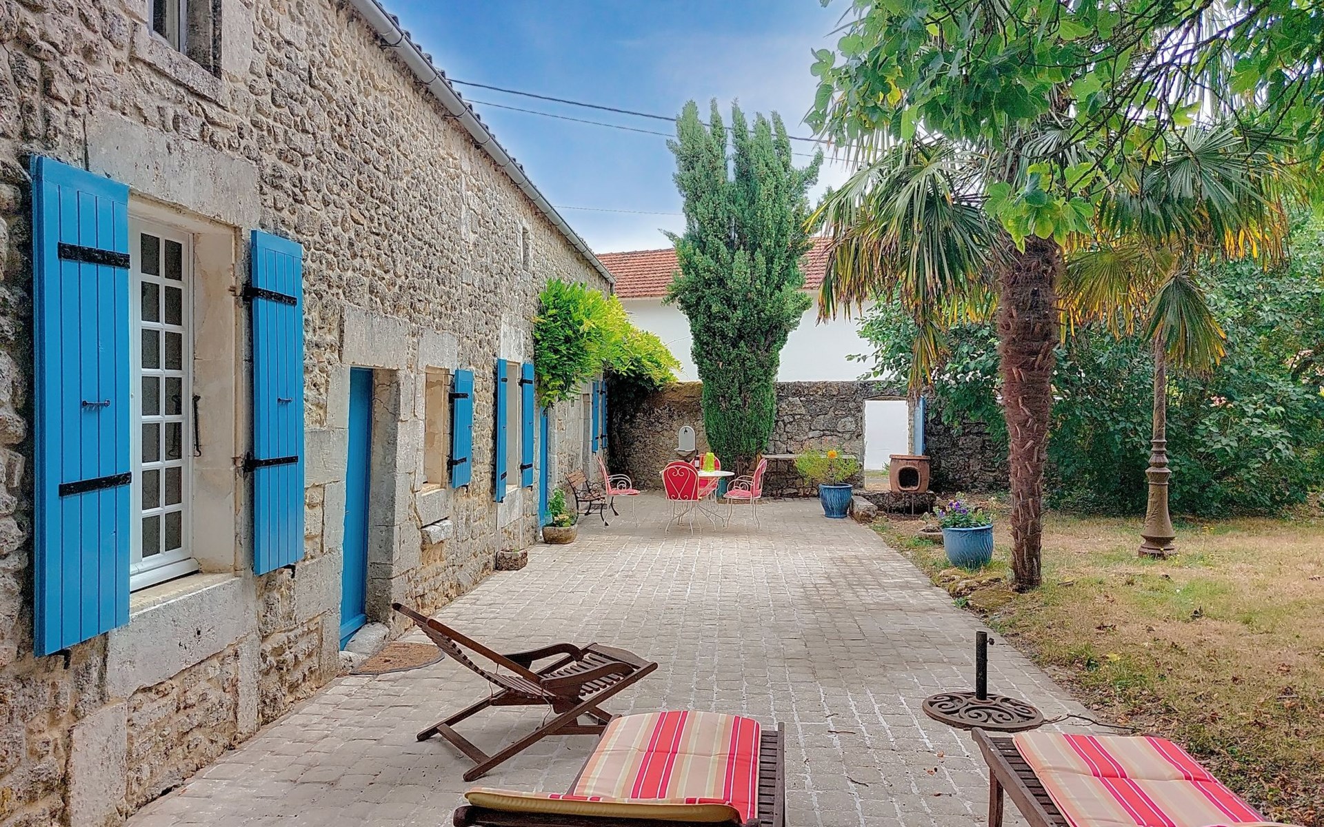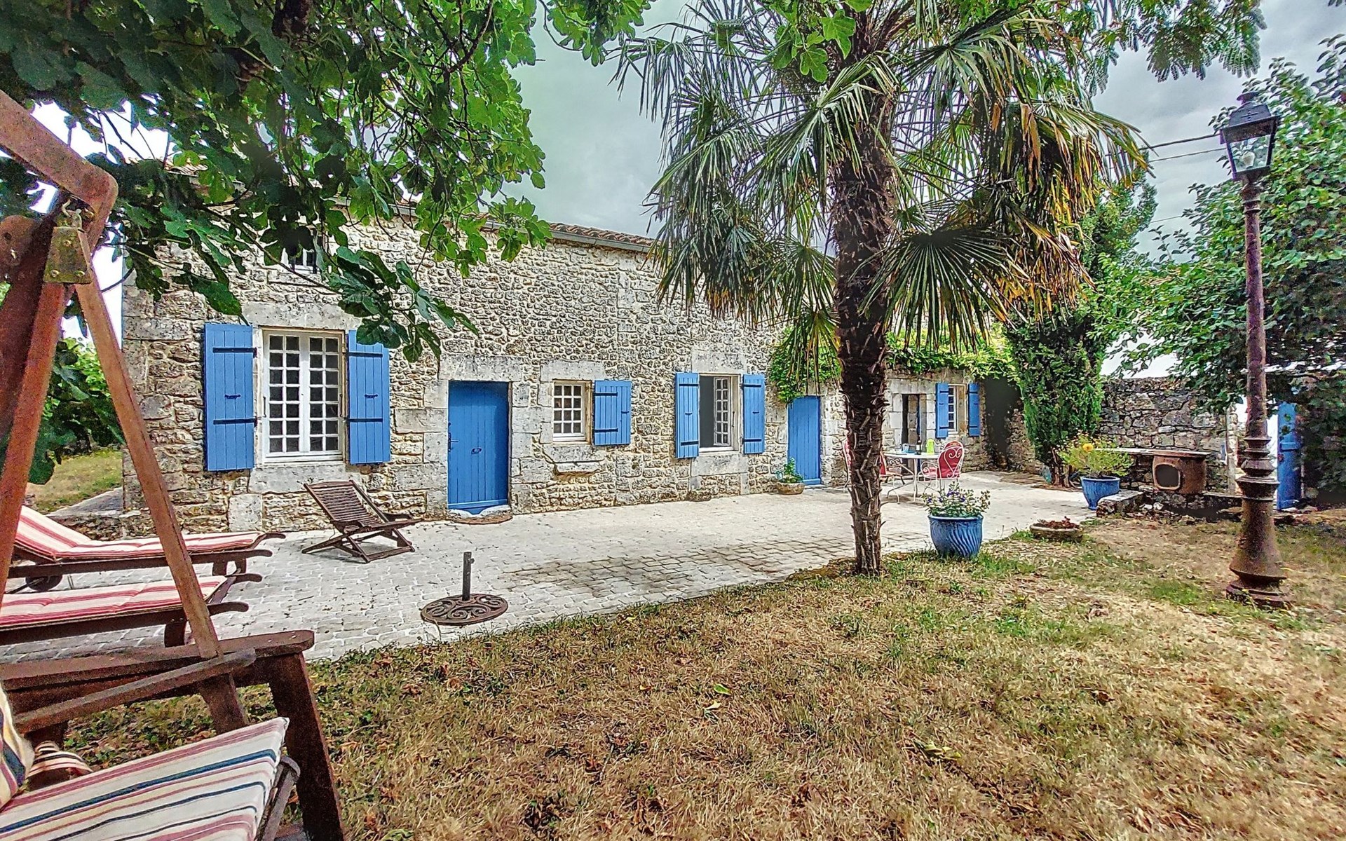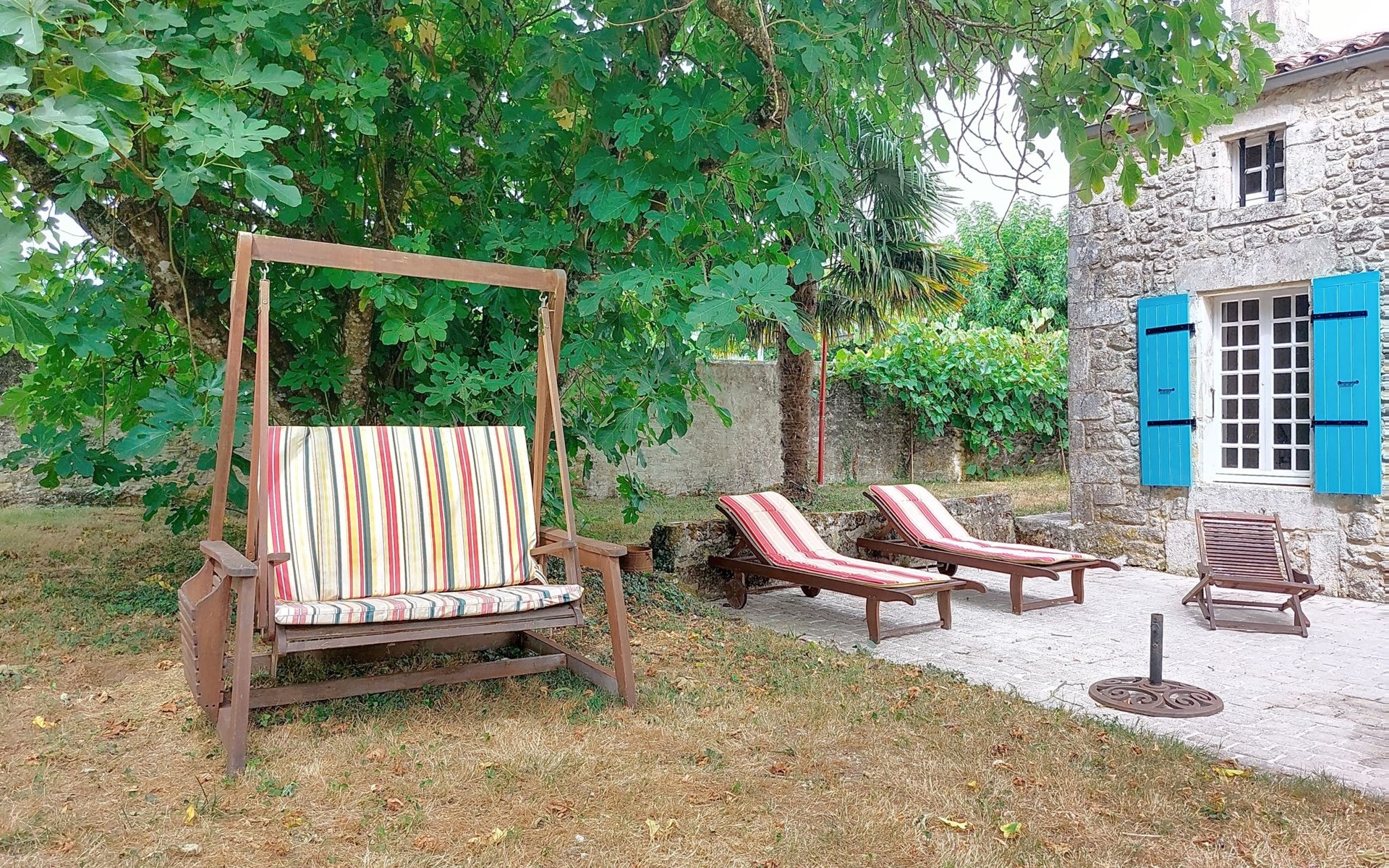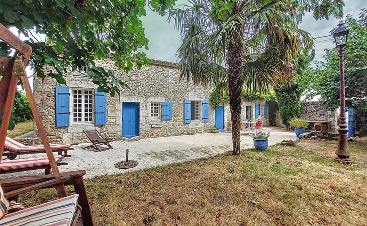 Sainte Gemme 24 km from Royan: Country house "Les Vidalières", from the 18th century, renovated. 3 km from the centre of Sainte Gemme, 25 km from the centre of Royan, 25 km from the centre of Saintes, in a quiet position, 25 km from the beach. Private: property 800 m2 (fenced), trees, roofed, parking (for 2 cars) at the house on the premises. Grocery 3 km, restaurant 3 km, bus stop "Mirambeau" 10 km, railway station "Saujon" 17 km, sandy beach "Royan" 25 km, park "Luna Park (Juillet-Août)" 33 km, outdoor swimming pool 14 km, indoor swimming pool 14 km, thermal baths "Etablissement thermal de Saujon" 13 km. Golf course (18 hole) 26 km, tennis 3 km, riding stable 26 km. Nearby attractions: La Ferme de Magné 8 km, Palais des Congrès - Royan 25 km, Embarcadère Royan - Le Verdon 25 km, Golf de Royan 30 km, Zoo de La Palmyre 33 km, Hippodrome - La Palmyre 34 km. Please note: car recommended. The house is in the middle of the countryside near a small farm.