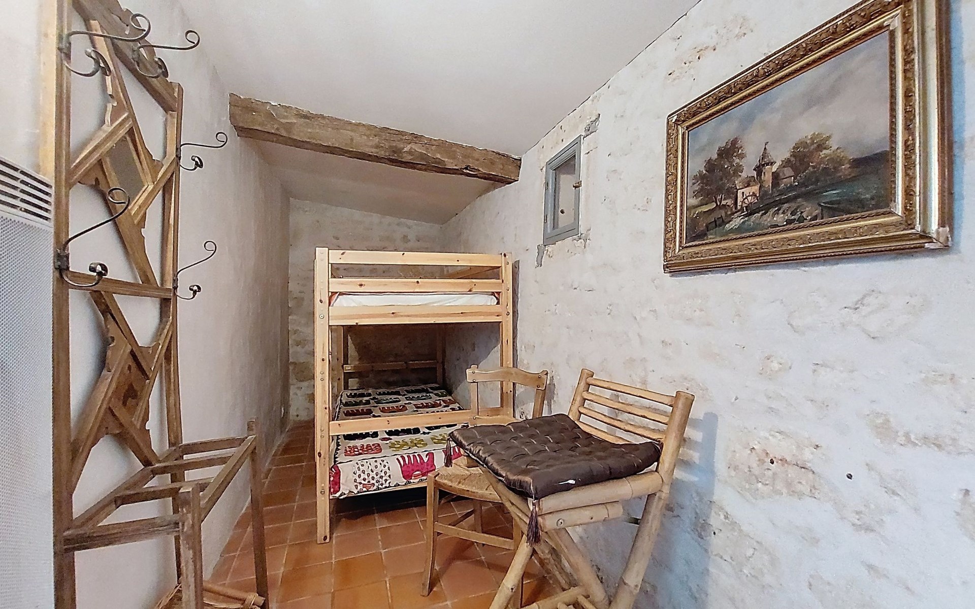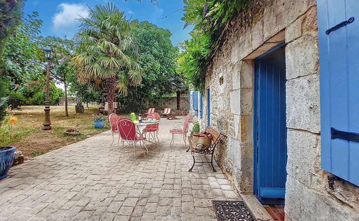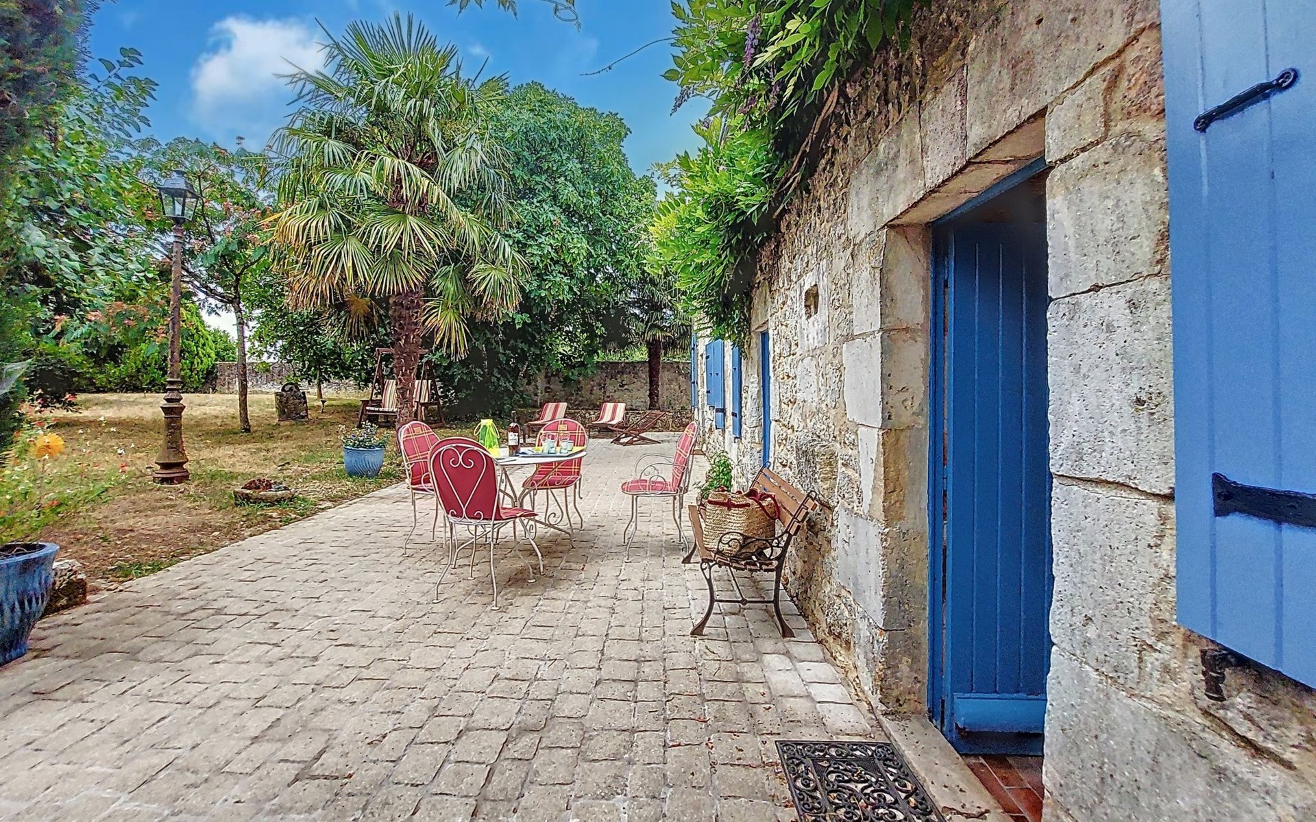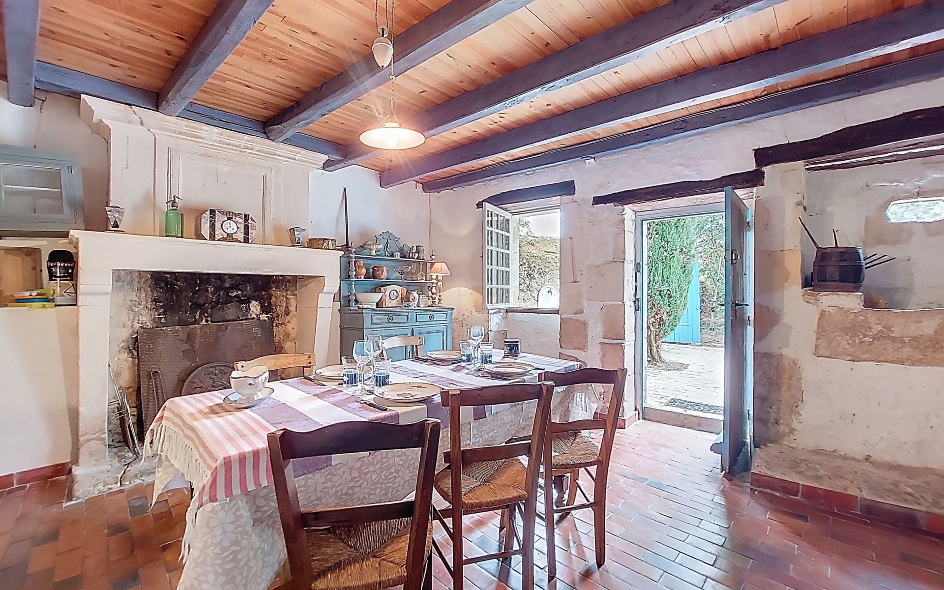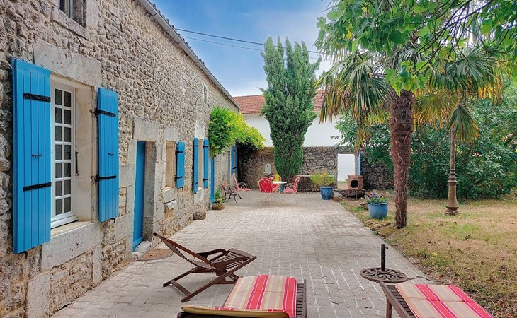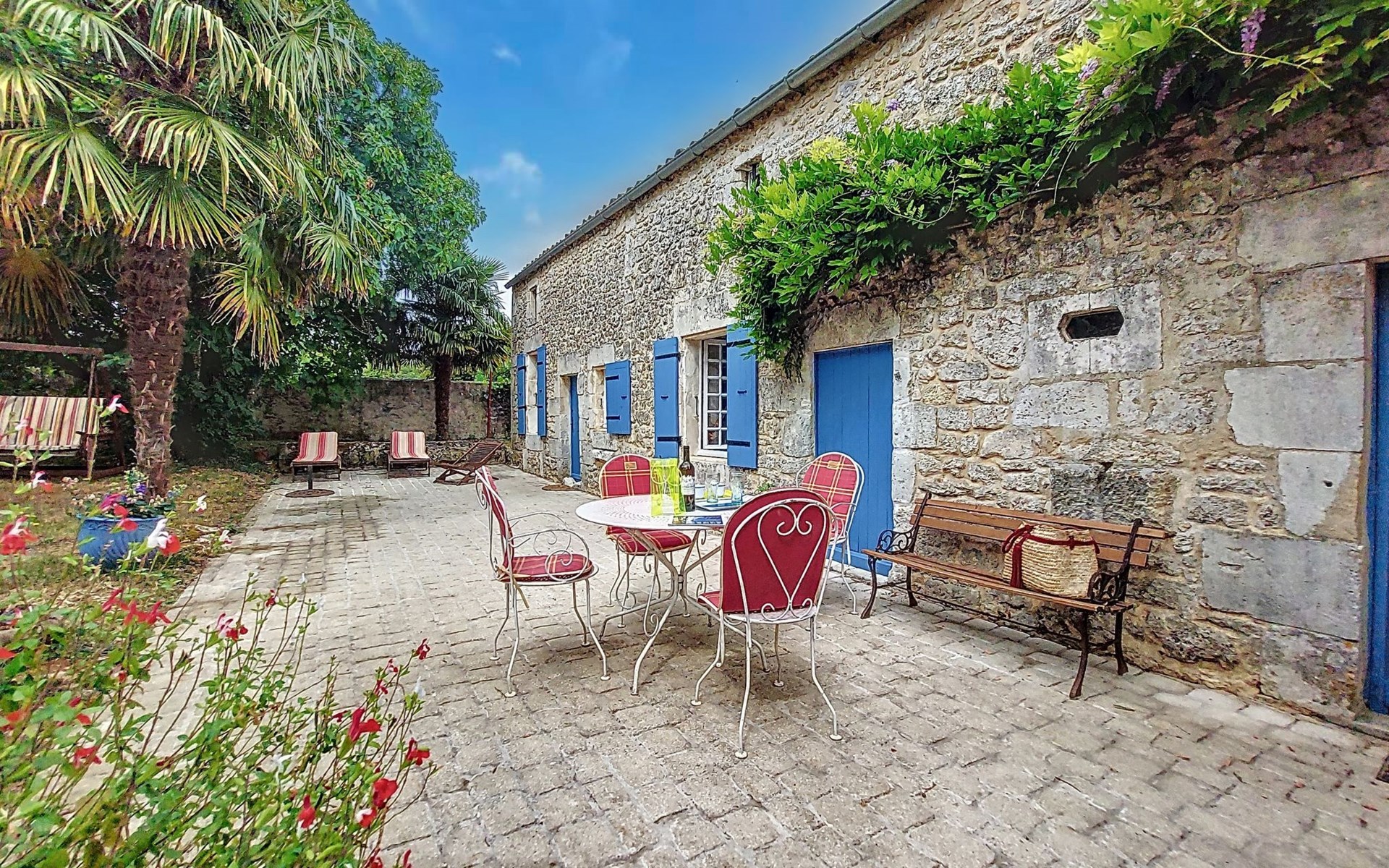 Sainte Gemme 24 km from Royan: Country house "Les Vidalières", from the 18th century, renovated. 3 km from the centre of Sainte Gemme, 25 km from the centre of Royan, 25 km from the centre of Saintes, in a quiet position, 25 km from the beach. Private: property 800 m2 (fenced), trees, roofed, parking (for 2 cars) at the house on the premises. Grocery 3 km, restaurant 3 km, bus stop "Mirambeau" 10 km, railway station "Saujon" 17 km, sandy beach "Royan" 25 km, park "Luna Park (Juillet-Août)" 33 km, outdoor swimming pool 14 km, indoor swimming pool 14 km, thermal baths "Etablissement thermal de Saujon" 13 km. Golf course (18 hole) 26 km, tennis 3 km, riding stable 26 km. Nearby attractions: La Ferme de Magné 8 km, Palais des Congrès - Royan 25 km, Embarcadère Royan - Le Verdon 25 km, Golf de Royan 30 km, Zoo de La Palmyre 33 km, Hippodrome - La Palmyre 34 km. Please note: car recommended. The house is in the middle of the countryside near a small farm.