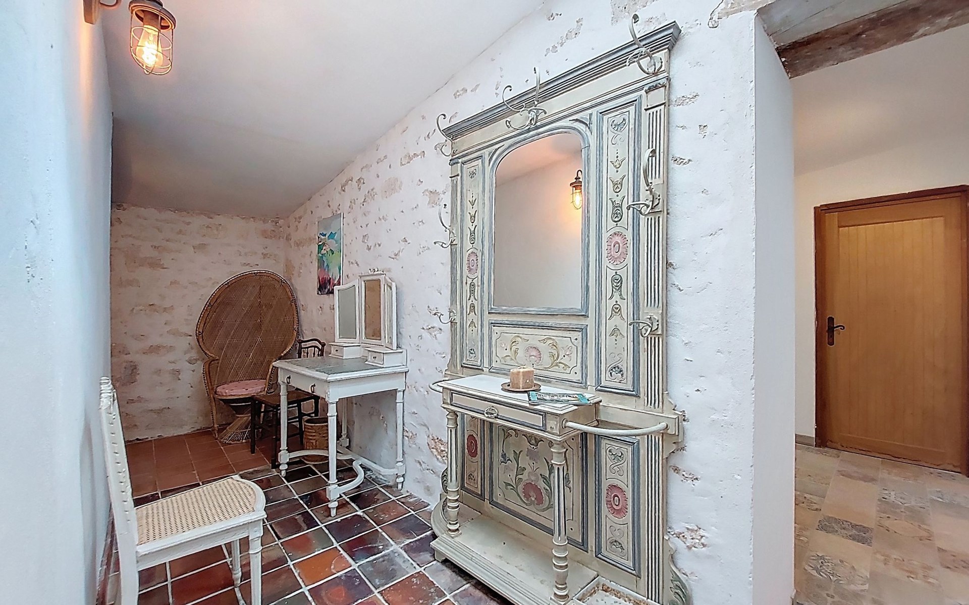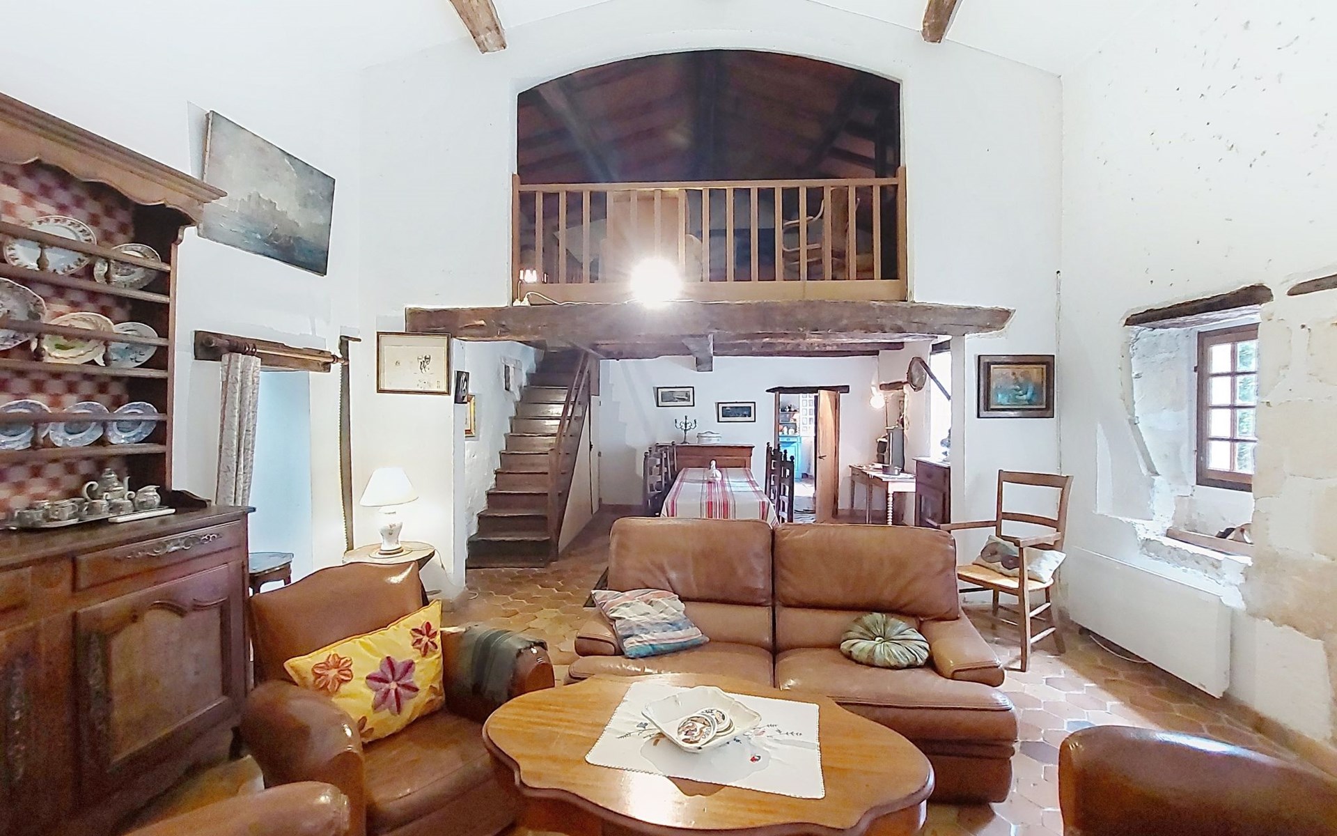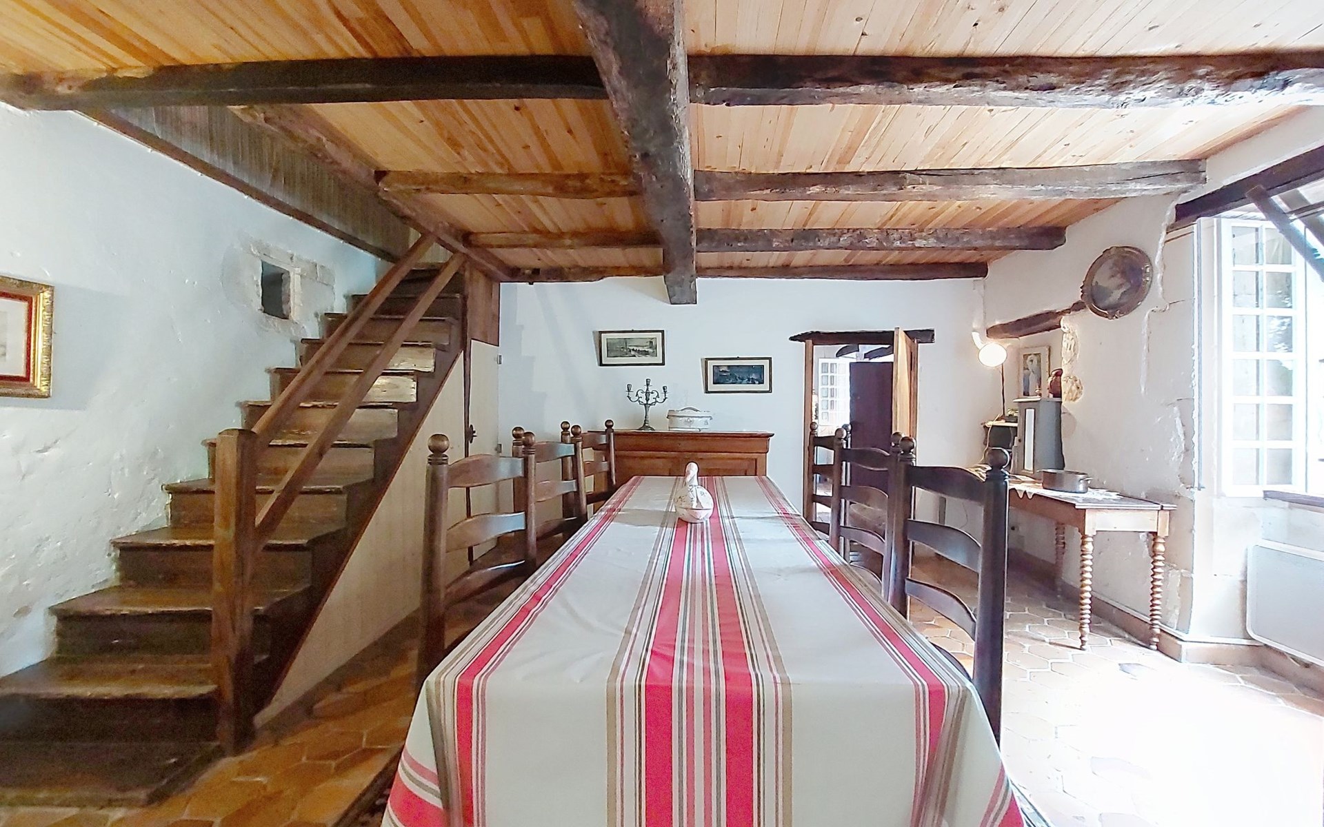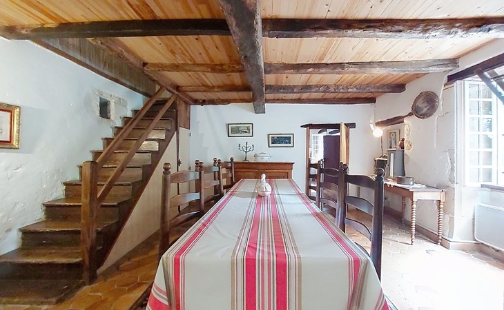 Sainte Gemme 24 km from Royan: Country house "Les Vidalières", from the 18th century, renovated. 3 km from the centre of Sainte Gemme, 25 km from the centre of Royan, 25 km from the centre of Saintes, in a quiet position, 25 km from the beach. Private: property 800 m2 (fenced), trees, roofed, parking (for 2 cars) at the house on the premises. Grocery 3 km, restaurant 3 km, bus stop "Mirambeau" 10 km, railway station "Saujon" 17 km, sandy beach "Royan" 25 km, park "Luna Park (Juillet-Août)" 33 km, outdoor swimming pool 14 km, indoor swimming pool 14 km, thermal baths "Etablissement thermal de Saujon" 13 km. Golf course (18 hole) 26 km, tennis 3 km, riding stable 26 km. Nearby attractions: La Ferme de Magné 8 km, Palais des Congrès - Royan 25 km, Embarcadère Royan - Le Verdon 25 km, Golf de Royan 30 km, Zoo de La Palmyre 33 km, Hippodrome - La Palmyre 34 km. Please note: car recommended. The house is in the middle of the countryside near a small farm.