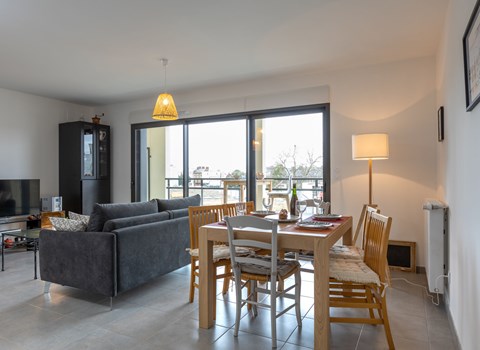 Small residence "Villa Thaïs", 2 storeys. 9 apartments in the residence. In the district of Pontaillac, 1.2 km from the centre of Royan, 500 m from the sea, 500 m from the beach, on a main road. Grocery 400 m, supermarket 650 m, restaurant 400 m, bakery 600 m, bus stop "Océan" 650 m, railway station "Royan", sandy beach "Pigeonnier" 500 m (small), indoor swimming pool 2.3 km, thermal baths "Thalassothérapie Thalazur Royan" 1 km. Sports harbour 1.7 km, golf course (18 hole) 7 km, surf school 750 m, tennis 400 m, minigolf 500 m, riding stable 7 km. Nearby attractions: Embarcadère Royan - Le Verdon 1.5 km, Zoo de La Palmyre 12 km, Hippodrome - La Palmyre 14 km, Parc attraction Luna Park (Juillet-Août) 17 km, Centre aquatique Iléo - Ile d'Oléron 43 km, Fort Boyard - Fouras 52 km. The keys‘ handover takes place by the agency Interhome in Vaux sur Mer, 1 km.