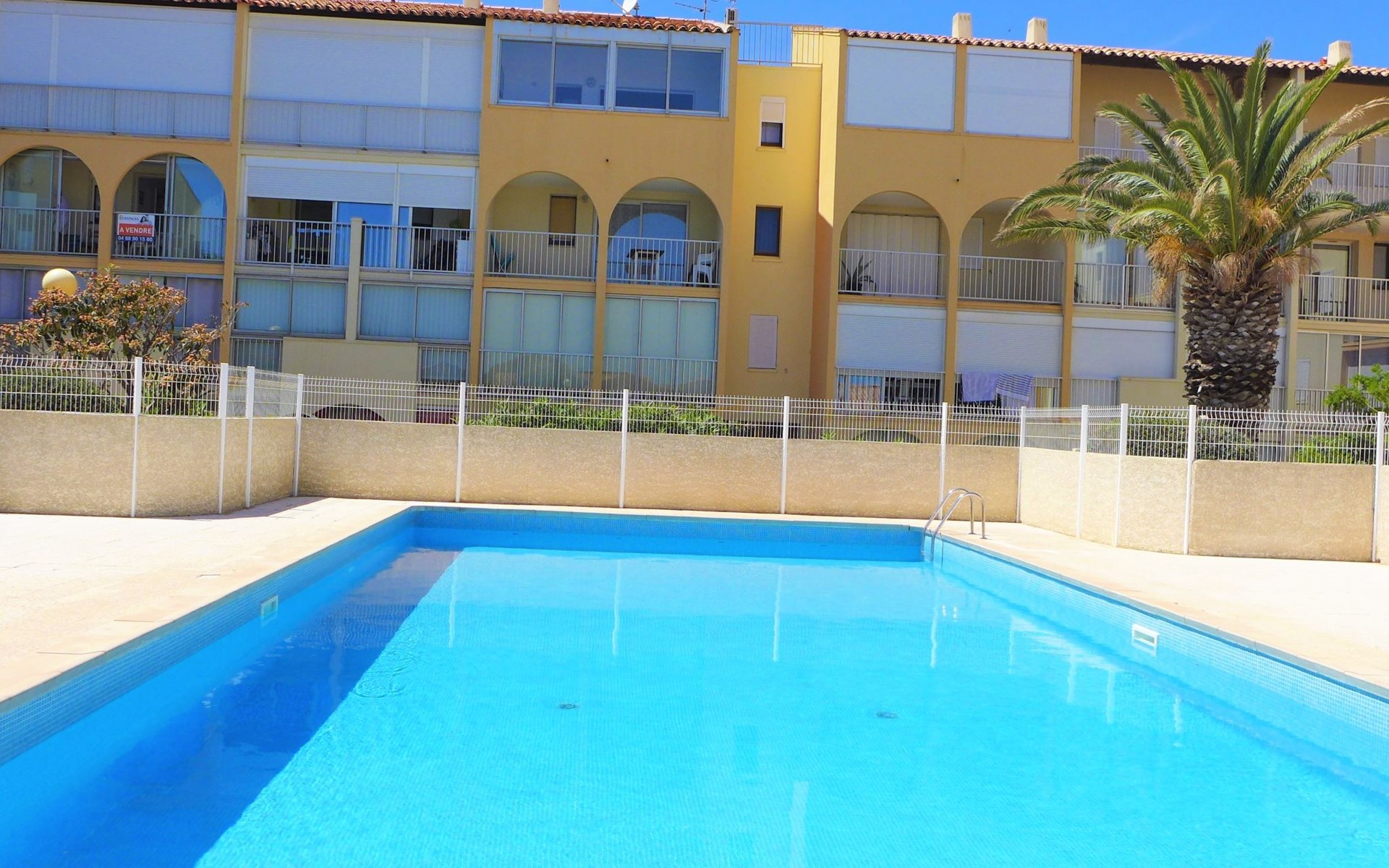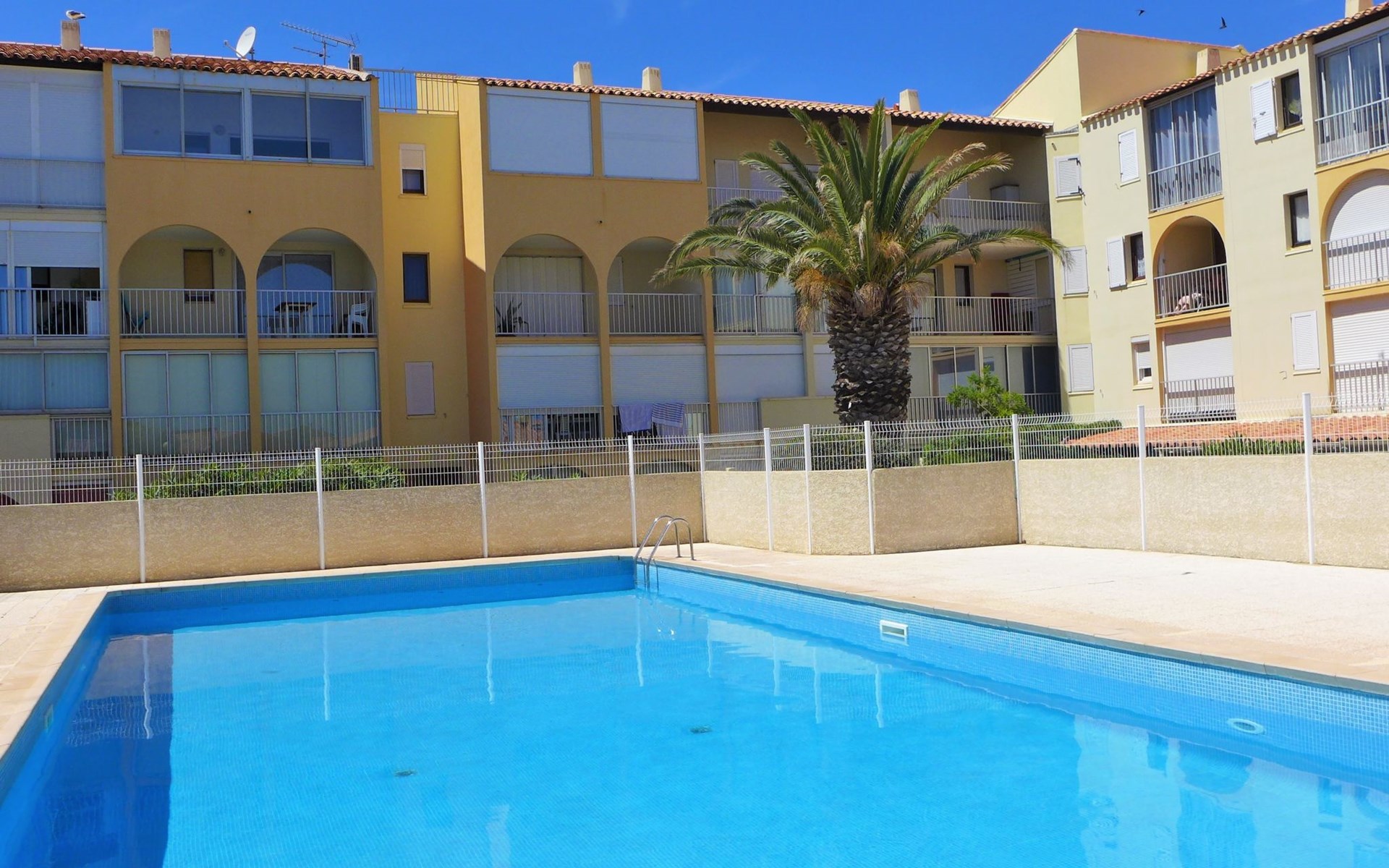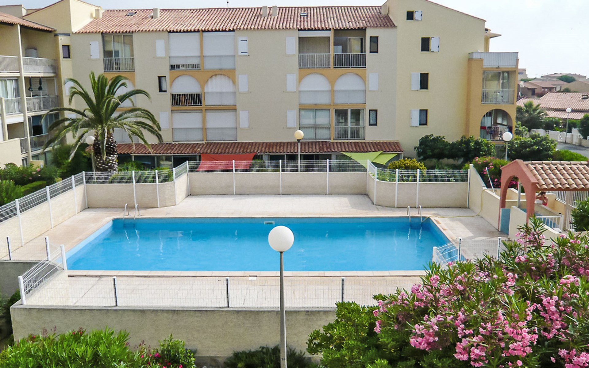 Residence "Les Maisons sur la Plage", 3 storeys. 1 km from the centre of Narbonne-Plage, in a sunny position, 350 m from the sea, 350 m from the beach, road to cross. For shared use: swimming pool (12 x 6 m, depth 140 - 180 cm, seasonal availability: 26.May. - 30.Sep.). Parking. Shop, grocery, restaurant, bar 200 m, bus stop 300 m, diving center 2 km. Sports harbour 2 km, sailing school 2 km, riding stable 5 km. Nearby attractions: Réserve Africaine de Sigean 33 km, Cité de Carcassonne 73 km, Espace balnéoludique de Gruissan 6 km. Swimming shorts prohibited.