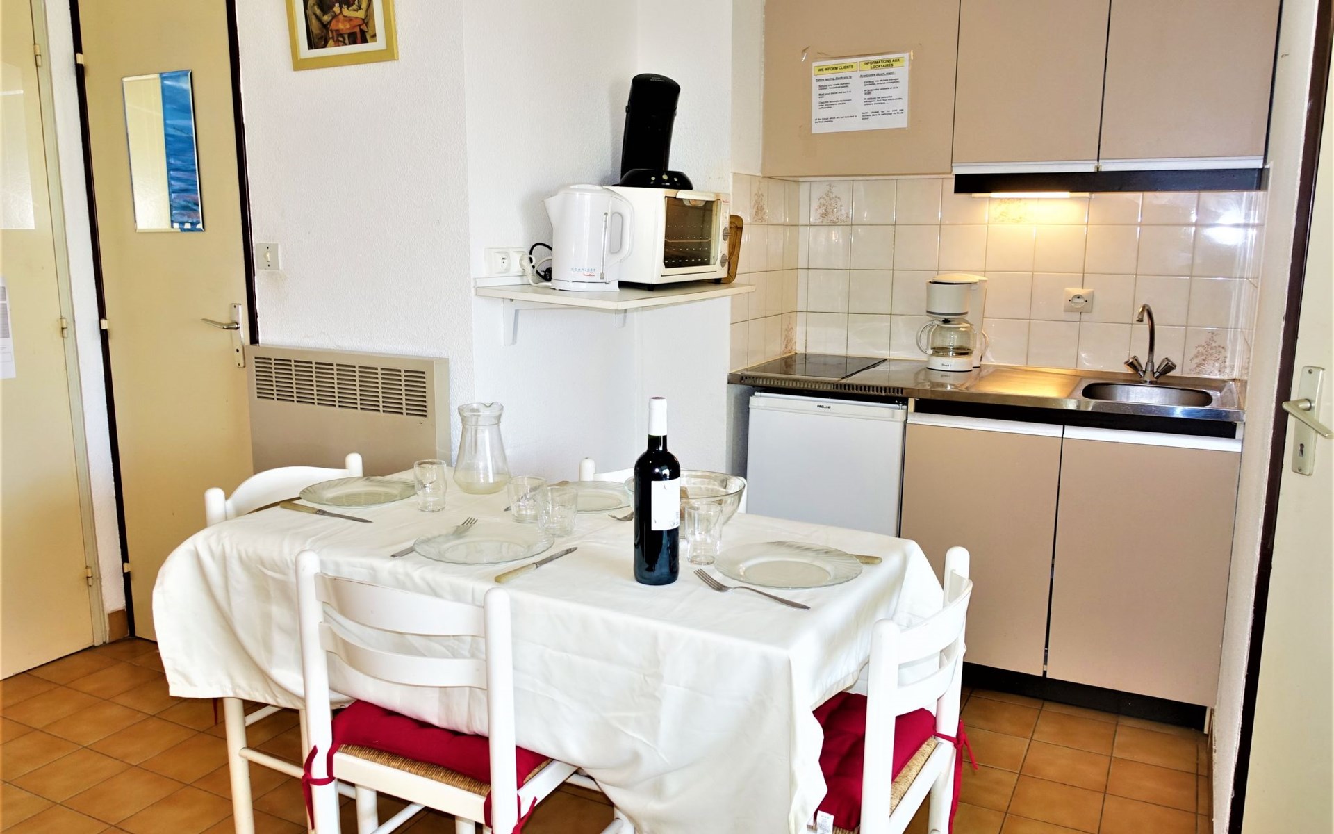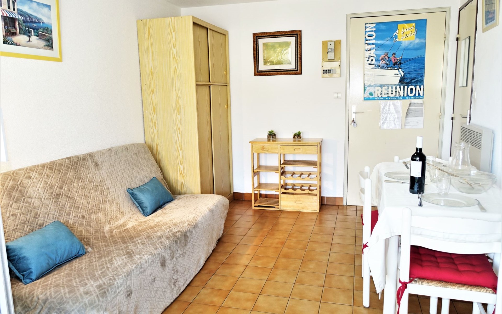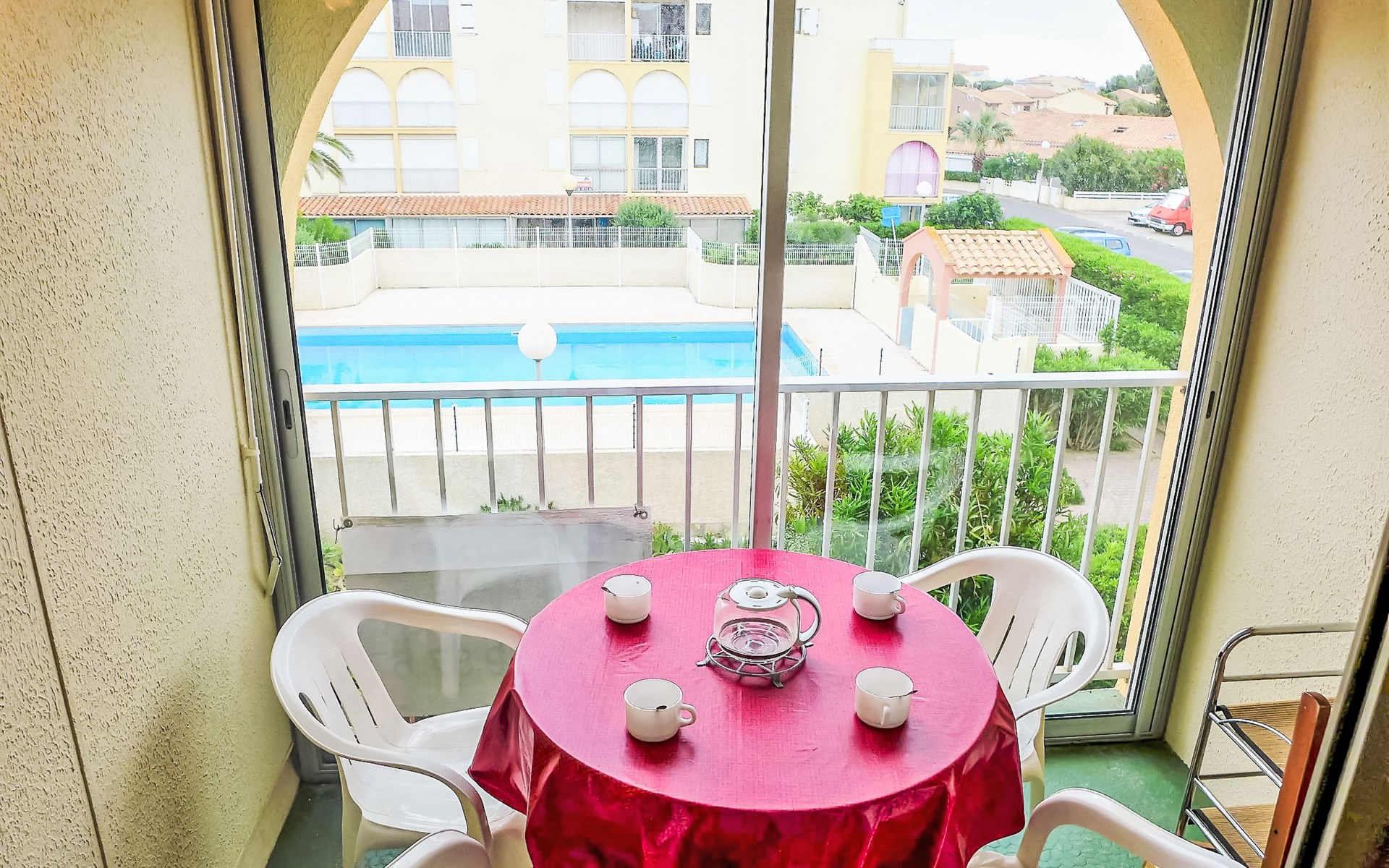 Residence "Les Maisons sur la Plage", 3 storeys. 1 km from the centre of Narbonne-Plage, in a sunny position, 350 m from the sea, 350 m from the beach, road to cross. For shared use: swimming pool (12 x 6 m, depth 140 - 180 cm, seasonal availability: 26.May. - 30.Sep.). Parking. Shop, grocery, restaurant, bar 200 m, bus stop 300 m, diving center 2 km. Sports harbour 2 km, sailing school 2 km, riding stable 5 km. Nearby attractions: Réserve Africaine de Sigean 33 km, Cité de Carcassonne 73 km, Espace balnéoludique de Gruissan 6 km. Swimming shorts prohibited.