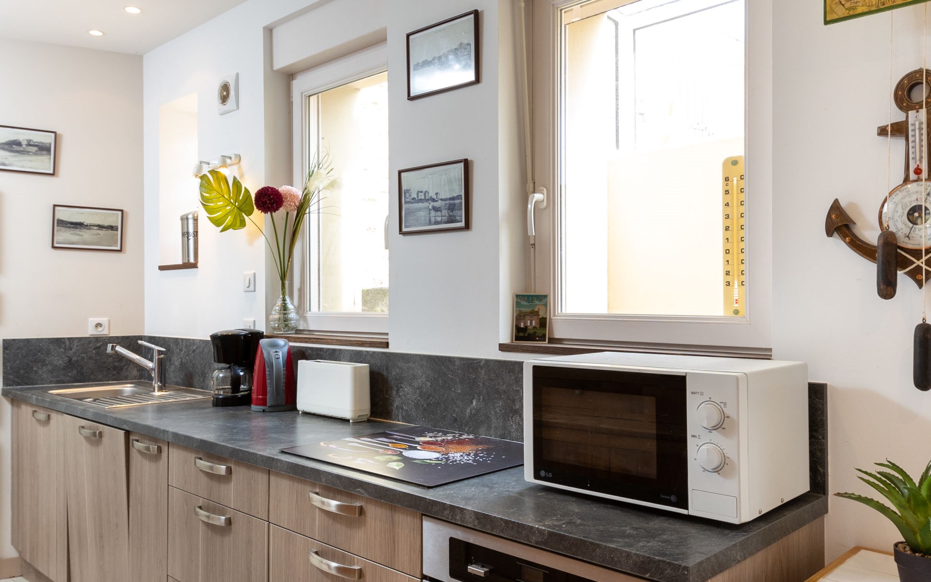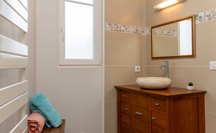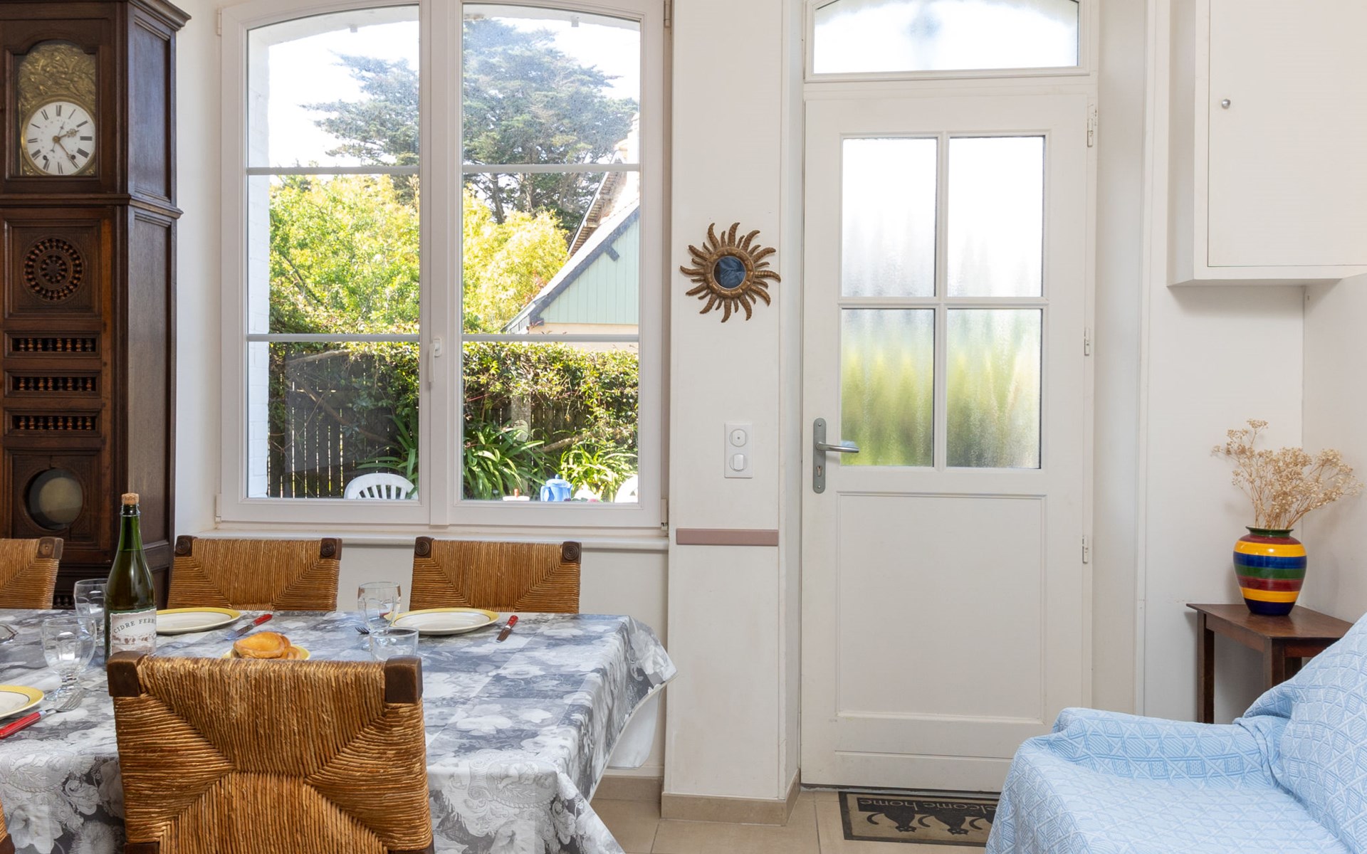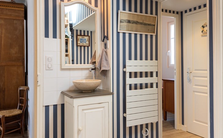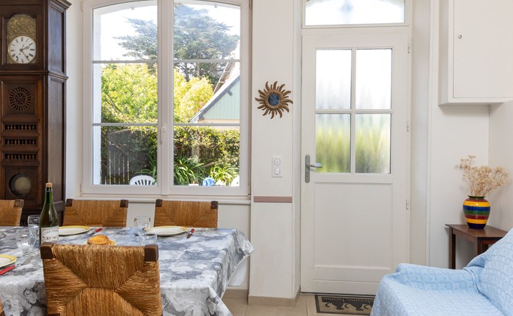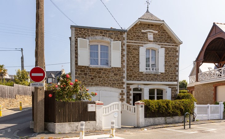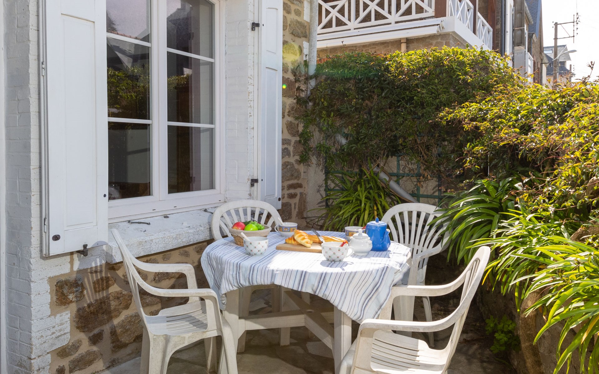 Simple, comfortable terraced house "L'Eglantine", 3 storeys, renovated in 2020. In the district of plage du pont, in the residential district, excellent location: right in the centre but still quiet, from the sea, 50 m from the beach. Private: terrace (15 m2), garden furniture, barbecue house. Parking space or garage only for small to medium-sized cars. Supermarket 750 m, bakery 1.2 km, café 100 m, bus stop "Pont Davier" 100 m, railway station "Gare TGV de St Malo" 4.4 km, ferry "Gare Maritime du Naye" 4.6 km, sandy beach "Plage du Pont" 50 m, thermal baths "Thermes marins de St Malo" 2.8 km. Sailing school 2.6 km. Nearby attractions: Grand aquarium de St Malo 3.3 km, Saint Malo intramuros 8.4 km, Dinard 15 km, Dinan 34 km, Cancale 12 km, Le Mont Saint Michel 56 km.