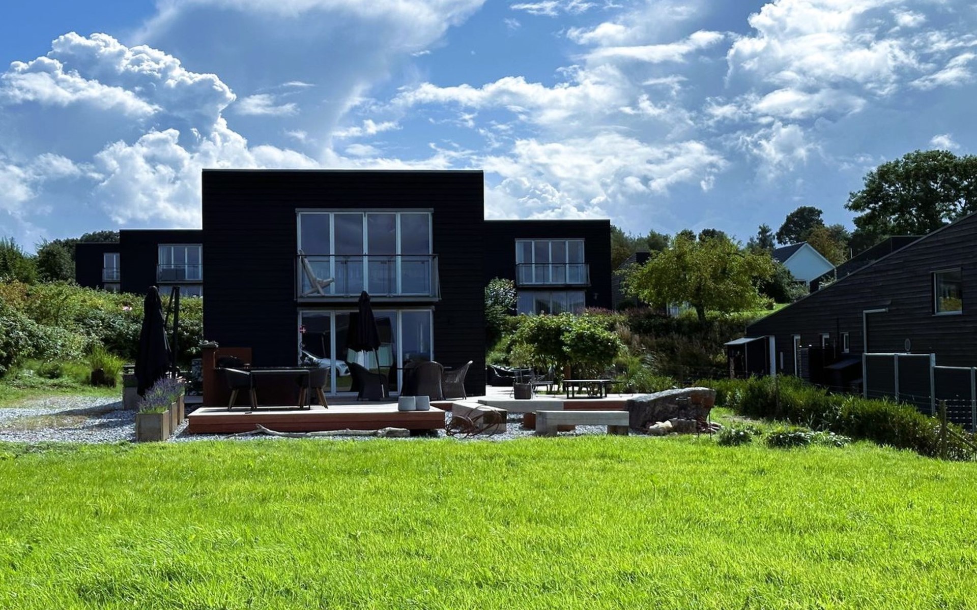 Single-family house, built in 2008. 100 m from the sea. Private: property 707 m2, well-kept garden. Terrace (80 m2), barbecue. In the house: washing machine, tumble dryer. Parking at the house. E-charging station. Grocery 4.8 km. Golf course 10 km. The owner does not accept any youth groups.