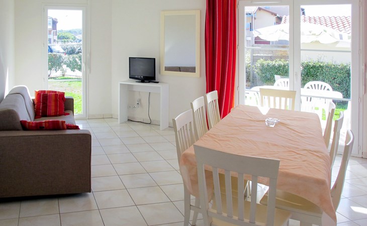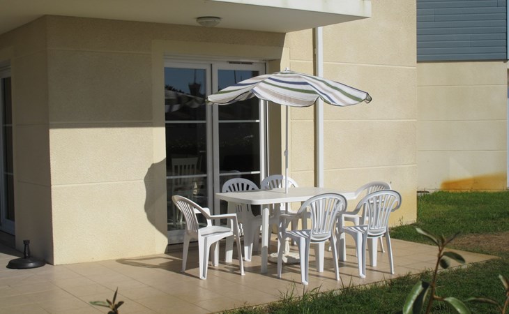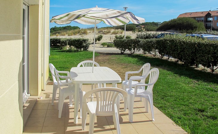 Cosy resort "Résidence Indigo II". 15 apartments in the residence. 500 m from the centre of Biscarrosse-Plage, 10 km from the centre of Biscarrosse, 30 km from the centre of Arcachon, 300 m from the sea, 300 m from the beach, direct access to the beach. For shared use: swimming pool fenced (11 x 5 m, depth 150 cm, seasonal availability: 01.May. - 30.Sep.). In the complex: reception, breakfast room, WiFi, washing machine (extra), tumble dryer (extra). Bread roll service, beverage service and breakfast (extra). Parking (limited number of spaces). Shop 500 m, supermarket 10 km, bus stop "Gare routière de Biscarrosse" 11 km, sandy beach "Biscarrosse-Plage" 300 m, bathing lake "Etang de Cazaux et de Sanguinet" 6 km. Golf course (27 hole) 7 km. Please note: the photograph shows a typical example.