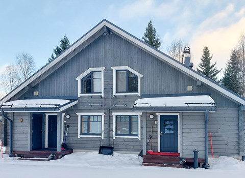 Wooden cabin 2014, living room/kitchen, bedroom (12 m²) two beds, bedroom (10 m²) two beds, sleeping loft (20 m², floor area approx. 40 m²) four beds, dressing room, washroom, sauna, separate WC.