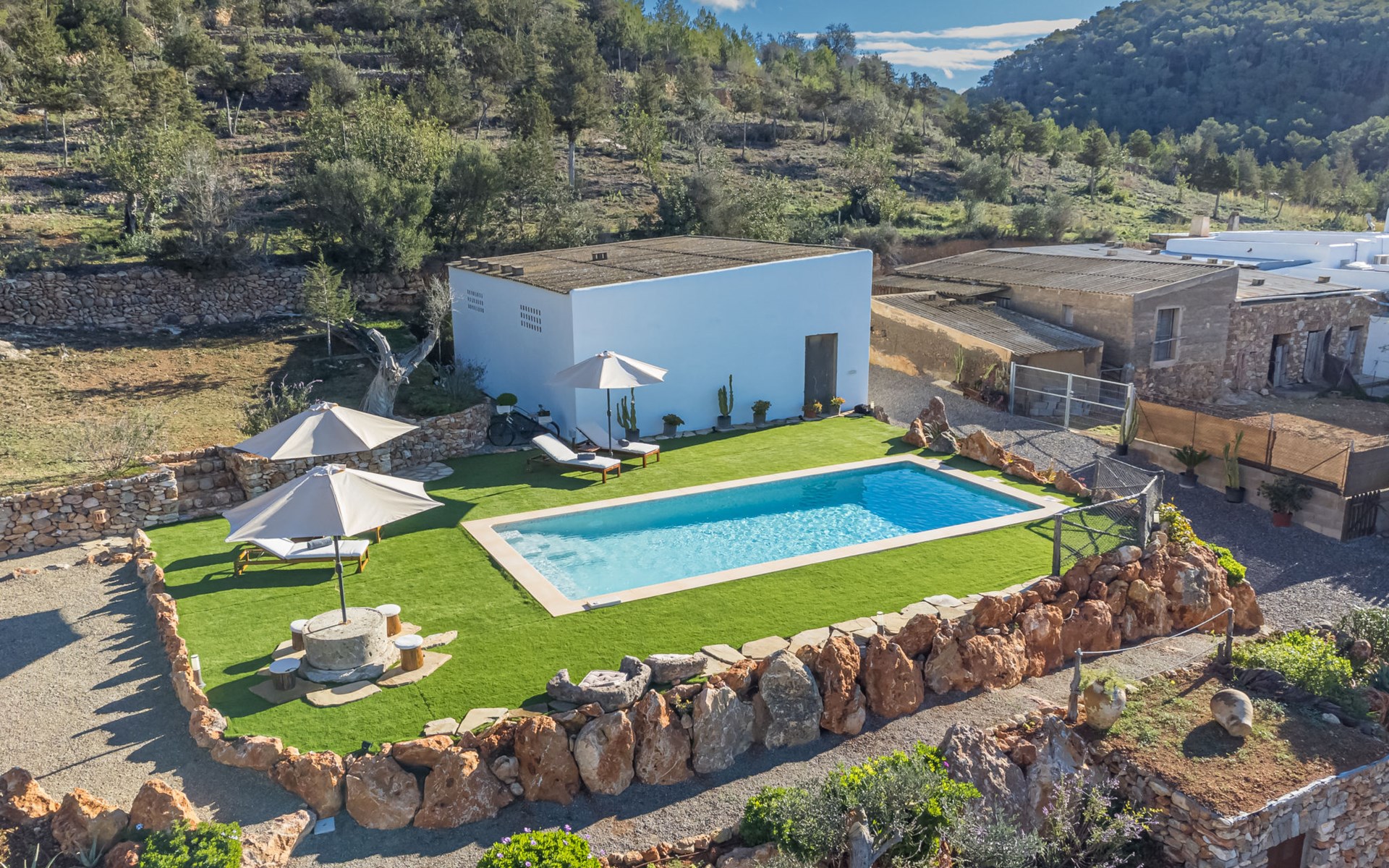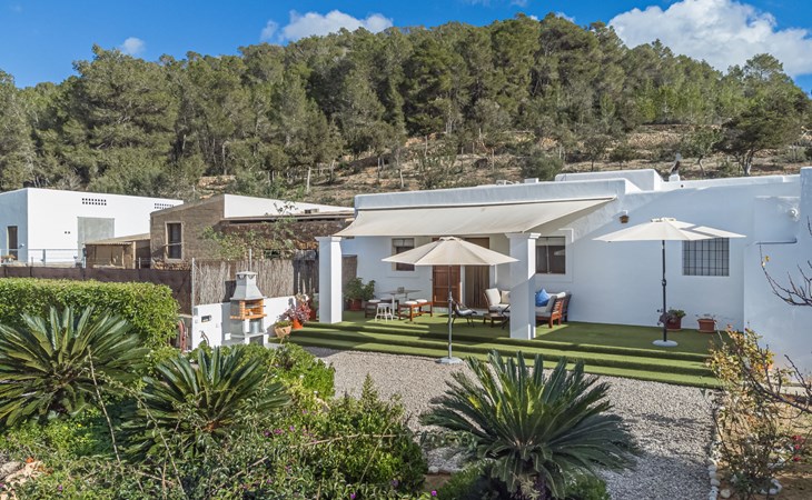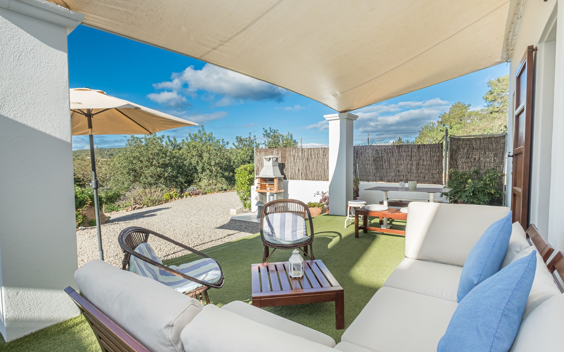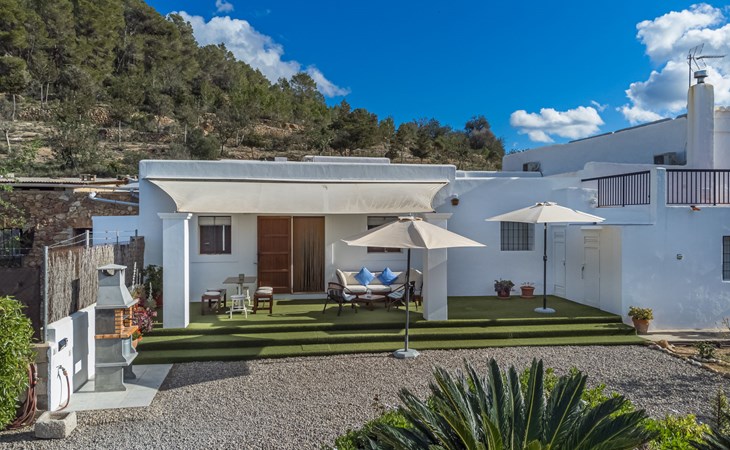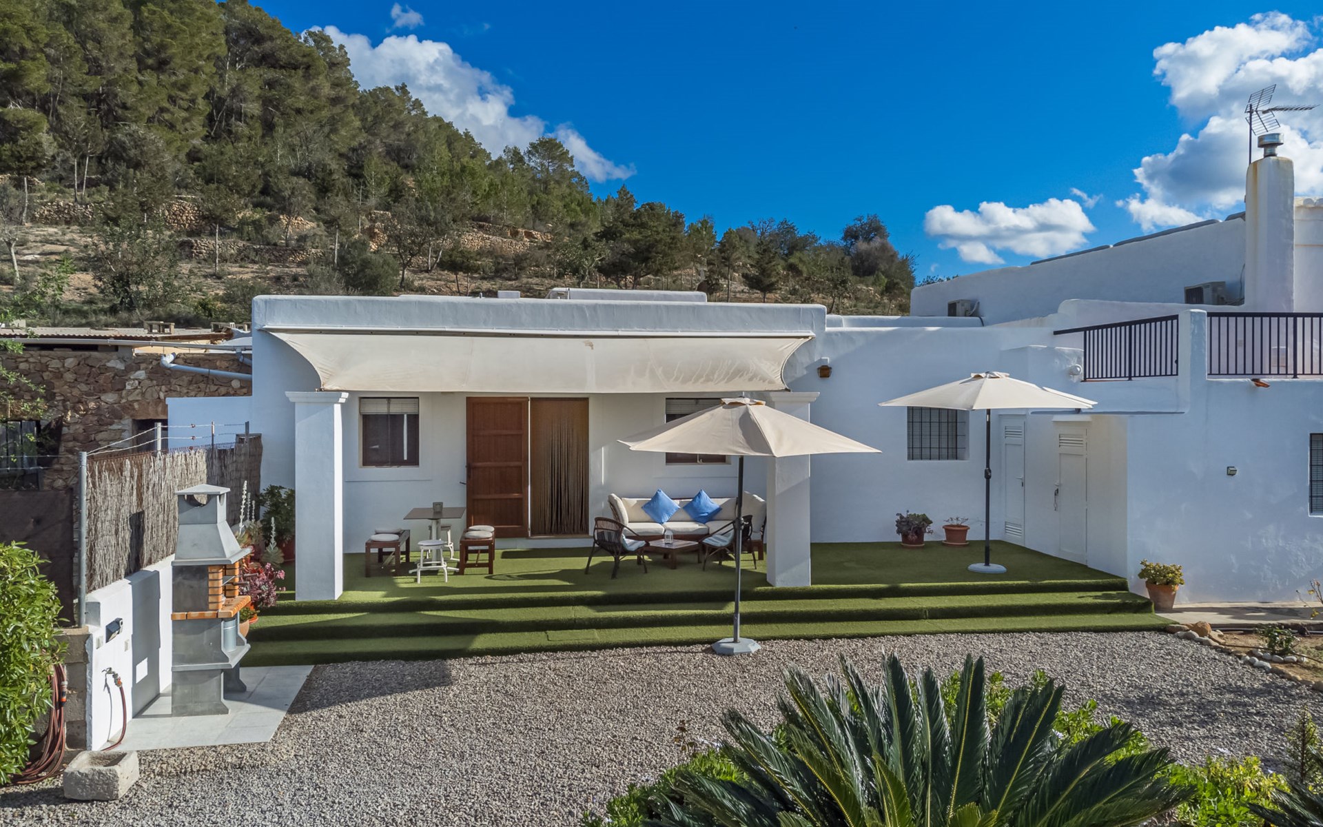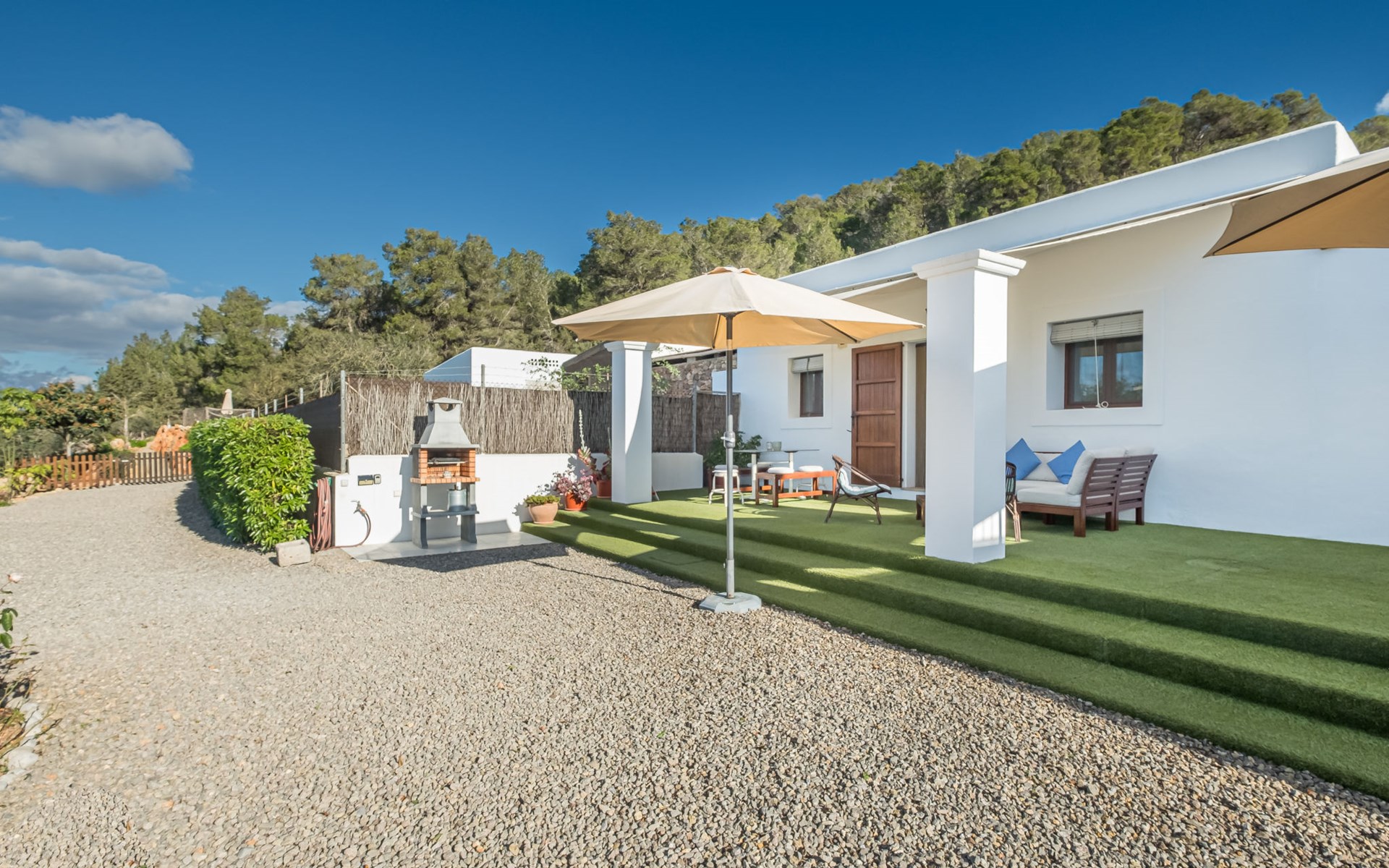 Very beautiful, comfortable farm estate "Can Verdal", renovated, surrounded by trees and fields. Outside the resort, 1 km from the centre of Sant Miquel de Balansat, Ibiza. In a quiet, sunny position, 4.9 km from the sea, in the countryside. Private: natural state property (fenced), beautiful, well-kept terraced garden with lawn and trees, swimming pool angular (9 x 4 m, depth 100 - 260 cm, seasonal availability: 01.Jan. - 31.Dec.). Outdoor shower, hot tub, patio, arbour, pergola, garden furniture, barbecue, pool maintenance by the owner/gardener. In the house: internet access, WiFi, air conditioning. Motor access (200 m via unmade road). Parking at the house on the premises. Supermarket 1.5 km, restaurant 1 km, bar 1 km, bakery 1.1 km, 15 minute walk to the centre, bus stop "EI-400,9-7" 1 km, sandy beach "Platja des Port de Sant Miquel" 4.9 km, shingle beach "Caló des Multons" 6.8 km. Sports harbour 17.5 km, golf course (18 hole) 18.5 km, tennis 2.7 km, sports centre 2.7 km, walking paths from the house 500 m, cycle lane 200 m. Nearby attractions: Pueblos: Sant Miquel,Sant Joan, Pueblos de Sant Llorenç - Sant Joan Bapt, Calas de Benirràs y Es Portitxol, Ibiza 18.5 km, Mirador d'es Vedrà 39 km, Santa Eulalia des Riu 17 km. Hiking paths: Port Sant Miquel - Torres des Molar(3KM), Sant Miquel - Santa Gertrudis (21KM). Please note: car recommended. Suitable for families, suitable for seniors. Object suitable for 4 adults. The owner does not accept any youth groups. On the estate animal husbandry. The owner lives on the same property. Animals in the neighbourhood. Airfield 25 km from the property.