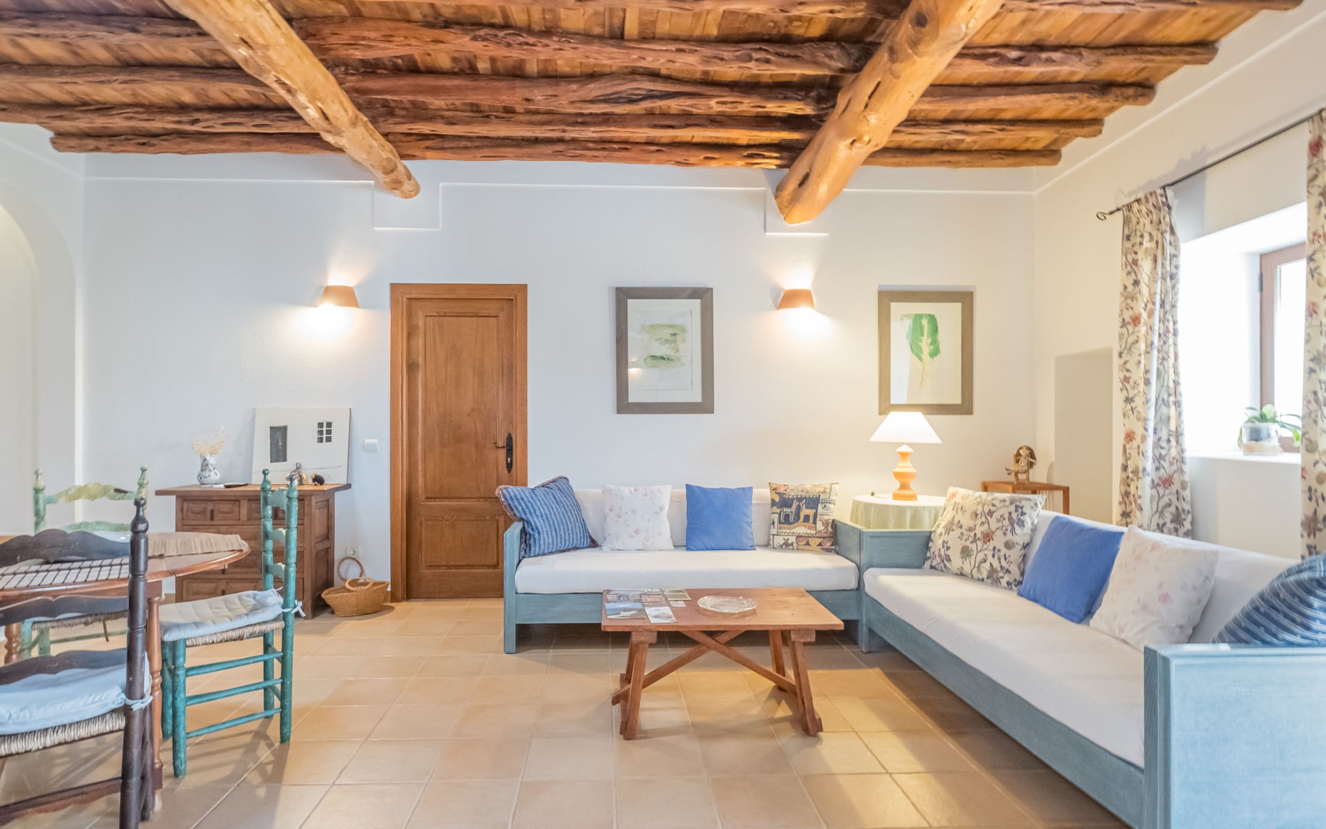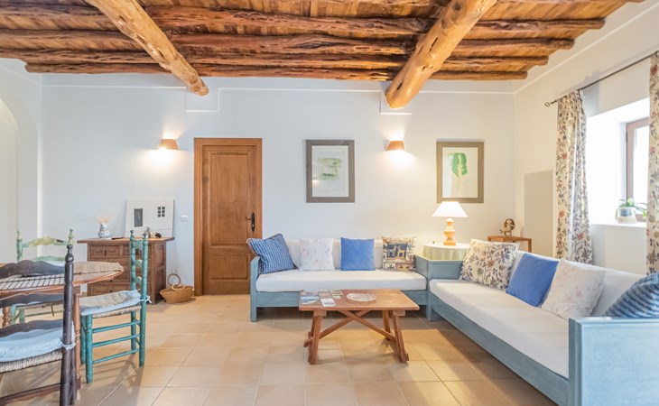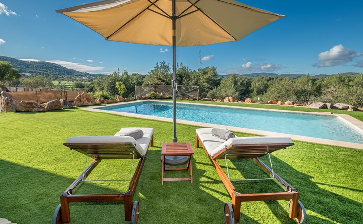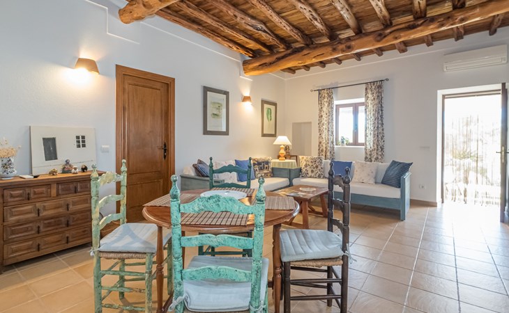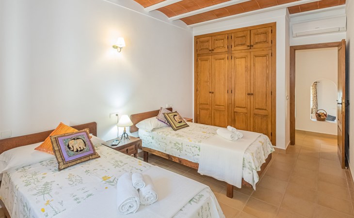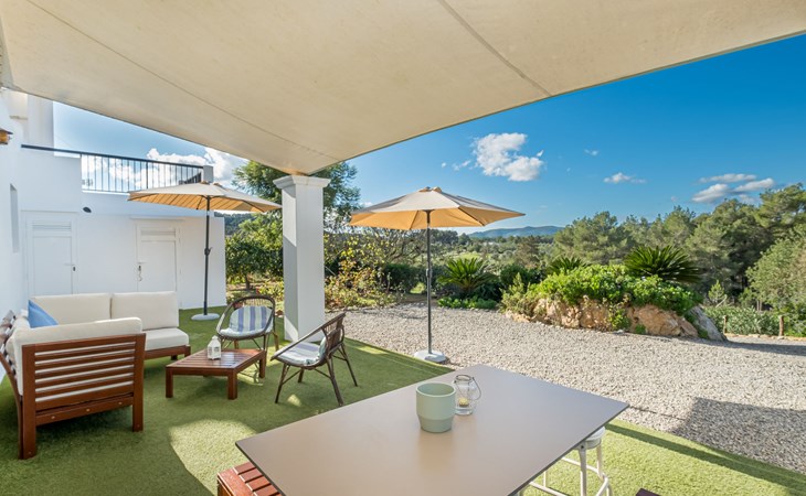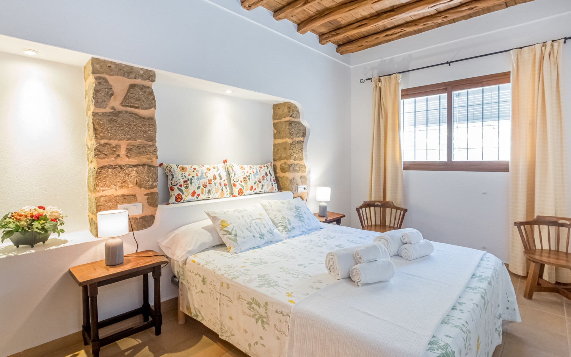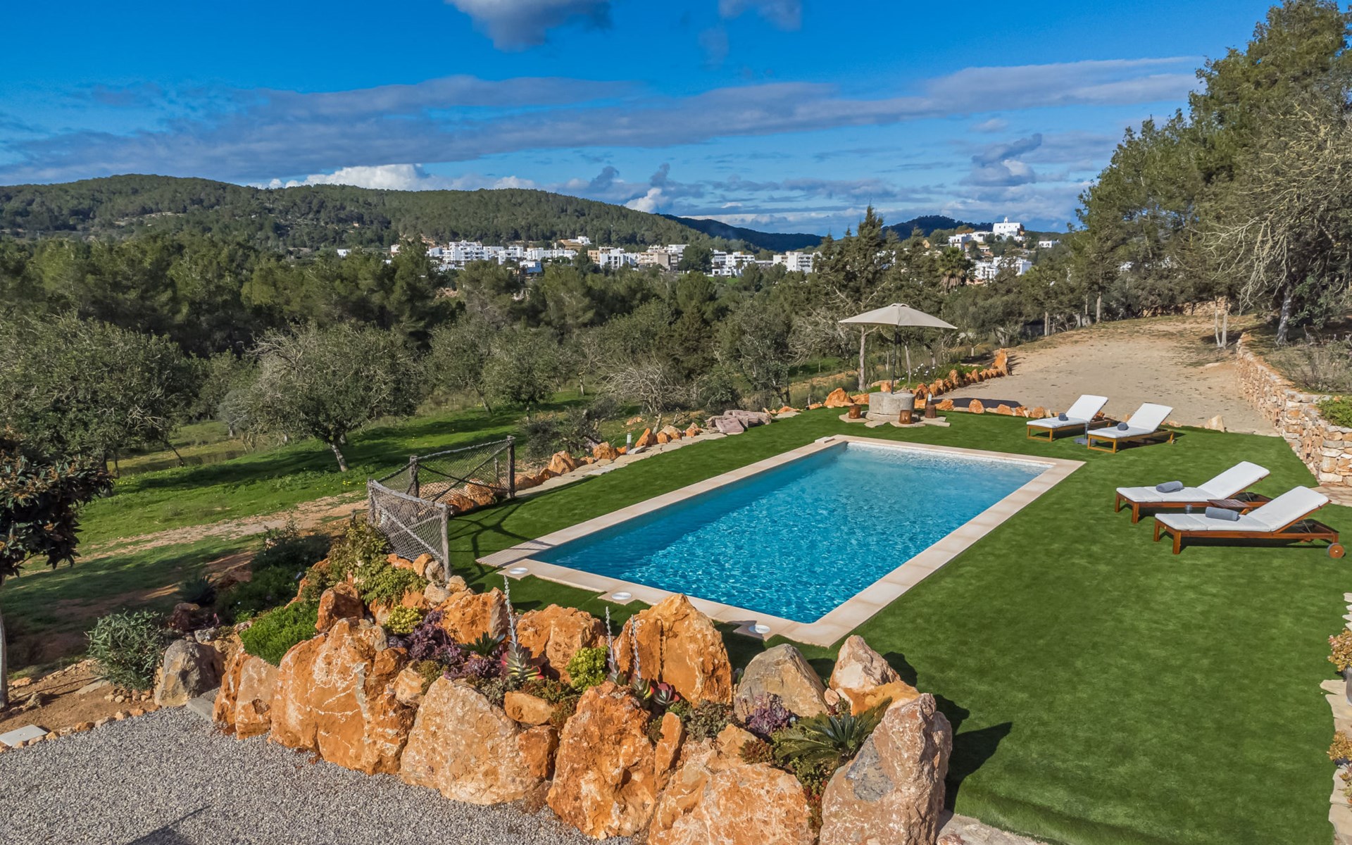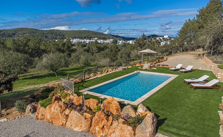 Very beautiful, comfortable farm estate "Can Verdal", renovated, surrounded by trees and fields. Outside the resort, 1 km from the centre of Sant Miquel de Balansat, Ibiza. In a quiet, sunny position, 4.9 km from the sea, in the countryside. Private: natural state property (fenced), beautiful, well-kept terraced garden with lawn and trees, swimming pool angular (9 x 4 m, depth 100 - 260 cm, seasonal availability: 01.Jan. - 31.Dec.). Outdoor shower, hot tub, patio, arbour, pergola, garden furniture, barbecue, pool maintenance by the owner/gardener. In the house: internet access, WiFi, air conditioning. Motor access (200 m via unmade road). Parking at the house on the premises. Supermarket 1.5 km, restaurant 1 km, bar 1 km, bakery 1.1 km, 15 minute walk to the centre, bus stop "EI-400,9-7" 1 km, sandy beach "Platja des Port de Sant Miquel" 4.9 km, shingle beach "Caló des Multons" 6.8 km. Sports harbour 17.5 km, golf course (18 hole) 18.5 km, tennis 2.7 km, sports centre 2.7 km, walking paths from the house 500 m, cycle lane 200 m. Nearby attractions: Pueblos: Sant Miquel,Sant Joan, Pueblos de Sant Llorenç - Sant Joan Bapt, Calas de Benirràs y Es Portitxol, Ibiza 18.5 km, Mirador d'es Vedrà 39 km, Santa Eulalia des Riu 17 km. Hiking paths: Port Sant Miquel - Torres des Molar(3KM), Sant Miquel - Santa Gertrudis (21KM). Please note: car recommended. Suitable for families, suitable for seniors. Object suitable for 4 adults. The owner does not accept any youth groups. On the estate animal husbandry. The owner lives on the same property. Animals in the neighbourhood. Airfield 25 km from the property.
