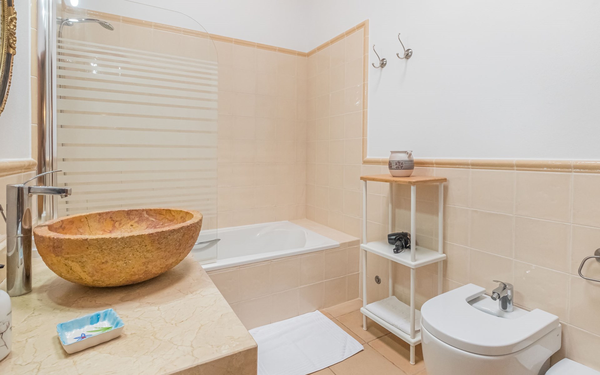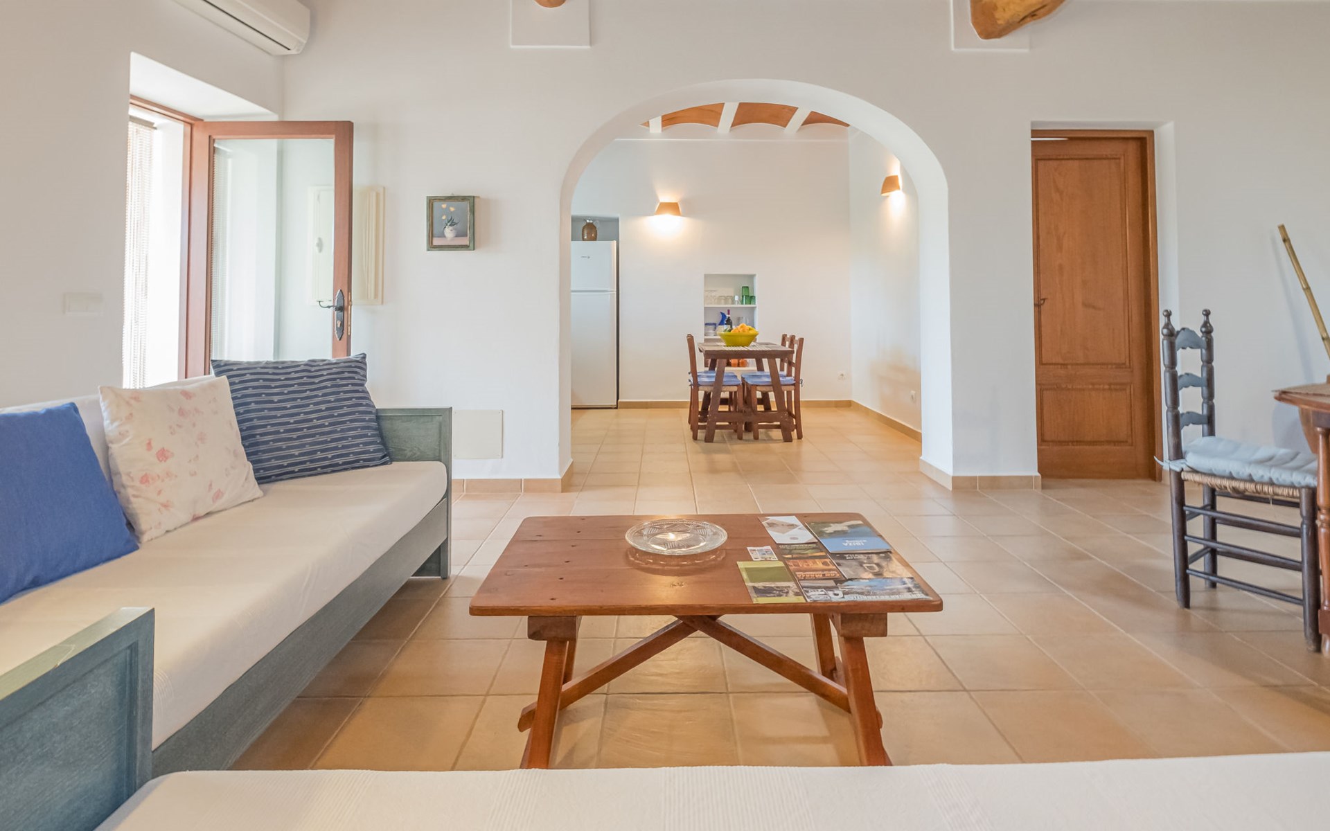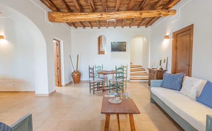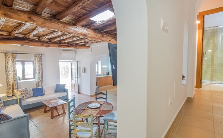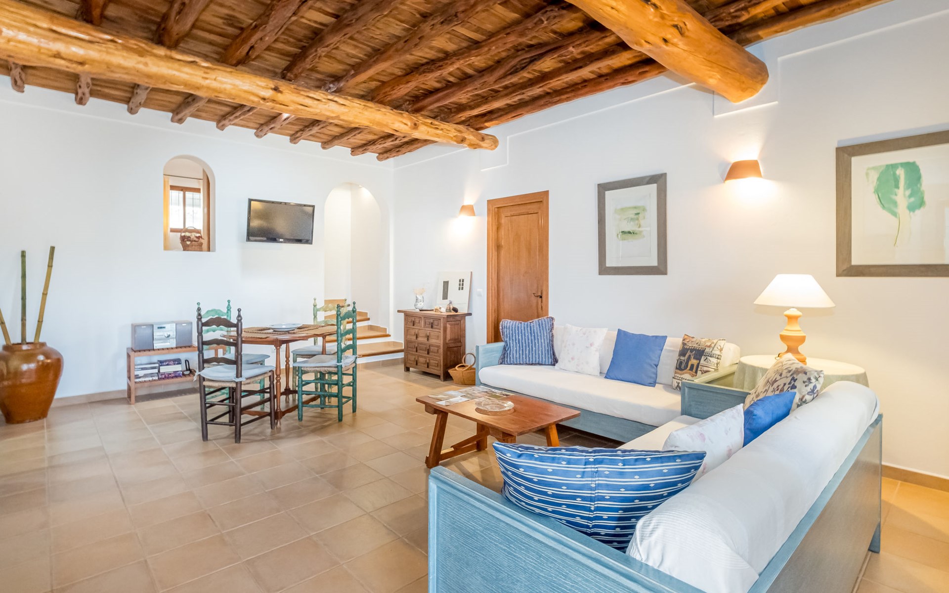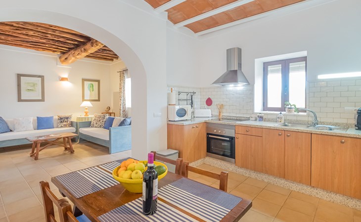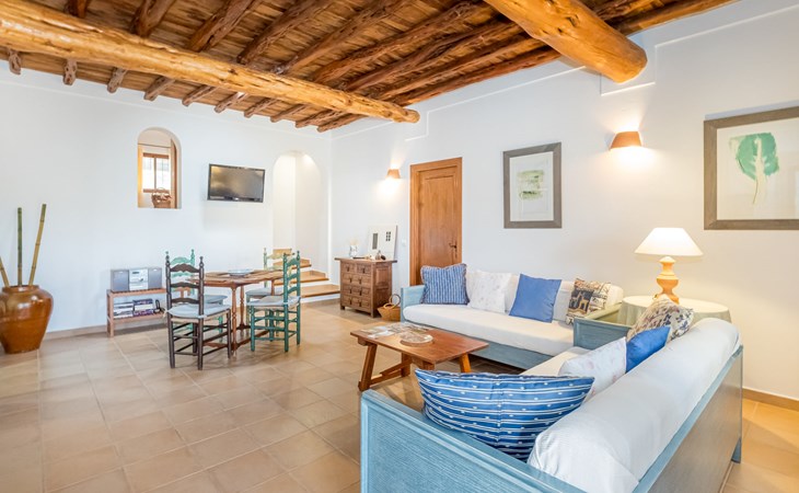 Very beautiful, comfortable farm estate "Can Verdal", renovated, surrounded by trees and fields. Outside the resort, 1 km from the centre of Sant Miquel de Balansat, Ibiza. In a quiet, sunny position, 4.9 km from the sea, in the countryside. Private: natural state property (fenced), beautiful, well-kept terraced garden with lawn and trees, swimming pool angular (9 x 4 m, depth 100 - 260 cm, seasonal availability: 01.Jan. - 31.Dec.). Outdoor shower, hot tub, patio, arbour, pergola, garden furniture, barbecue, pool maintenance by the owner/gardener. In the house: internet access, WiFi, air conditioning. Motor access (200 m via unmade road). Parking at the house on the premises. Supermarket 1.5 km, restaurant 1 km, bar 1 km, bakery 1.1 km, 15 minute walk to the centre, bus stop "EI-400,9-7" 1 km, sandy beach "Platja des Port de Sant Miquel" 4.9 km, shingle beach "Caló des Multons" 6.8 km. Sports harbour 17.5 km, golf course (18 hole) 18.5 km, tennis 2.7 km, sports centre 2.7 km, walking paths from the house 500 m, cycle lane 200 m. Nearby attractions: Pueblos: Sant Miquel,Sant Joan, Pueblos de Sant Llorenç - Sant Joan Bapt, Calas de Benirràs y Es Portitxol, Ibiza 18.5 km, Mirador d'es Vedrà 39 km, Santa Eulalia des Riu 17 km. Hiking paths: Port Sant Miquel - Torres des Molar(3KM), Sant Miquel - Santa Gertrudis (21KM). Please note: car recommended. Suitable for families, suitable for seniors. Object suitable for 4 adults. The owner does not accept any youth groups. On the estate animal husbandry. The owner lives on the same property. Animals in the neighbourhood. Airfield 25 km from the property.