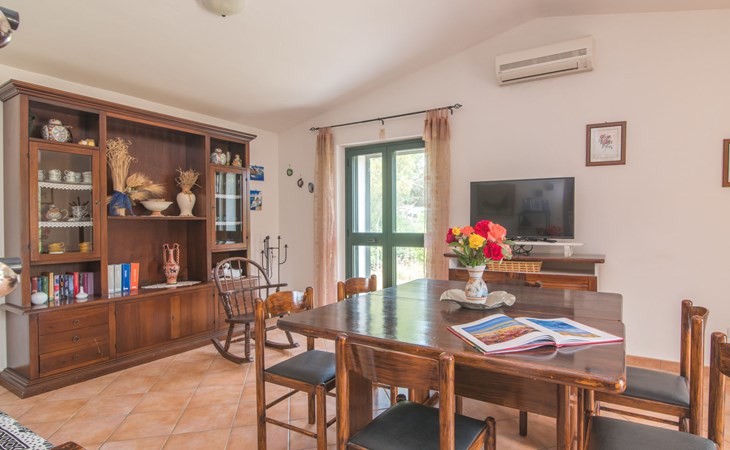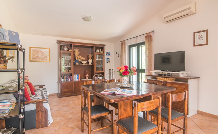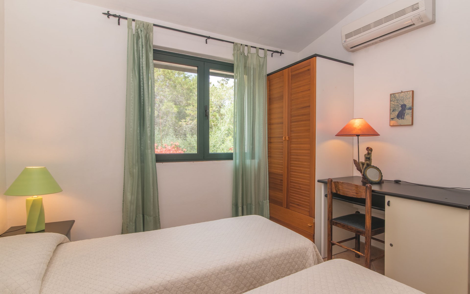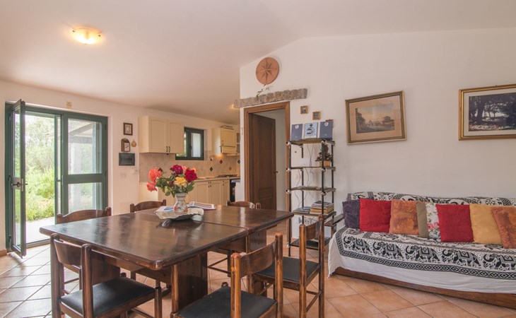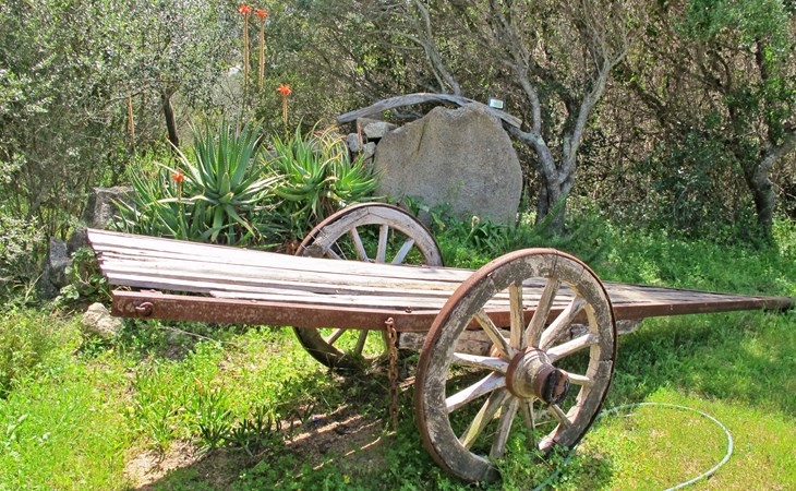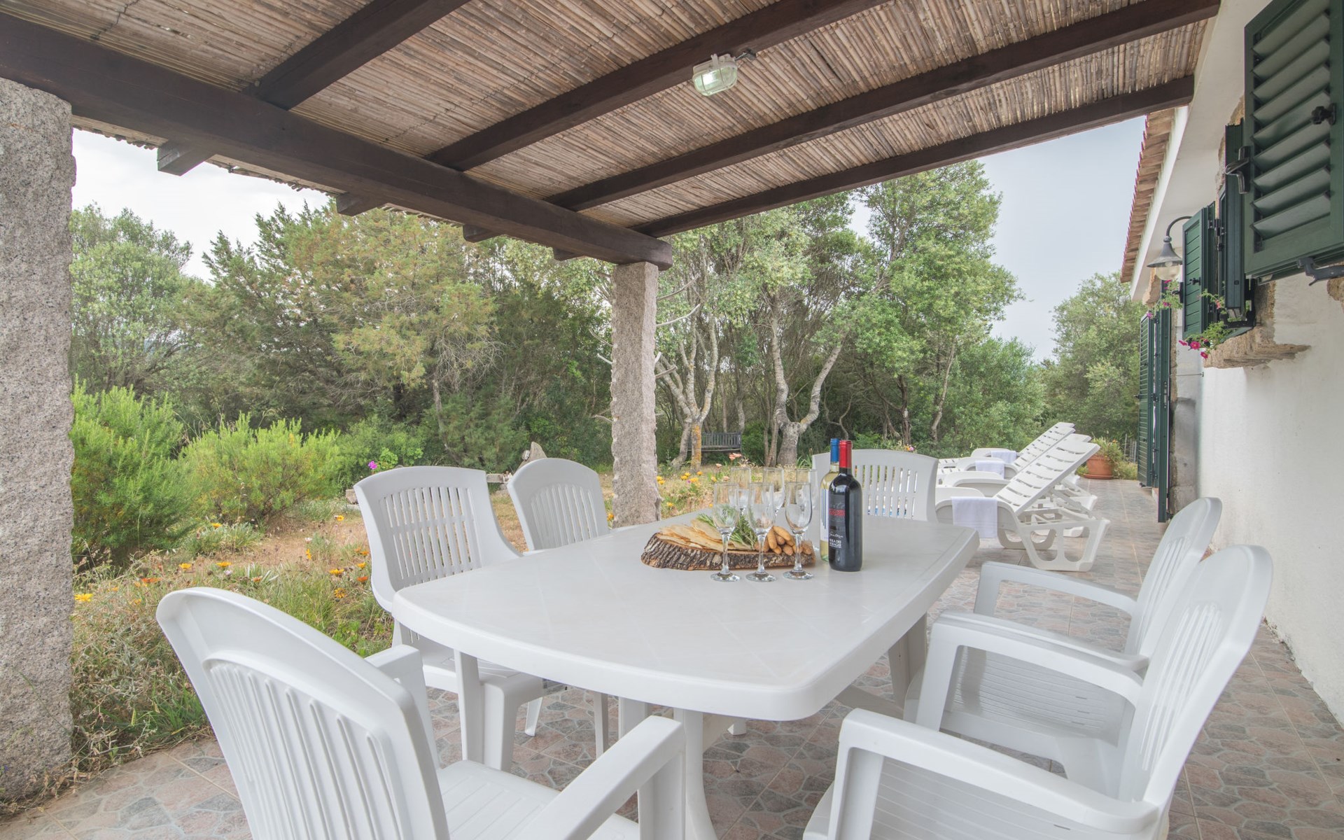 Cottage "Stazzu Mendola", 20 m a.s.l., detached. 2 km from the centre of Porto Pollo, 4.5 km from the centre of Palau, 1.7 km from the sea, in the countryside. Private: natural state property 3'000 m2 (fenced) with wildlife garden and trees, meadow. Outdoor shower. 50 m long bumpy motor access to the house. 3 m footpath to the house. Parking (for 3 cars) on the premises. Supermarket 4 km, bus stop 2 km, sandy beach 1.7 km. Please note: car recommended.