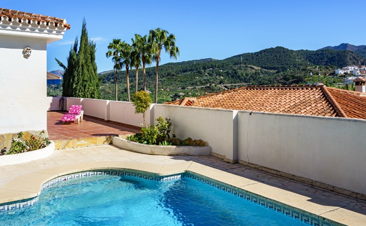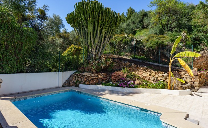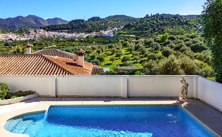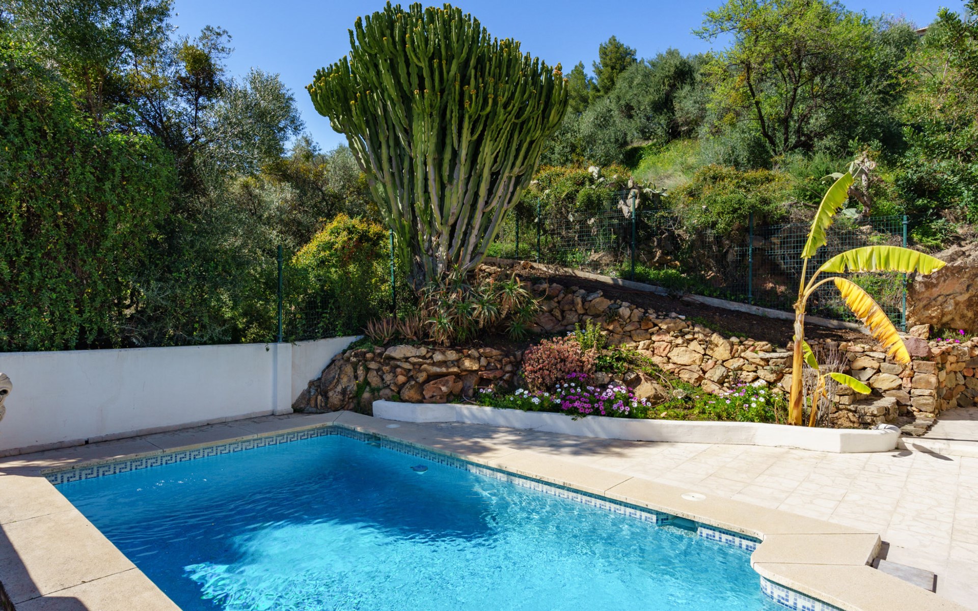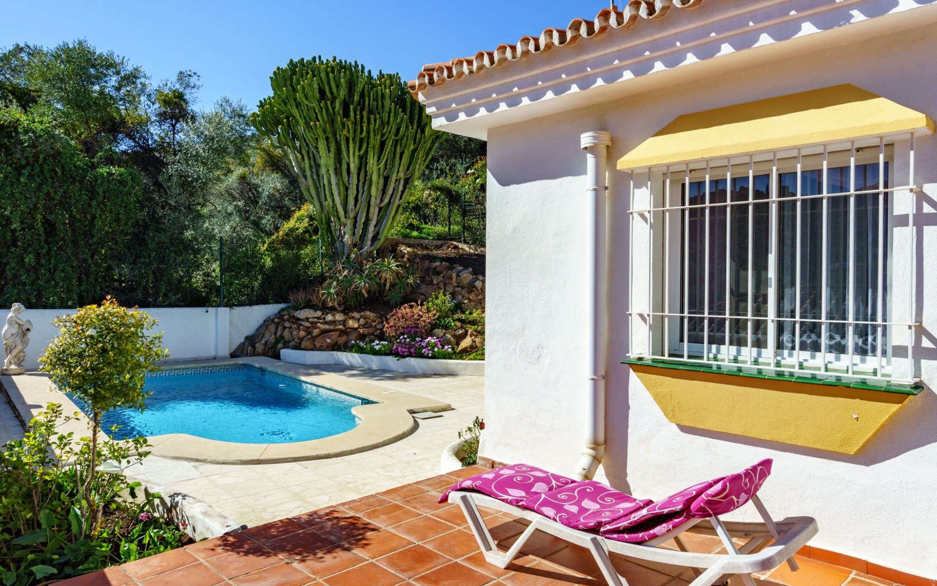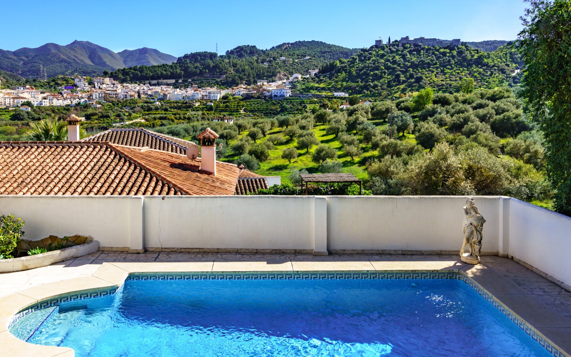 Monda: House "El Chaparral". 1.2 km from the centre of Monda, 20 km from the centre of Marbella, 40 km from the centre of Malaga, 20 km from the sea, 20 km from the beach. Private: garden with lawn, swimming pool (6 x 3 m, depth 130 - 180 cm, seasonal availability: 01.Jan. - 31.Dec.). Public parking on the road. Shop 1.2 km, supermarket 1.2 km, restaurant 1.2 km, café 1.2 km, bus stop "Parada 6128 Avenida de Guaro" 1.3 km. Please note: car recommended.