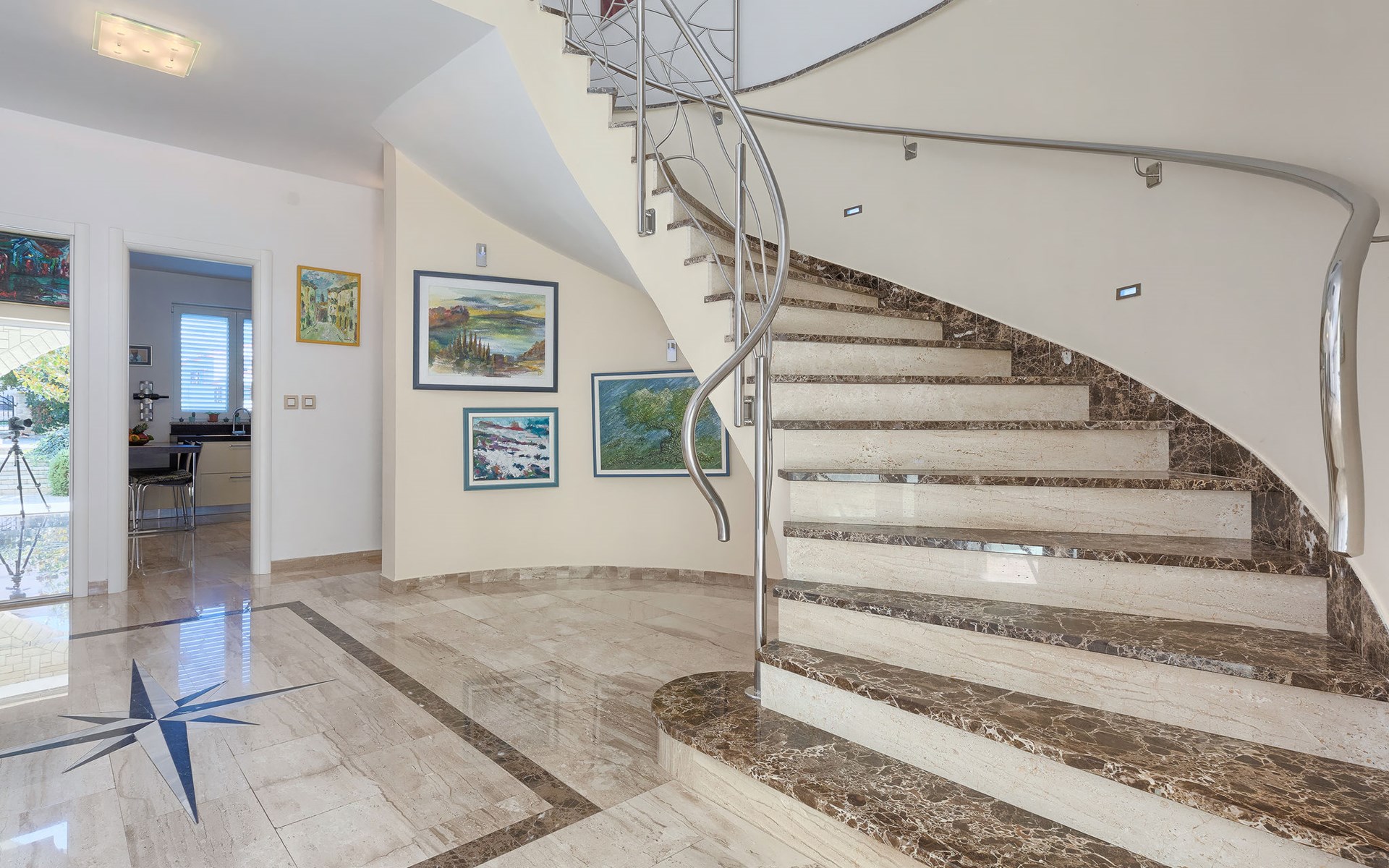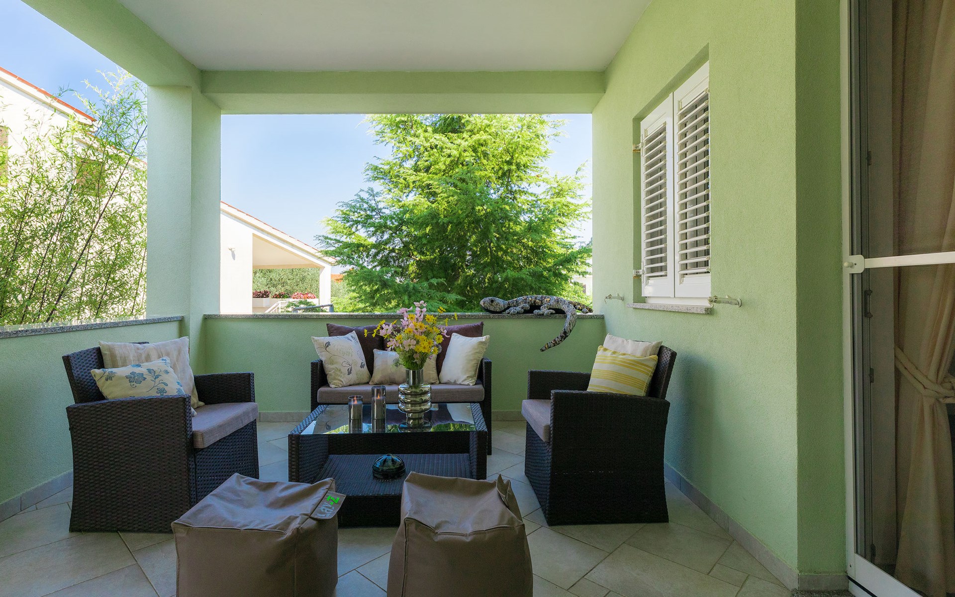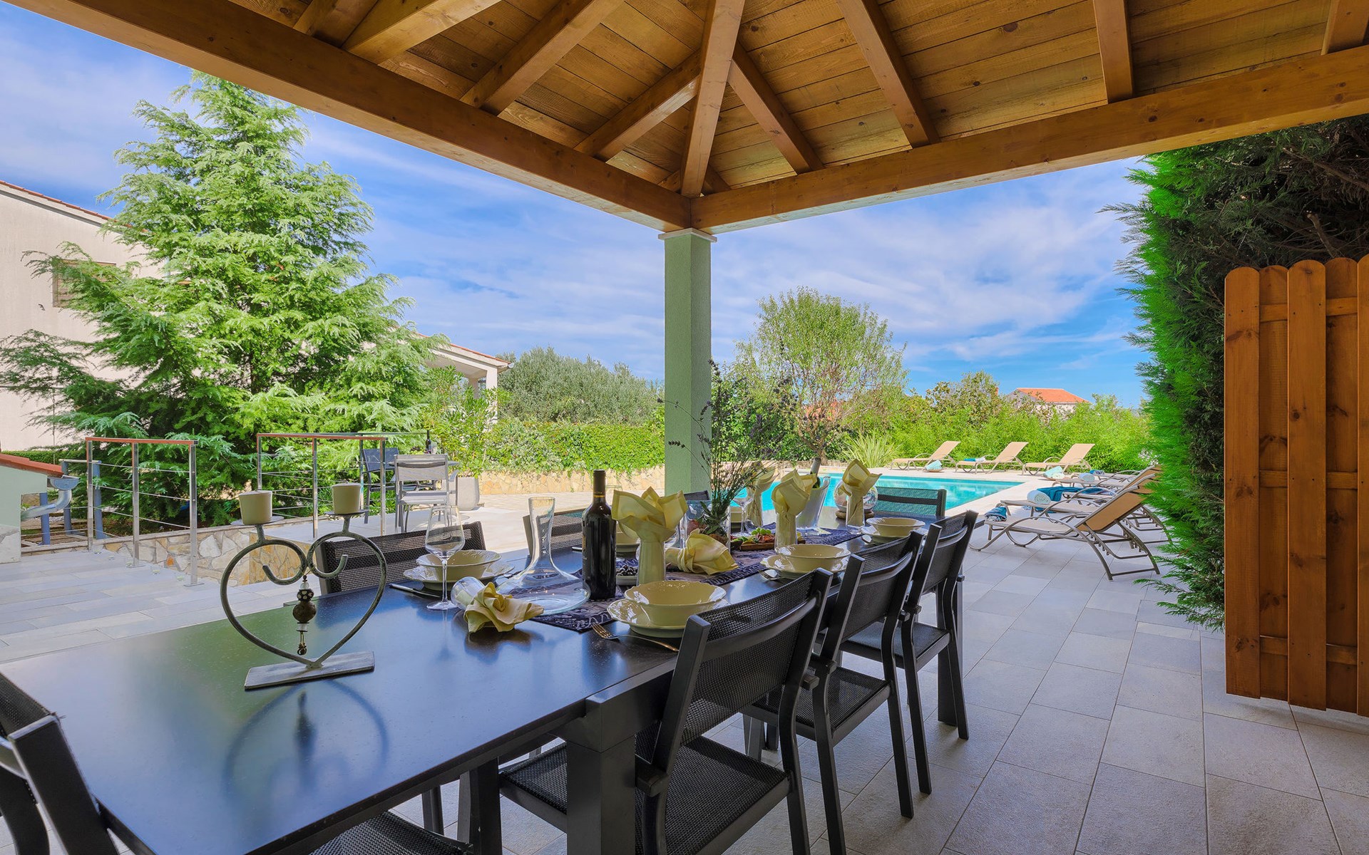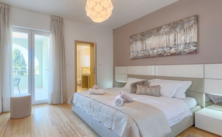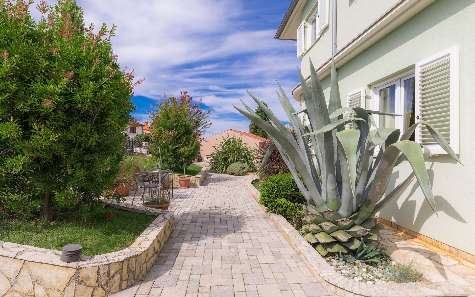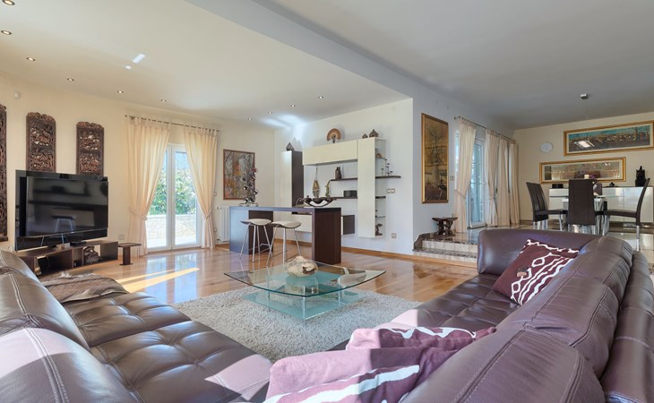Štinjan 5 km from Pula: Beautiful villa "Salamander", 3 storeys. 3 km from the centre of Fažana, in a sunny position, 1 km from the sea, 1 km from the beach. Private: property 1'300 m2 (fenced) with wildlife garden and flowers, beautiful garden to relax, swimming pool angular (9 x 5 m, depth 140 cm, seasonal availability: 09.May. - 03.Oct.) with internal staircase and salt-electrolysis pool-cleaning system. Shower/WC in the pool area, outdoor shower, terrace (20 m2), garden furniture, children's playground (swing). In the house: internet access, washing machine. Parking (for 2 cars) at the house on the premises. Shop 500 m, restaurant 200 m, bus stop 150 m, pebble beach 1 km, public bathing area 1 km. Golf course (18 hole) 5 km, sailing school 5 km, tennis 500 m, riding stable 4 km, walking paths from the house 500 m, cycle lane 550 m. The owner does not accept any youth groups. Please note: airfield 15 km from the property. Swimming pool with hydromassage. Private:outdoor kitchen (2 hot plates, fridge).