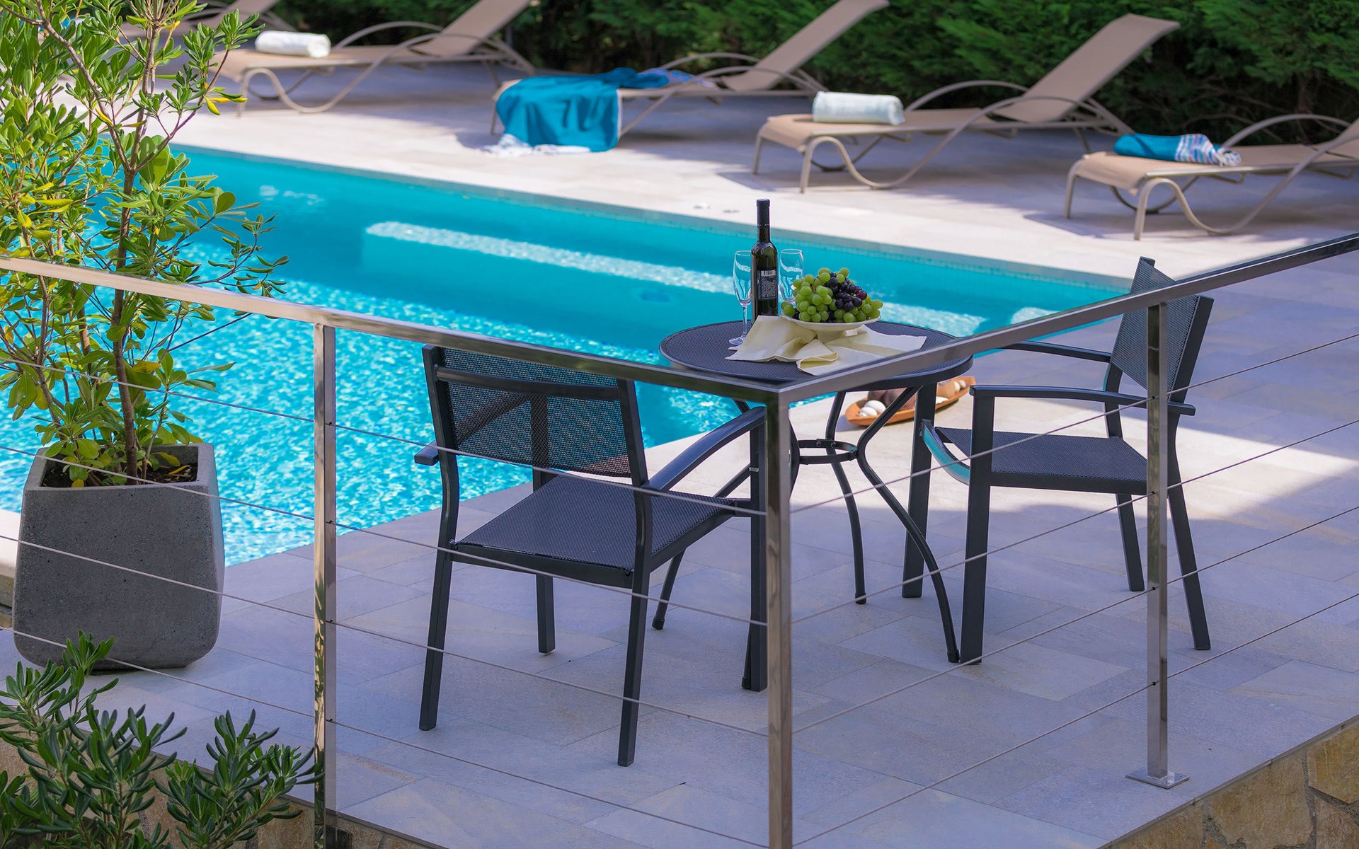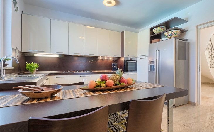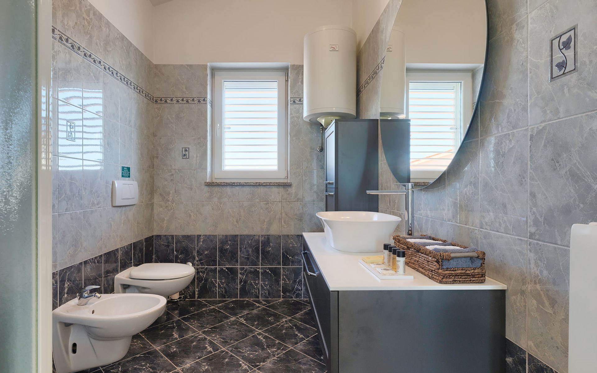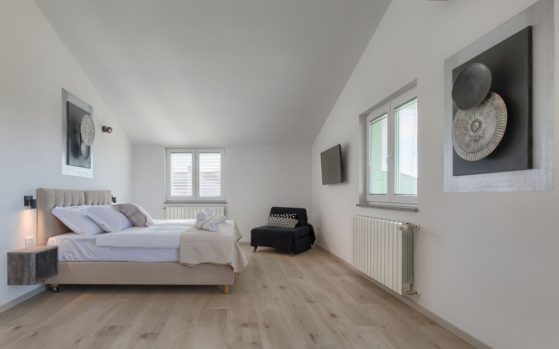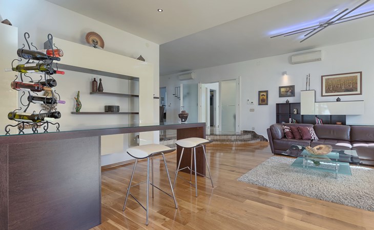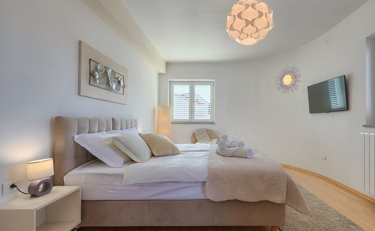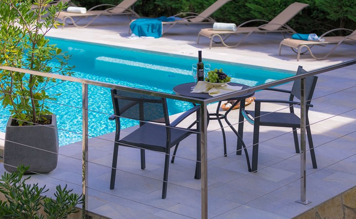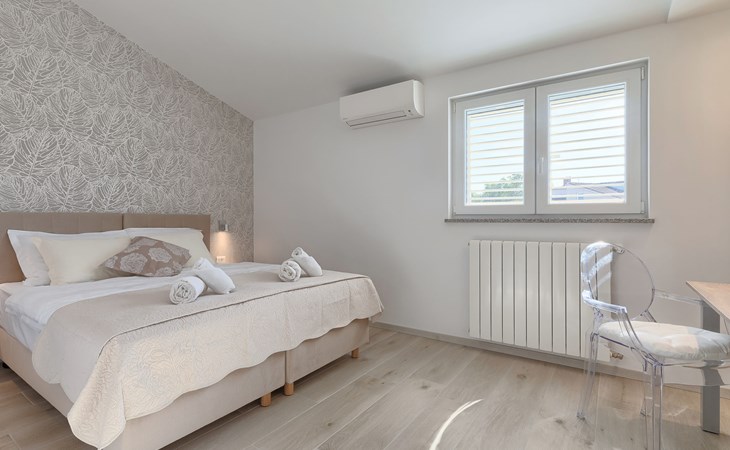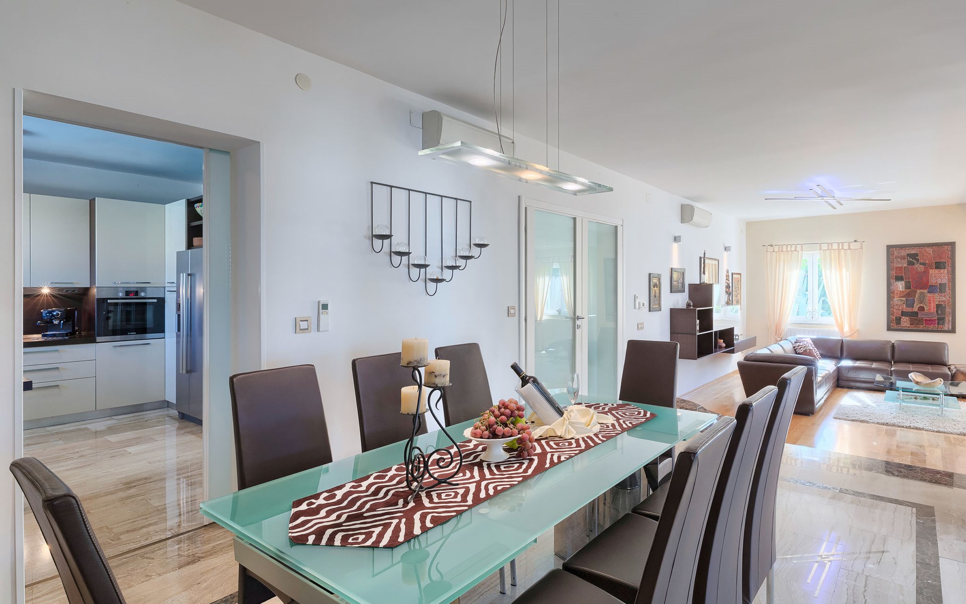 Štinjan 5 km from Pula: Beautiful villa "Salamander", 3 storeys. 3 km from the centre of Fažana, in a sunny position, 1 km from the sea, 1 km from the beach. Private: property 1'300 m2 (fenced) with wildlife garden and flowers, beautiful garden to relax, swimming pool angular (9 x 5 m, depth 140 cm, seasonal availability: 09.May. - 03.Oct.) with internal staircase and salt-electrolysis pool-cleaning system. Shower/WC in the pool area, outdoor shower, terrace (20 m2), garden furniture, children's playground (swing). In the house: internet access, washing machine. Parking (for 2 cars) at the house on the premises. Shop 500 m, restaurant 200 m, bus stop 150 m, pebble beach 1 km, public bathing area 1 km. Golf course (18 hole) 5 km, sailing school 5 km, tennis 500 m, riding stable 4 km, walking paths from the house 500 m, cycle lane 550 m. The owner does not accept any youth groups. Please note: airfield 15 km from the property. Swimming pool with hydromassage. Private:outdoor kitchen (2 hot plates, fridge).
