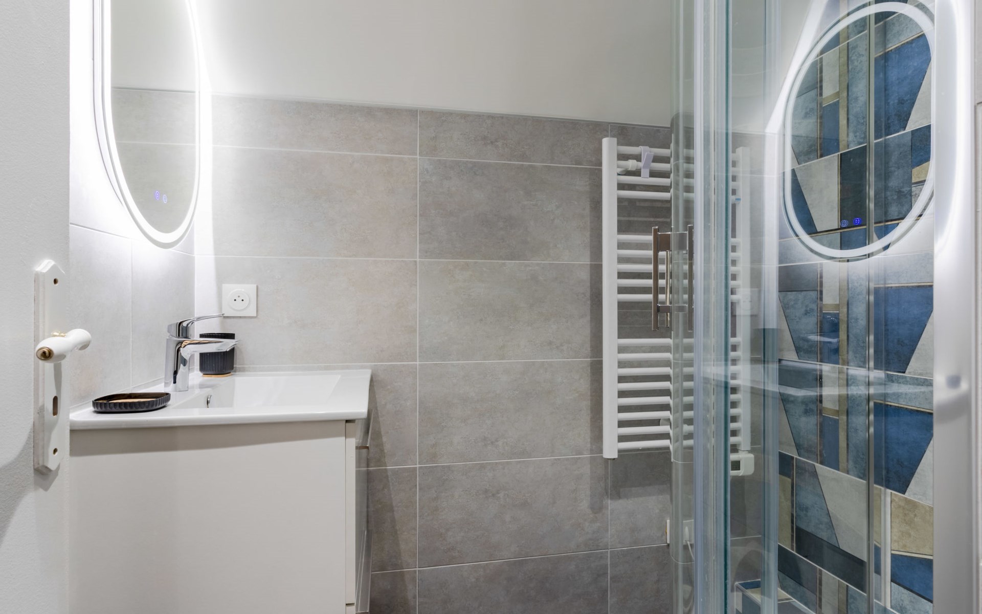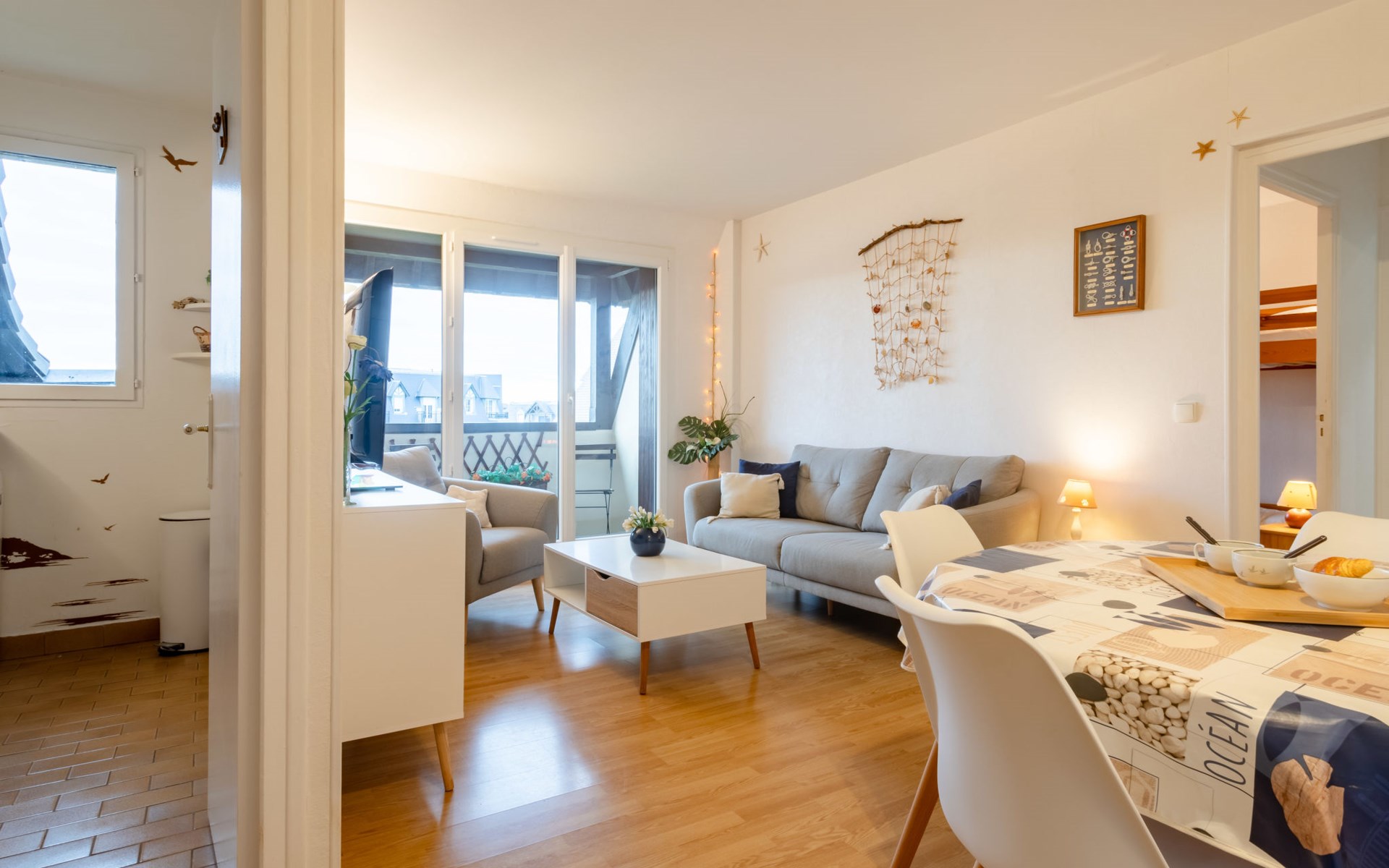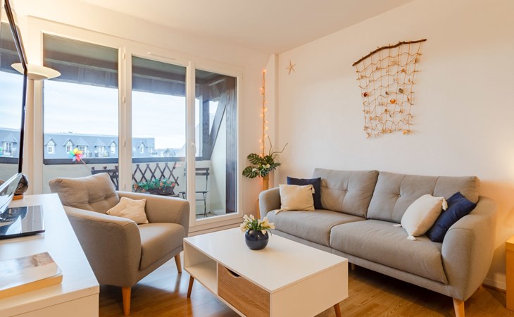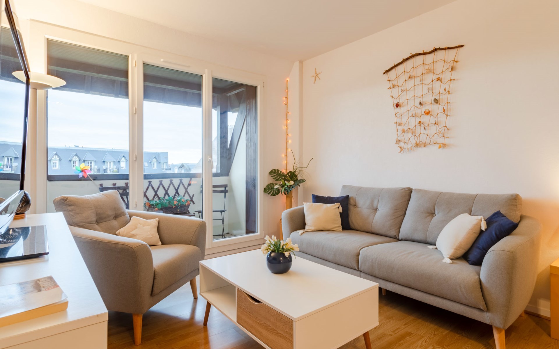 Blonville sur Mer 4 km from Deauville: Residence "Le Garden Fleuri", 3 storeys. In the centre of Blonville sur Mer, 450 m from the sea, 450 m from the beach. In the house: lift. Shop, grocery 200 m, supermarket 3 km, restaurant 200 m, bus stop "Blonville plage" 300 m, railway station "Deauville-Trouville" 5.2 km, indoor swimming pool 4.2 km, thermal baths "Deauville" 4.2 km. Golf course (18 hole) 6.6 km, tennis 350 m, riding stable 450 m. Nearby attractions: Hippodrome de Clairefontaine 3.3 km, Mémorial de Caen 43 km, Plage du débarquement d'Arromanches 84 km. Please note: car recommended. The keys‘ handover takes place by the agency Interhome in Deauville.