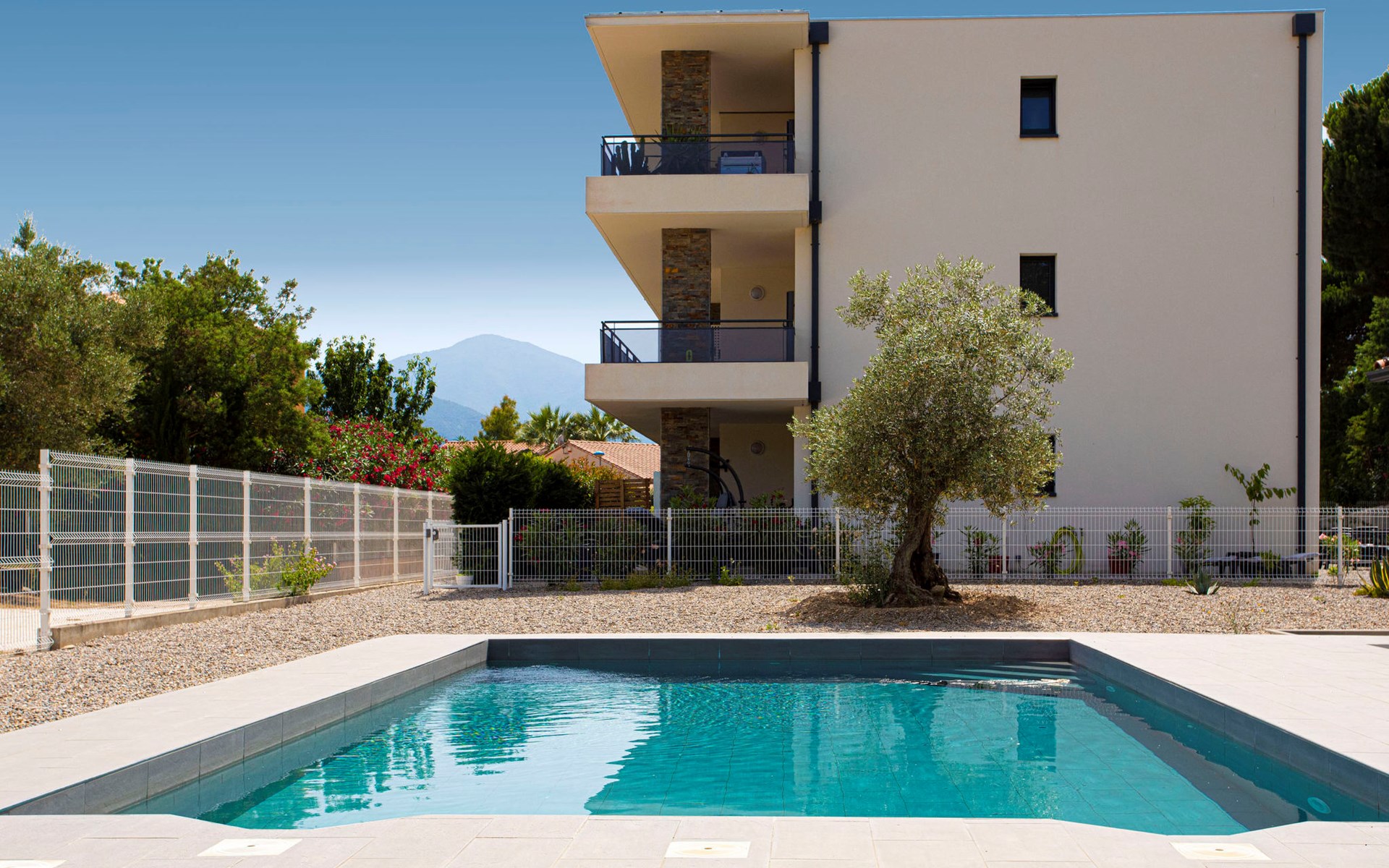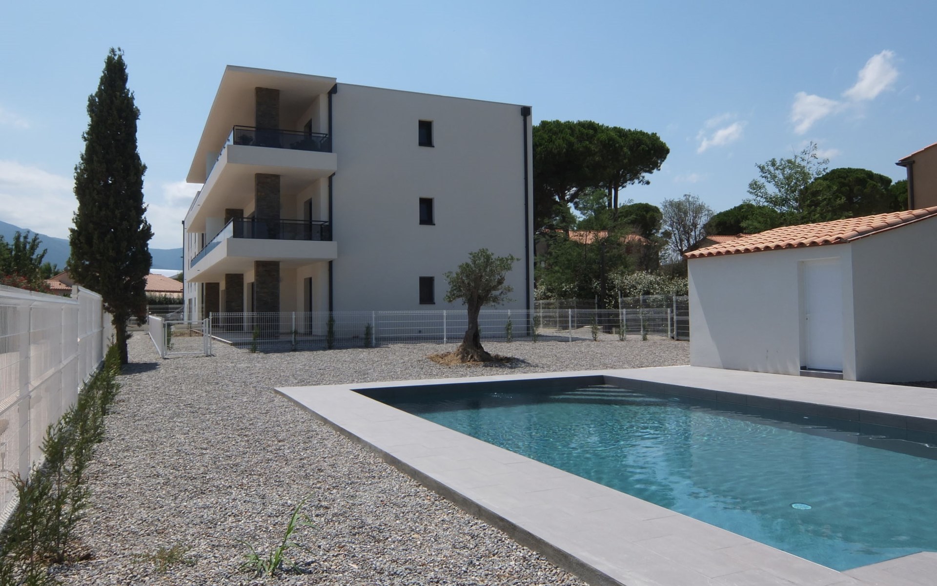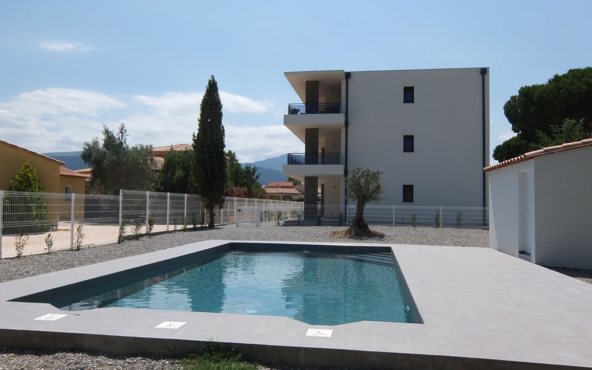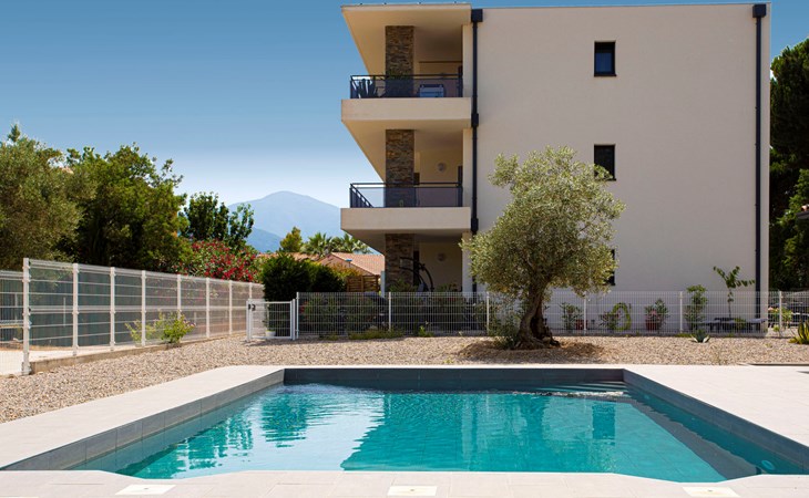 Small residence "Le Clos des Alberes", 2 storeys, built in 2017. 16 apartments in the residence. 4 km from the sea, 4 km from the beach. For shared use: swimming pool angular (9 x 5 m, depth 150 - 150 cm, seasonal availability: 01.Jun. - 30.Sep.). In the complex: lift, storage room for bicycles. Grocery 400 m, shopping centre 1 km, restaurant 1 km, bus stop 550 m, railway station "Argelès sur Mer" 5 km, sandy beach 4 km, diving center 5 km. Sports harbour 6.5 km, golf course (27 hole) 13 km, riding stable 2.5 km. Nearby attractions: Aqualand Saint-Cyprien 6.5 km. The keys‘ handover takes place by the agency Interhome in Saint-Cyprien, 10 km.