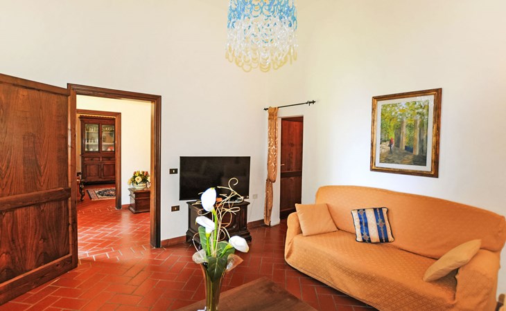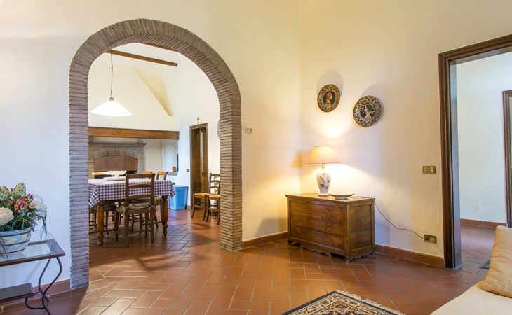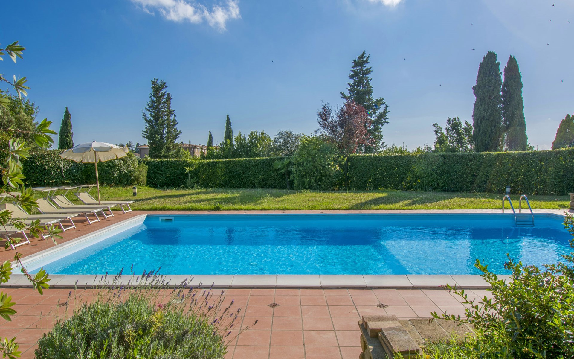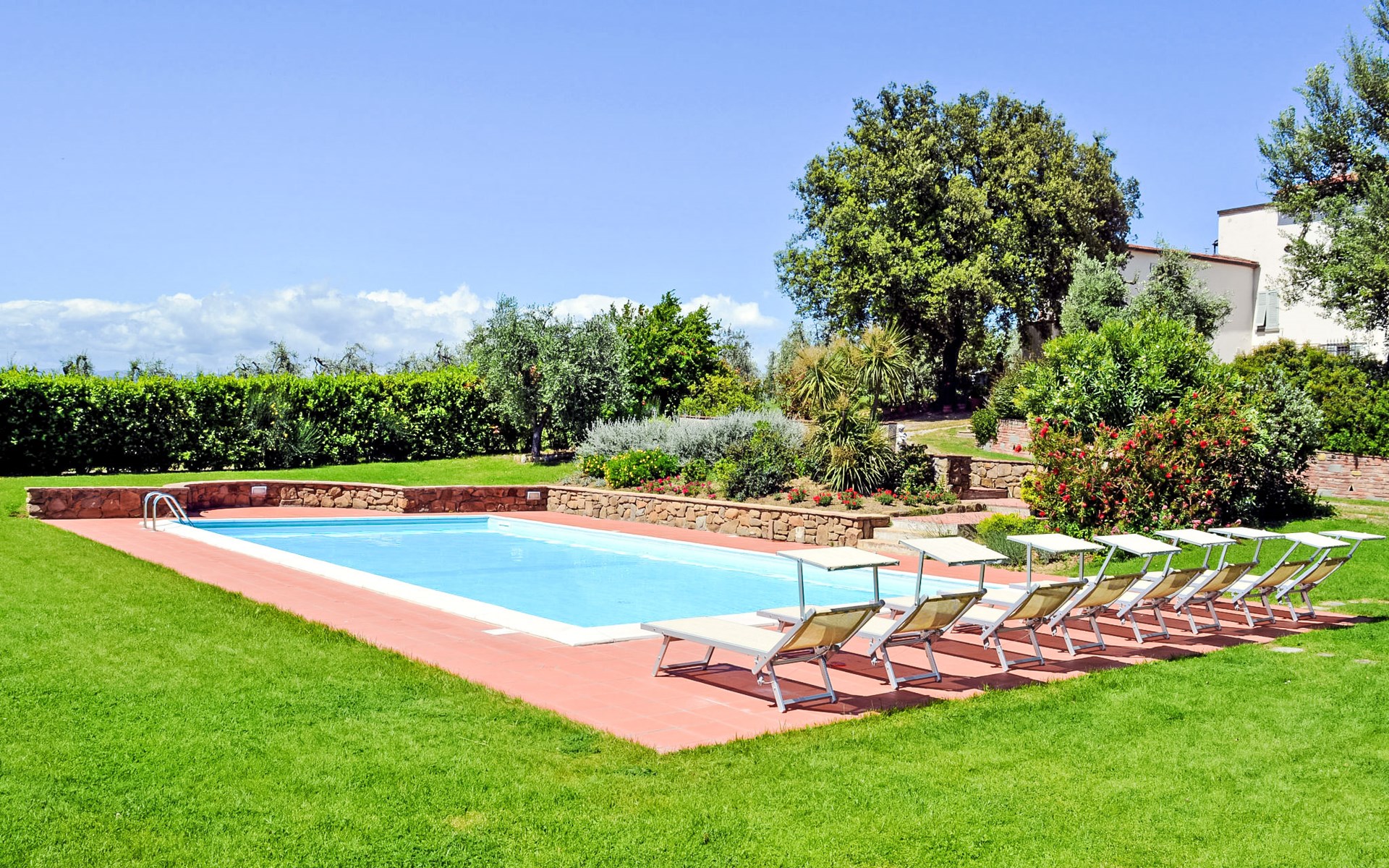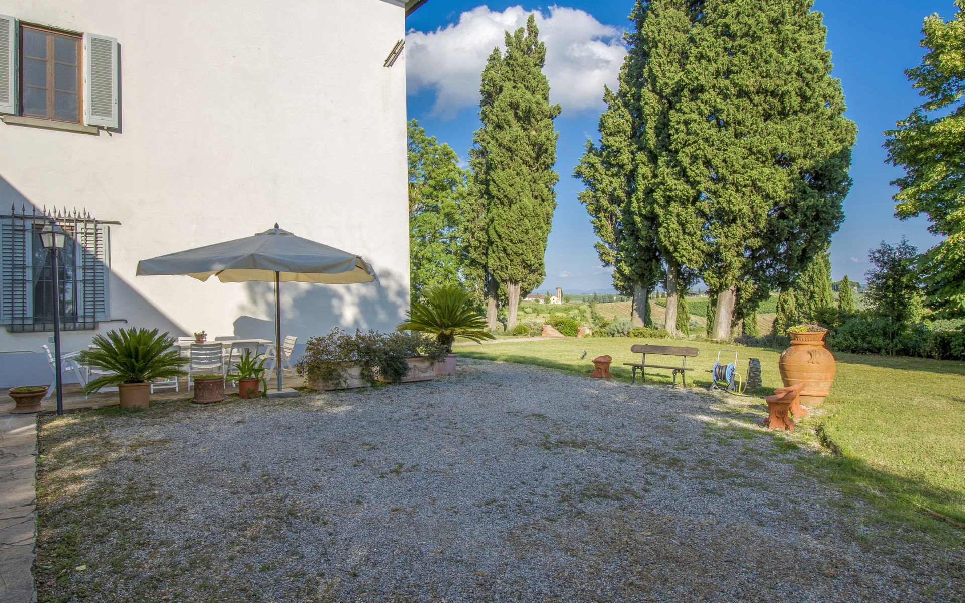 Beautiful villa "di Vinci", renovated, surrounded by fields and vineyards. Outside the resort, on top of a hill. For shared use: property. Private: large, well-kept garden with lawn and flowers, swimming pool (6 x 12 m, depth 140 - 170 cm, seasonal availability: 29.Mar. - 25.Oct.). Outdoor shower, pergola, terrace, garden furniture, barbecue. In the house: internet access, heating to be paid on the spot, heating available only from 29.Mar. - 15.Apr.. Linen change weekly. Room cleaning on request (extra). Cook on request (extra). Parking. Bus stop 200 m, railway station "Empoli" 12 km, sandy beach 50 km. Golf course 5 km, tennis 10 km, riding stable 2 km. Nearby attractions: Pisa 40 km, Firenze 45 km, San Miniato 15 km. Please note: the owner lives on the same property.