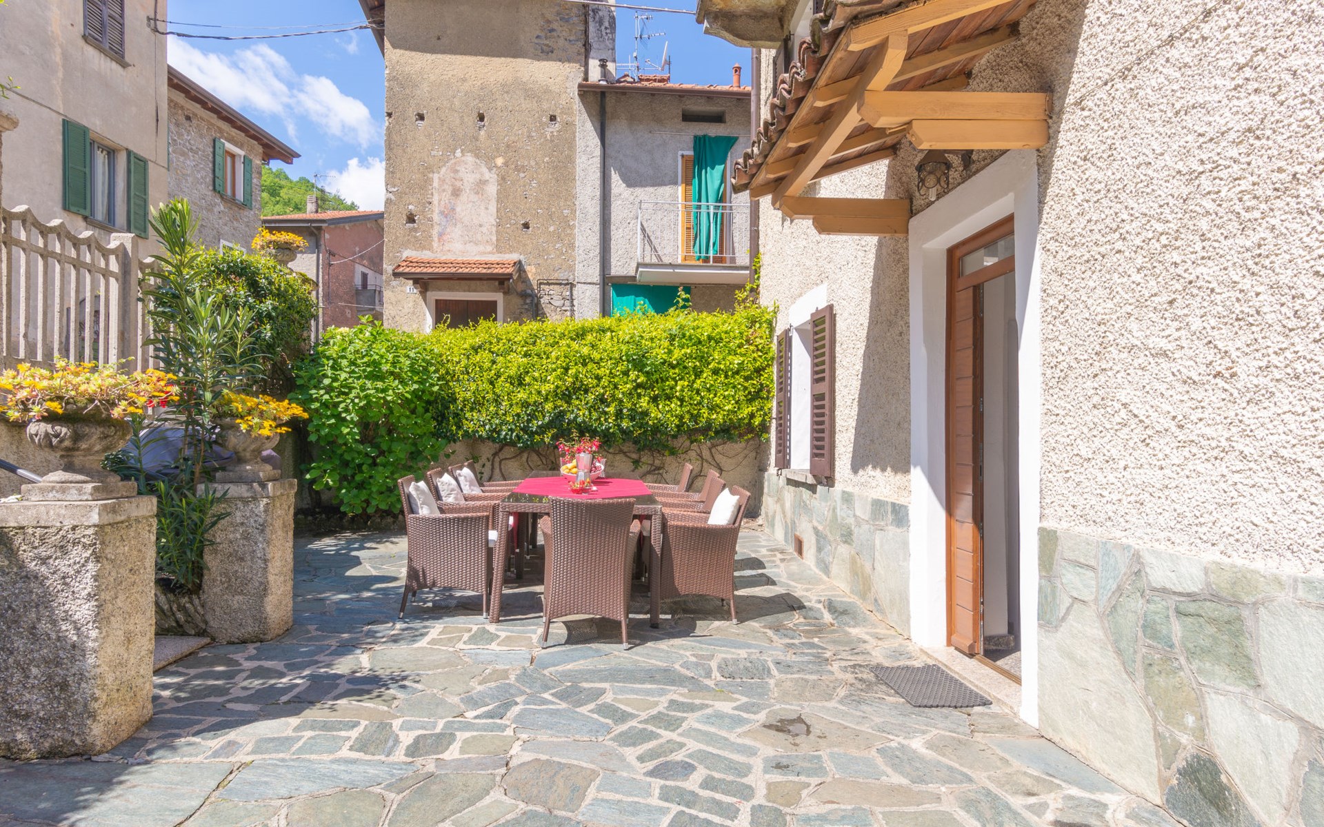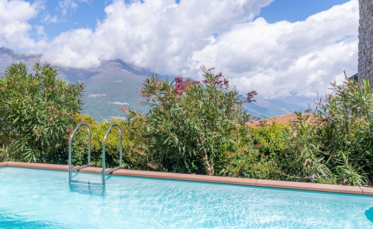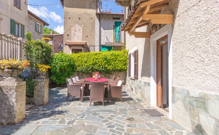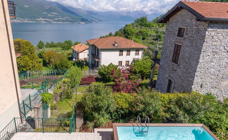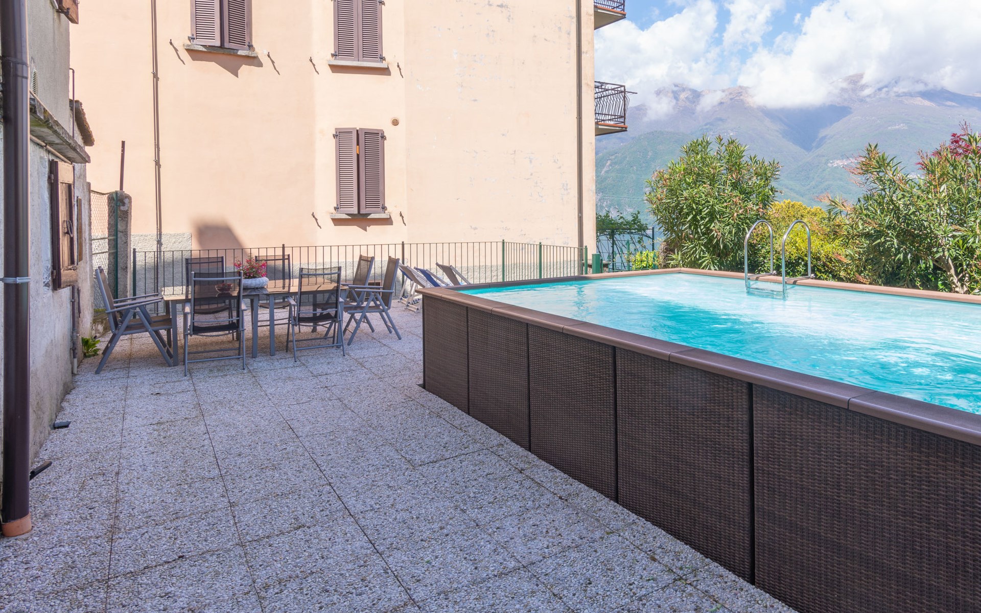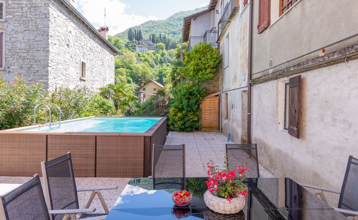 House "Rita". In the hamlet Gittana 3.5 km from the centre of Varenna, 2.5 km from the centre of Perledo, 25 km from the centre of Lecco, 1.3 km from the lake. Private: property (fenced), garden 100 m2 with lawn, courtyard, swimming pool (above ground) (5 x 3 m, depth 120 cm, seasonal availability: 01.Apr. - 31.Oct.) with salt-electrolysis pool-cleaning system. Pool maintenance by the owner/gardener. 2.5 km long narrow motor access (mountain road). Parking (for 4 cars) at the house. Shop 2.5 km, supermarket 3.5 km, restaurant 30 m, bus stop 650 m, railway station "Varenna" 3.5 km, pebble beach "Lido di Gittana" 1.3 km (small), grass beach "Bellano" 3.5 km. Golf course (18 hole) 12 km, walking paths from the house 100 m. Hiking paths: Sentiero del Viandante. Please note: Loading and unloading of baggage is possible at the holiday house.