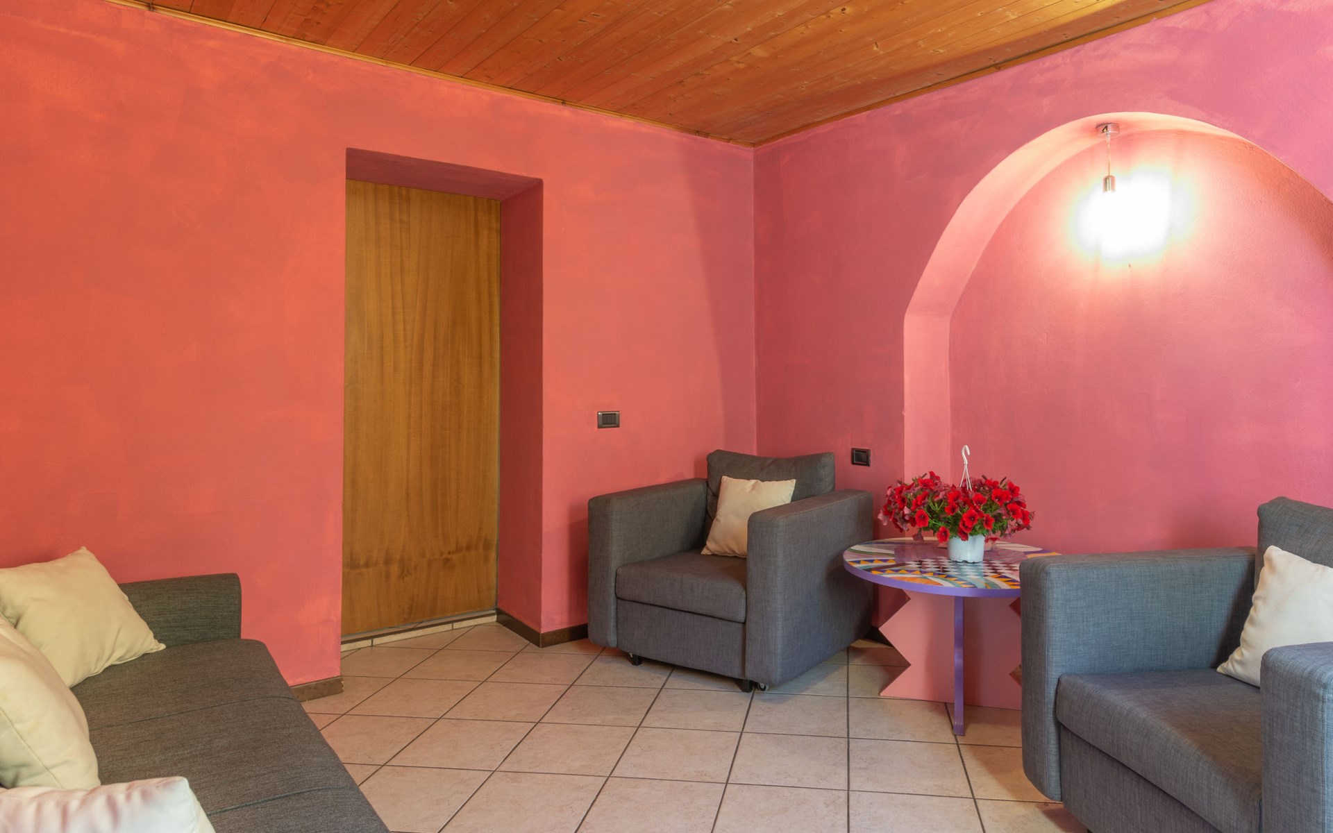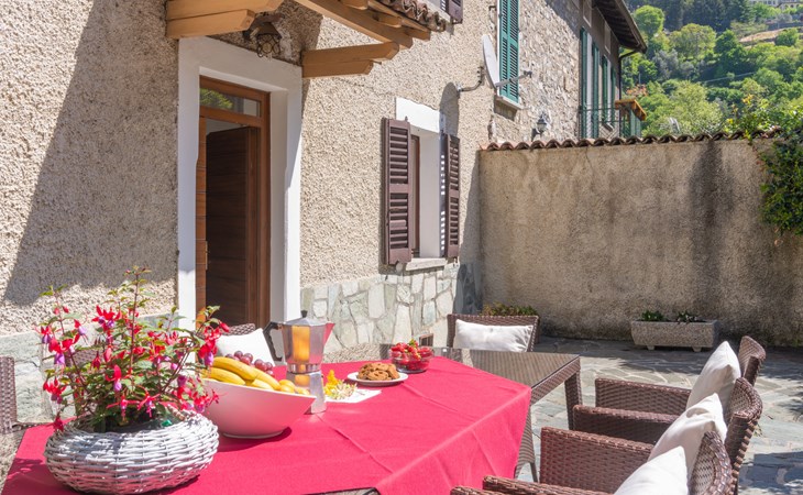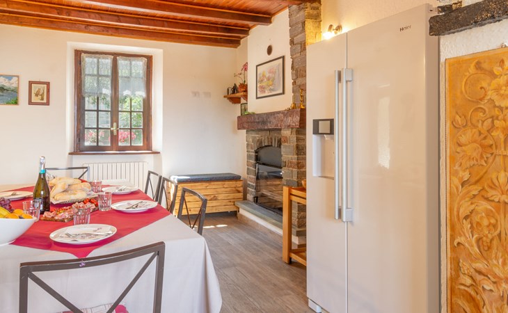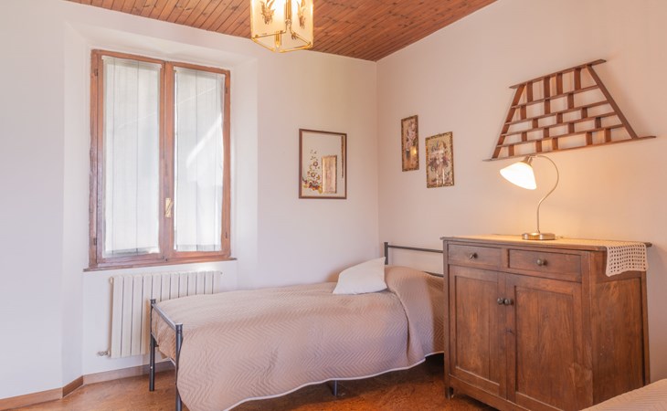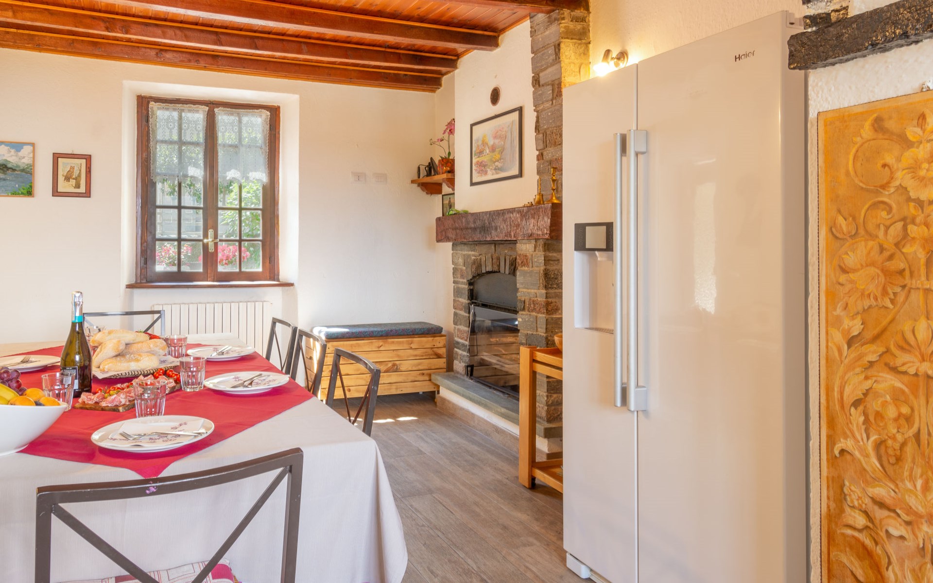 House "Rita". In the hamlet Gittana 3.5 km from the centre of Varenna, 2.5 km from the centre of Perledo, 25 km from the centre of Lecco, 1.3 km from the lake. Private: property (fenced), garden 100 m2 with lawn, courtyard, swimming pool (above ground) (5 x 3 m, depth 120 cm, seasonal availability: 01.Apr. - 31.Oct.) with salt-electrolysis pool-cleaning system. Pool maintenance by the owner/gardener. 2.5 km long narrow motor access (mountain road). Parking (for 4 cars) at the house. Shop 2.5 km, supermarket 3.5 km, restaurant 30 m, bus stop 650 m, railway station "Varenna" 3.5 km, pebble beach "Lido di Gittana" 1.3 km (small), grass beach "Bellano" 3.5 km. Golf course (18 hole) 12 km, walking paths from the house 100 m. Hiking paths: Sentiero del Viandante. Please note: Loading and unloading of baggage is possible at the holiday house.