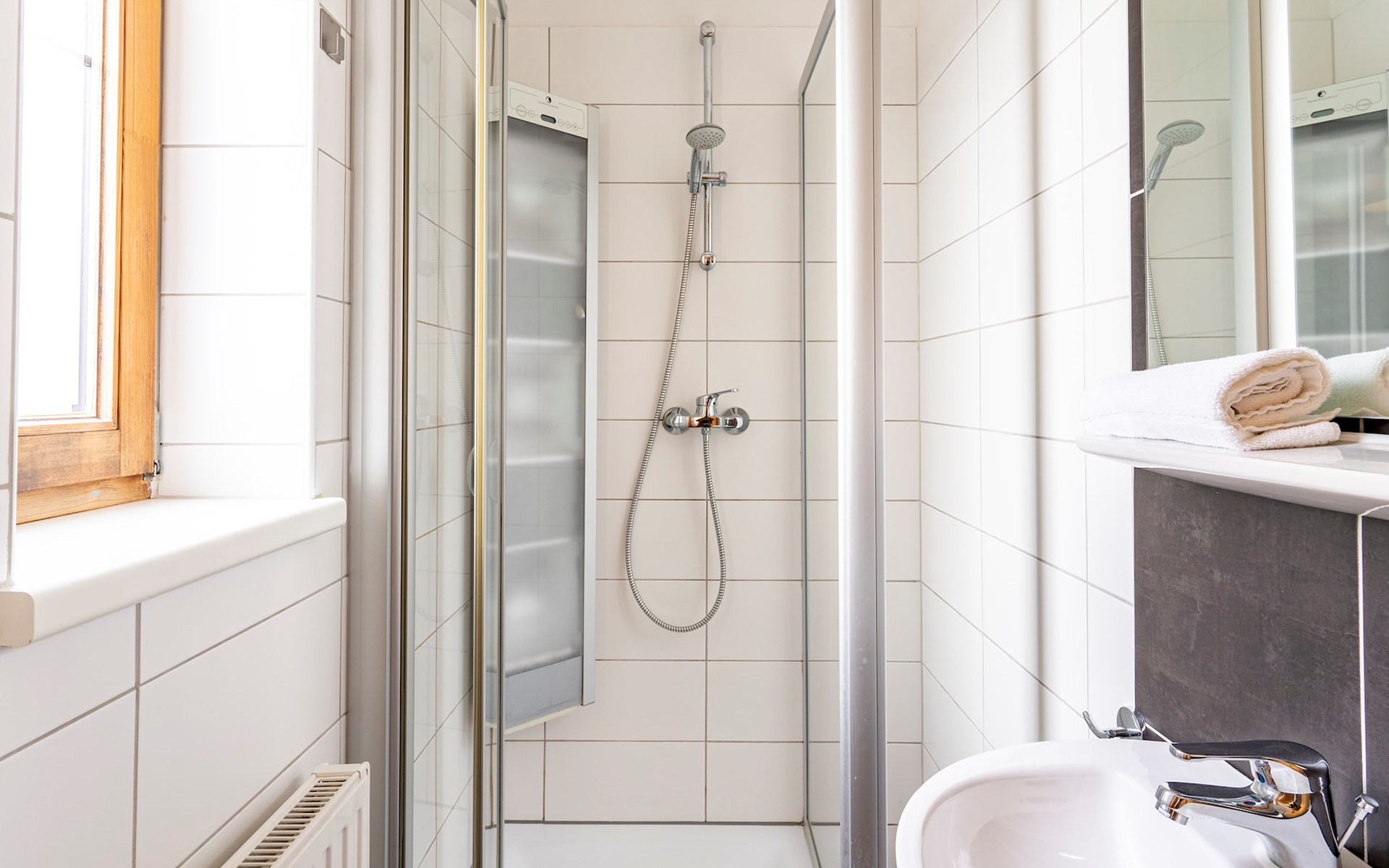 The chalet features 3 twin bedrooms on the first floor. One of the bedrooms has a television. This chalet also has 3 bathrooms, all equipped with a shower, washbasin and toilet. In 2 bathrooms there is a bath. There is also a separate toilet. Guests can also enjoy a balcony, which is accessible from 2 of the bedrooms.