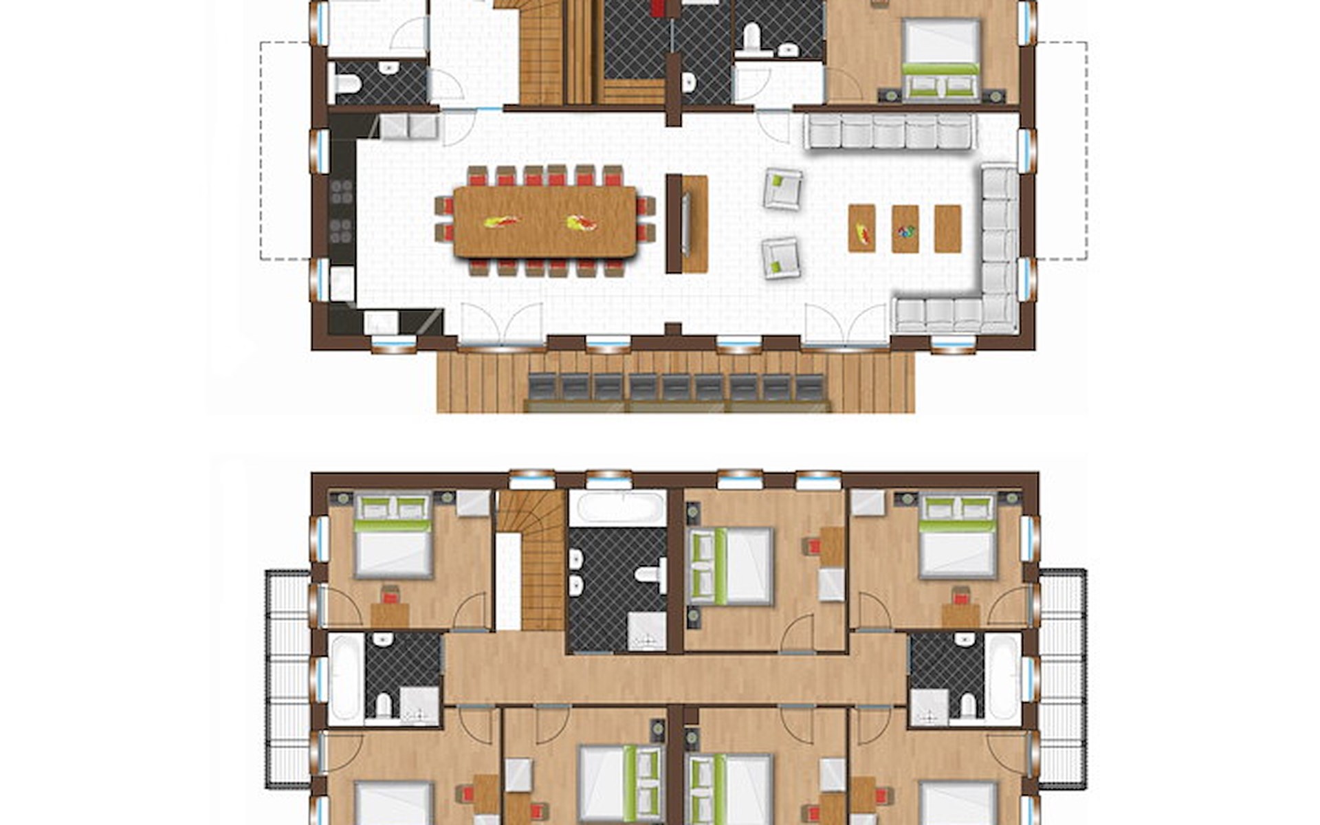 This spacious accommodation is the ideal group accommodation for up to 16 people. The detached Chalet Fuschlsee has 8 bedrooms and 4 bathrooms. The accommodation provides guests with a usable area of approximately 260m2.