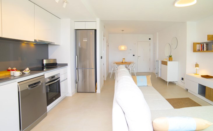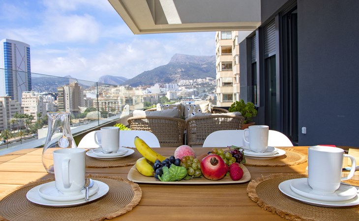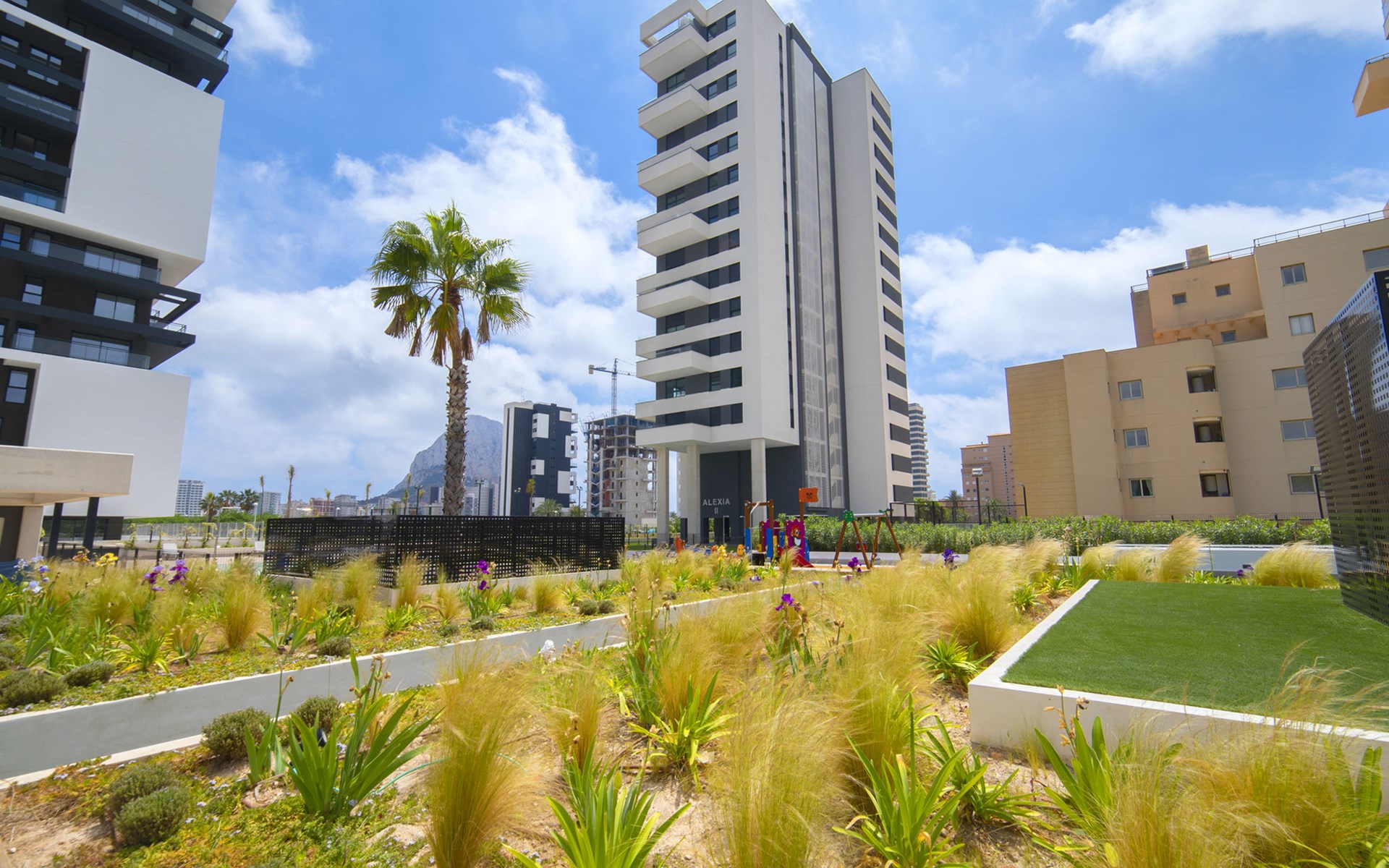 Modern, beautiful apartment block "Alexia II", built in 2023. 1 km from the centre of Calpe, in a sunny position, 350 m from the sea, 350 m from the beach. For shared use: property (fenced), garden, swimming pool (seasonal availability: 01.Jan. - 31.Dec.). Children's pool, outdoor shower, children's playground. In the house: fitness room, lift. Grocery, supermarket 200 m, shopping centre 1 km, bus stop "Parada Bus" 550 m, sandy beach "Playa Arenal" 350 m. Sports harbour 1.7 km, marina 1.7 km, golf course (9 hole) 11 km. Nearby attractions: Aqualandia, Mundomar, Terra MÃtica, Terra Natura, Les Fonts de l'Algar, Castillo de Guadalest. The owner does not accept any youth groups.