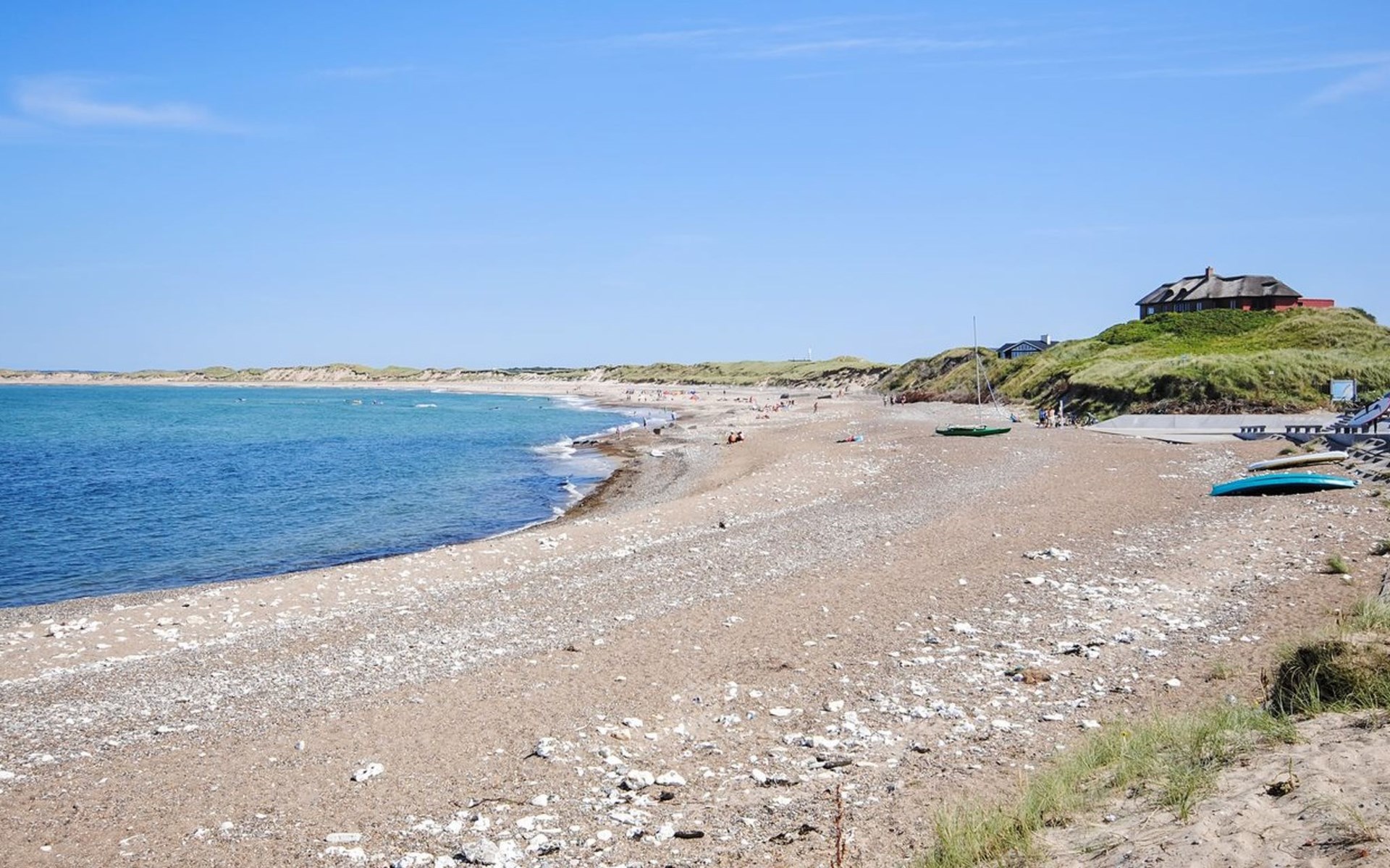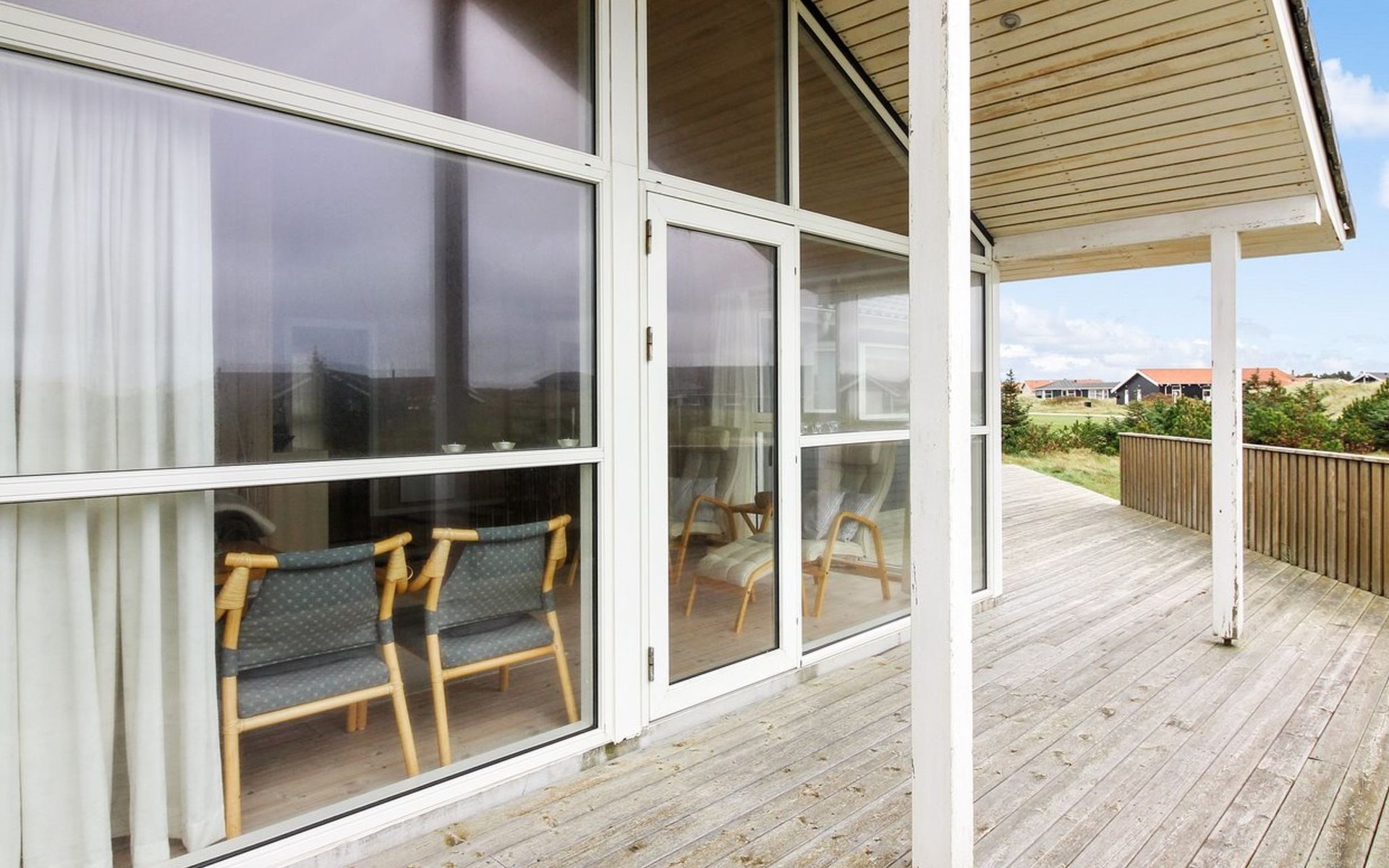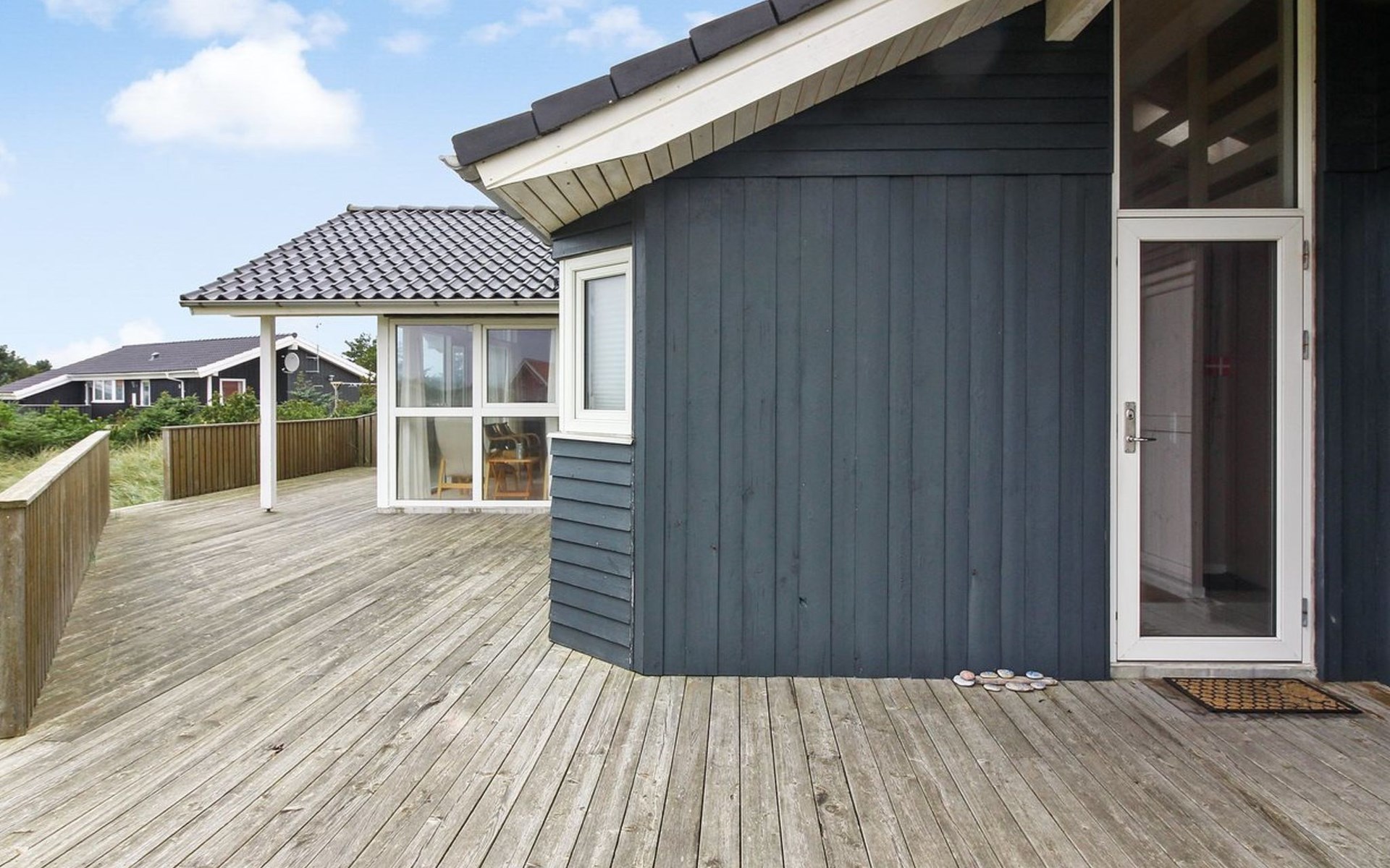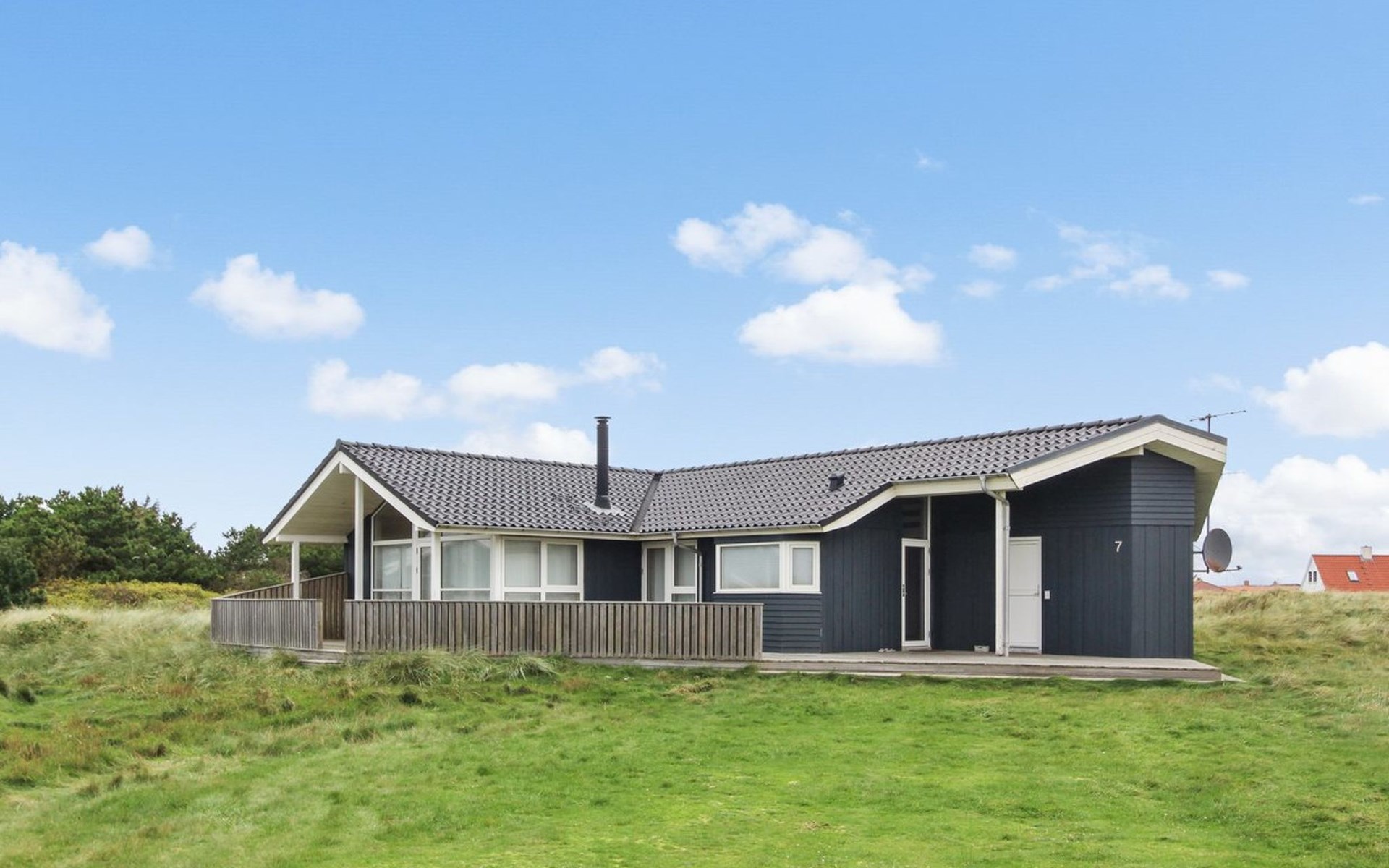 Single-family house, built in 2005. 400 m from the sea. Private: natural state property 1'550 m2. Terrace (75 m2), barbecue. In the house: sauna, washing machine, tumble dryer. Parking at the house. Grocery 1 km. Golf course 5 km. The owner does not accept any youth groups.