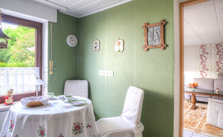 3-family house. On the outskirts, 400 m from the centre of Schwalenberg, in a quiet position on a slope, 50 m from the edge of the forest. In the house: central heating system. Parking at the house. Shop 5 km, grocery 300 m, supermarket 5 km, restaurant 300 m, bakery, café, bus stop 200 m, railway station "Schieder" 7 km, outdoor swimming pool 6 km. Walking paths from the house 100 m, children's playground 300 m. Nearby attractions: Hermannsdenkmal 27 km, Welterbe Corvey 28 km, Externsteine 26 km. Well-known lakes can easily be reached: Schiedersee 6 km. Please note: car recommended. Owner lives in separate semi-detached house.