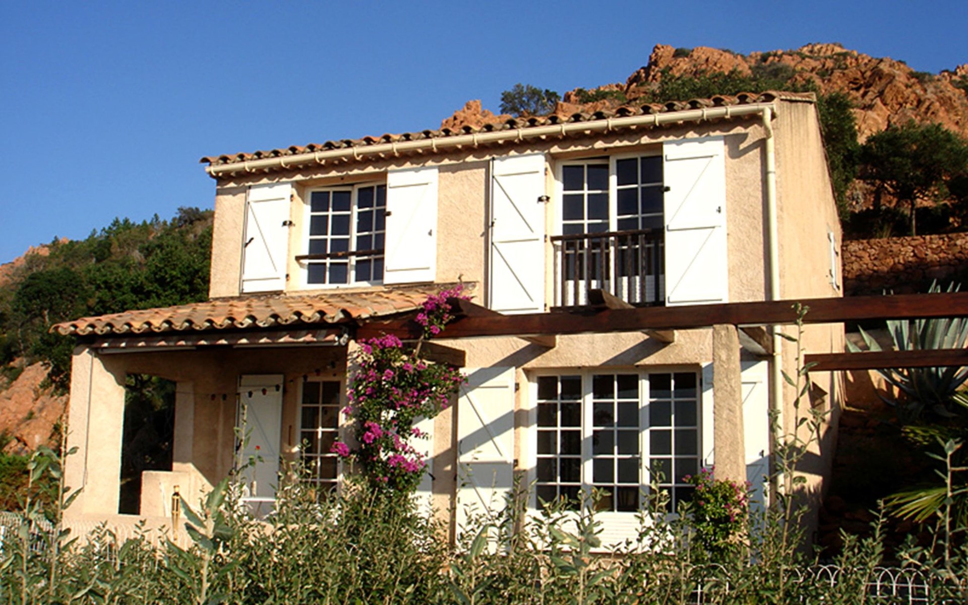 Agay 10 km from St Raphael: Single-family house "Maison La Galine". In a sunny position on a slope, in the residential district, 2 km from the sea, 2 km from the beach. Private: property 500 m2, well-kept garden 55 m2 with wildlife garden and flowers. Pergola (15 m2), parking on the premises. Shop, restaurant, bakery, bus stop 900 m, railway station 12 km, sandy beach "Agay" 1.6 km. Golf course (18 hole) 9 km. Nearby attractions: Dramont 3 km, Fréjus 13 km, Cannes 30 km, Saint-Tropez 50 km, Gorges du Verdon 90 km. Well-known lakes can easily be reached: Sainte-Croix 90 km. Hiking paths: Estérel 10 m, Sentier du Littoral 500 m. Please note: car recommended. The keys‘ handover takes place by the agency Interhome in Port Fréjus.